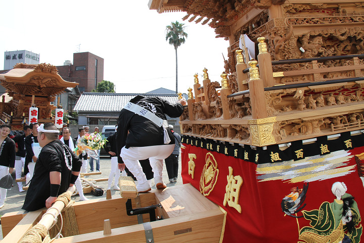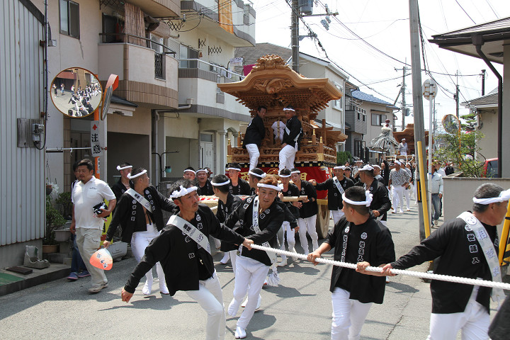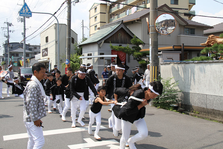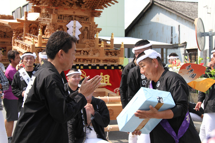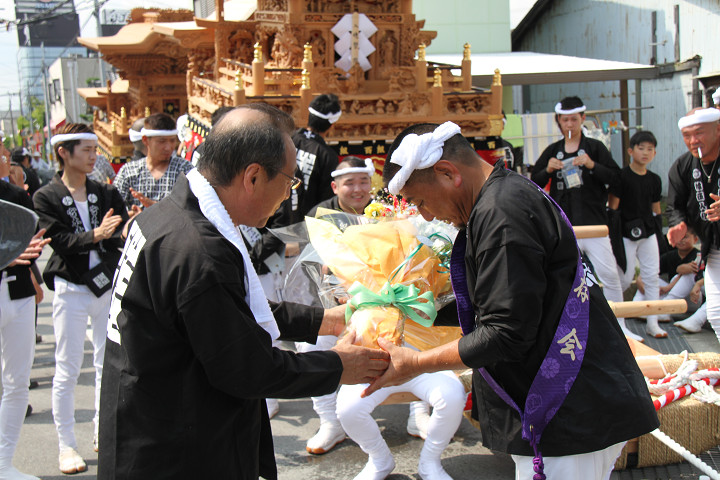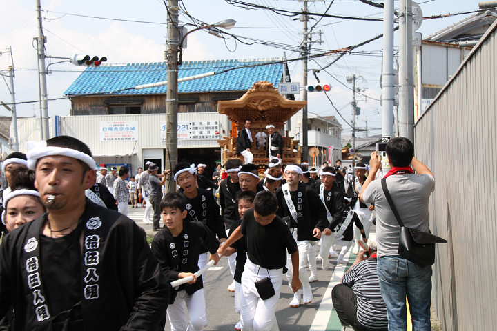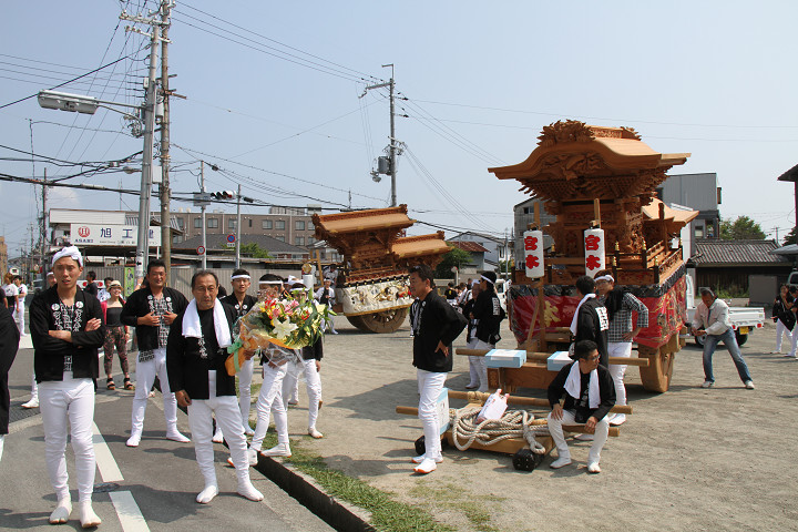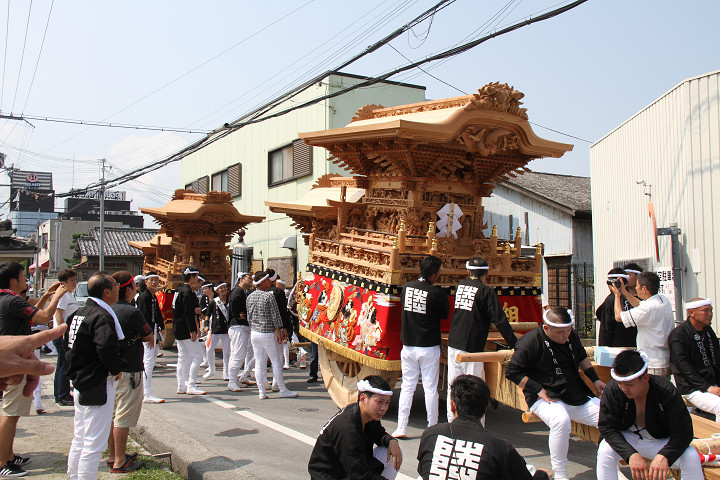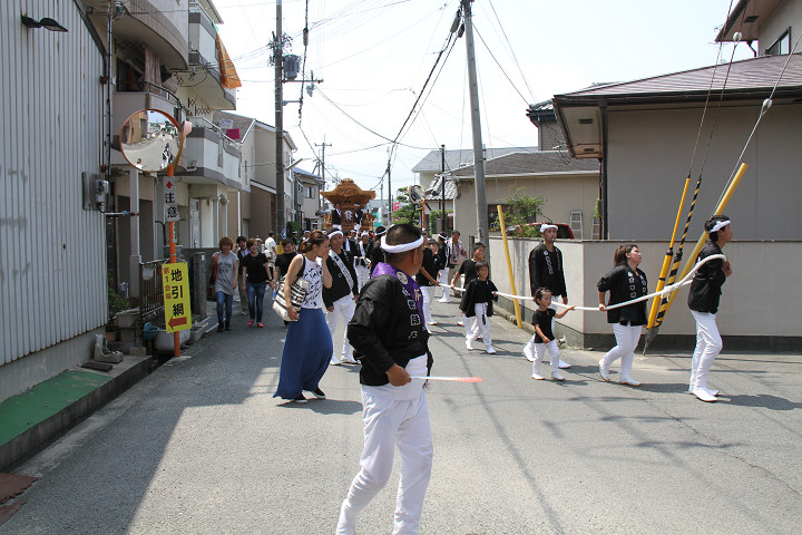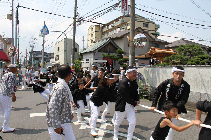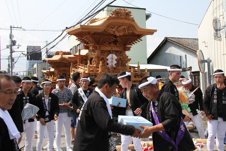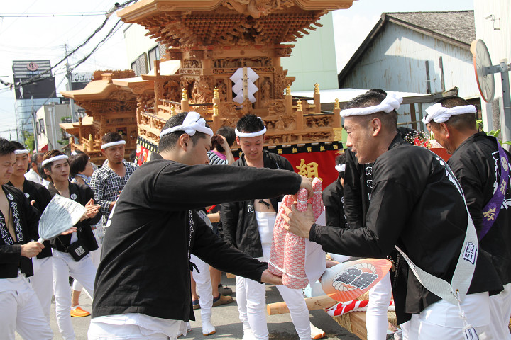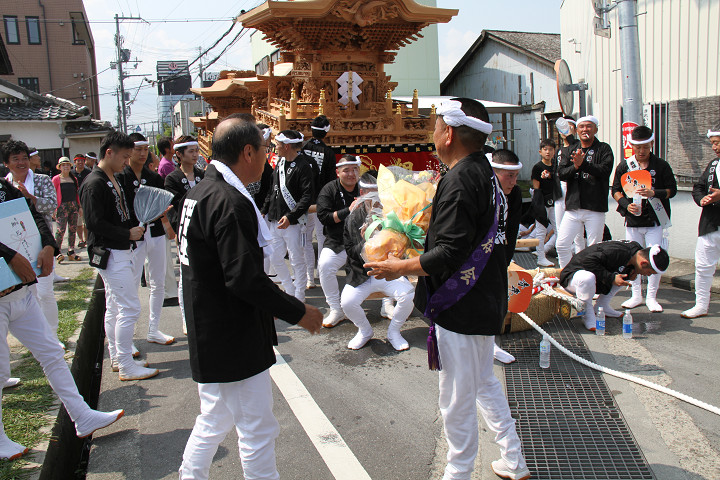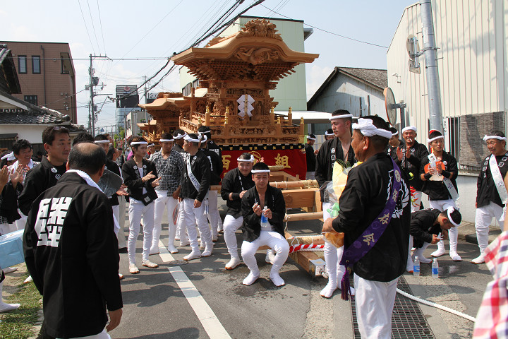 ![]() 約10分程度休憩し、曳行再開。今日のキーワードは"水分補給"ですネ。 |