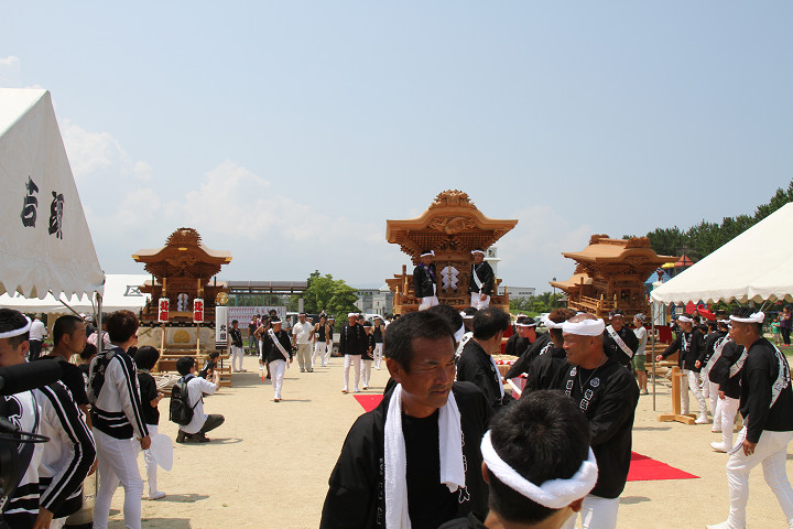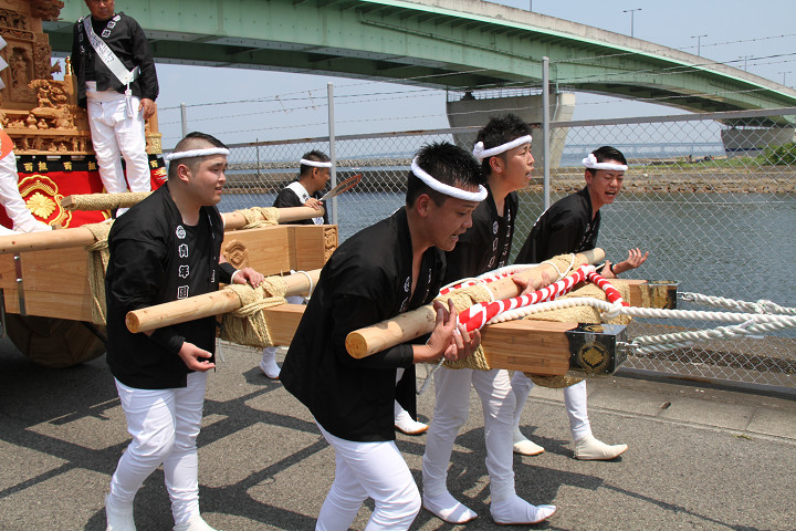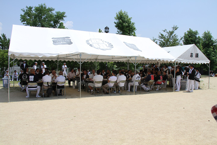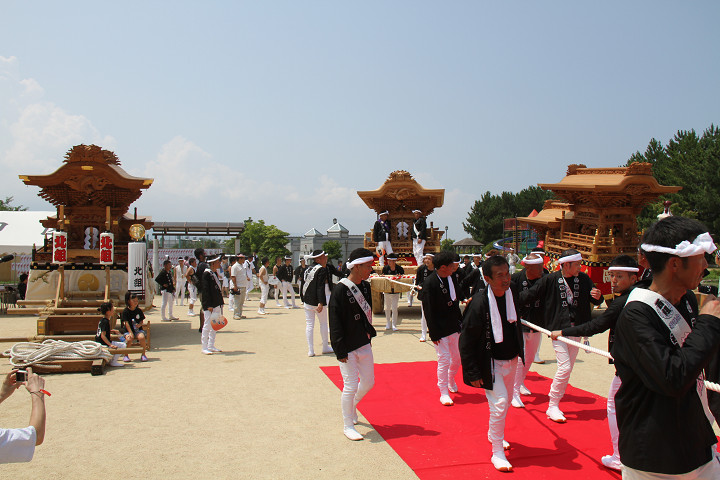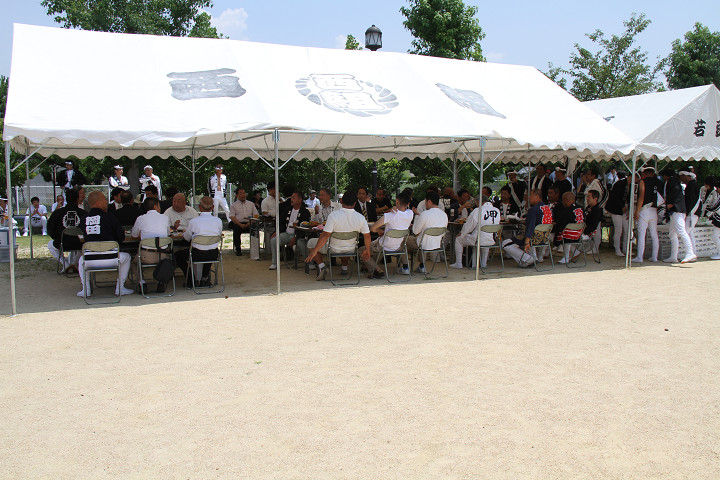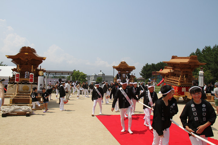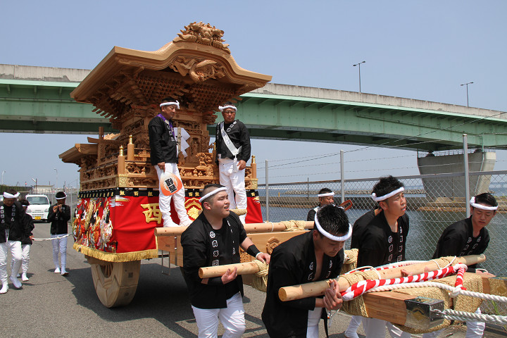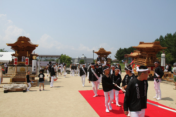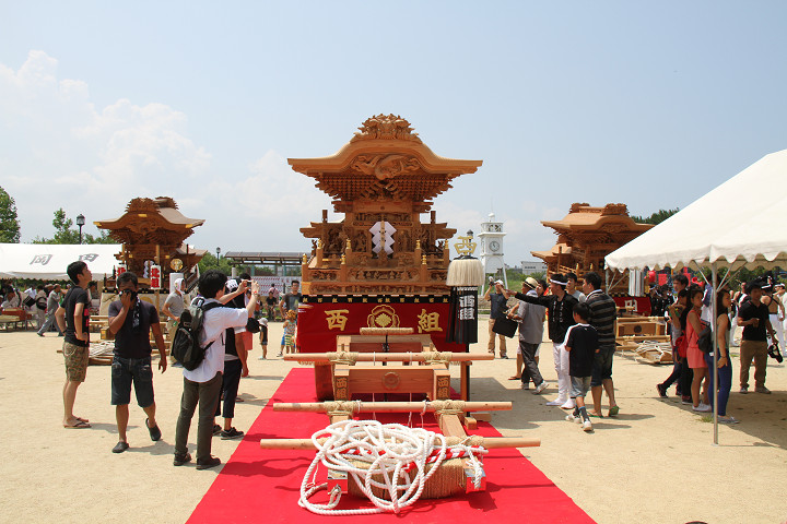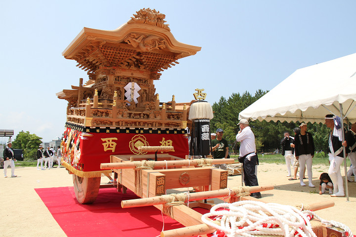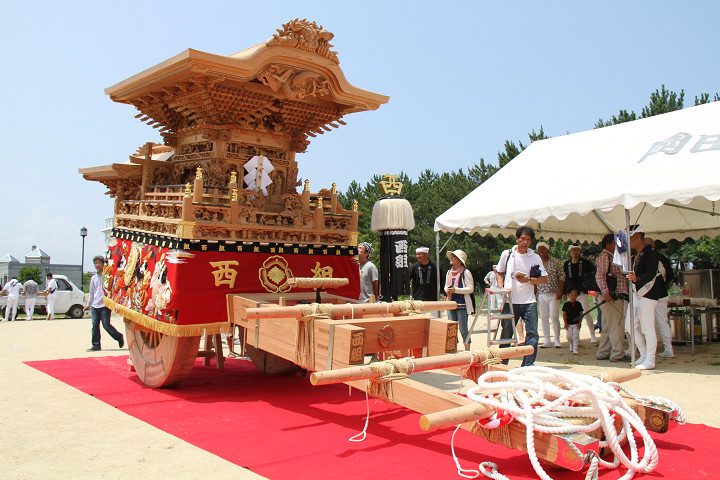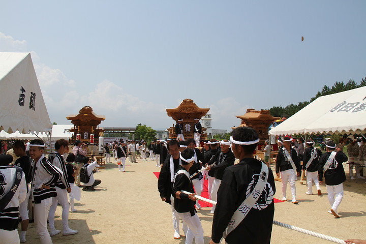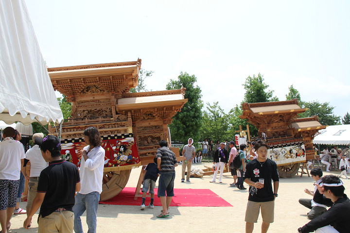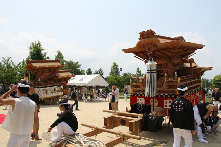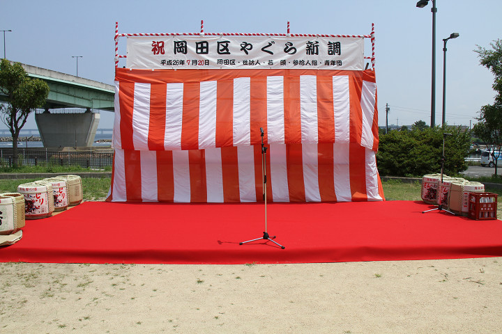 ![]() 既に岡田北組・岡田中組のやぐらは到着してました。 |