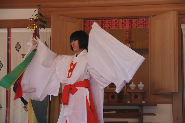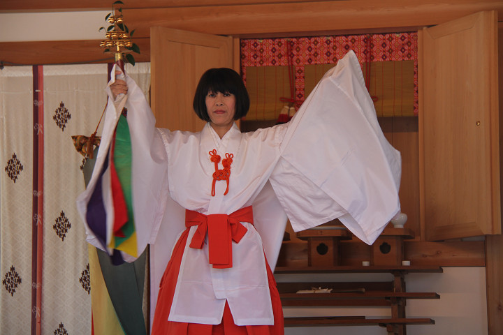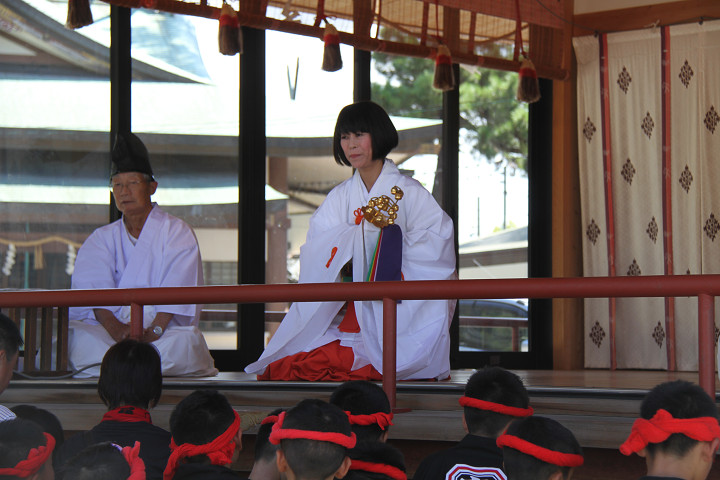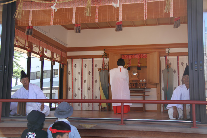![]() 宮入りの撮影を終え、伊八さんから頂戴した 巫女様の神楽奉納の御祓いを受けました。 |