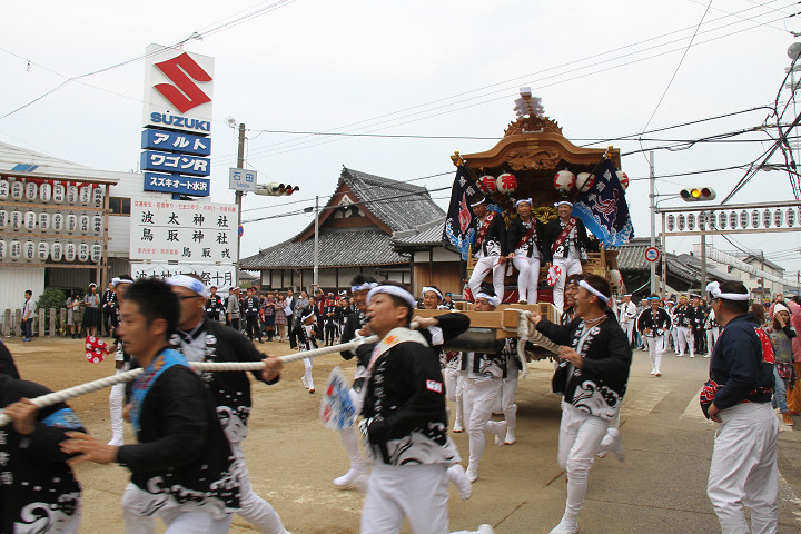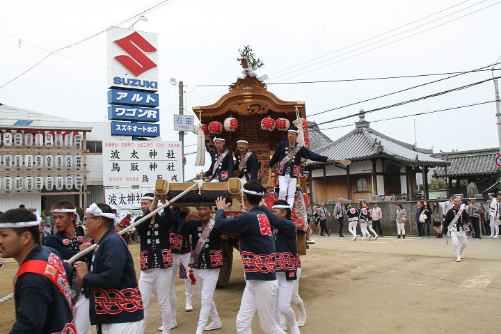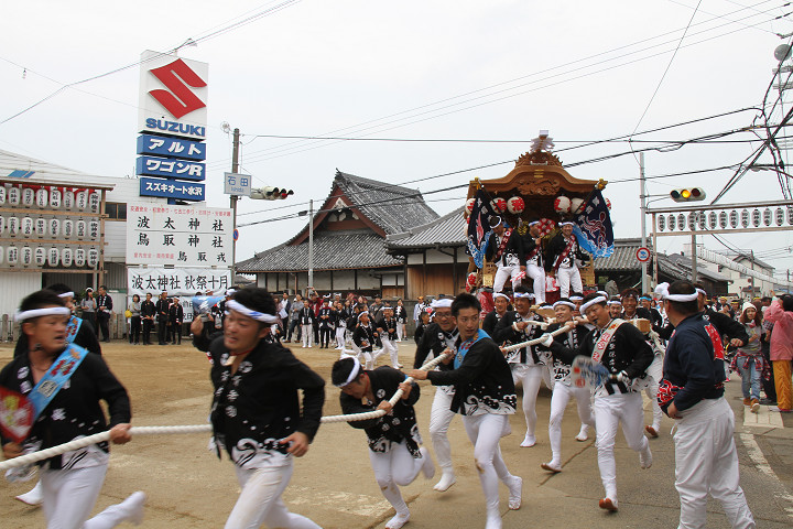 ![]() 馬場先へ撮影に、左から西鳥取上組・榮組・波有手組。 |