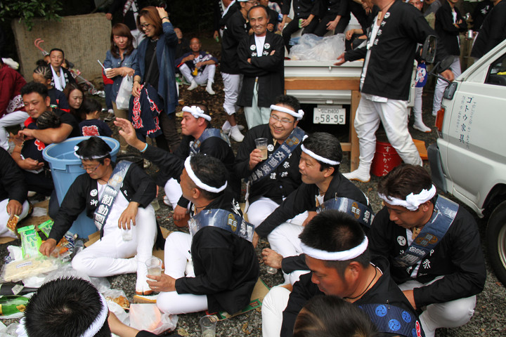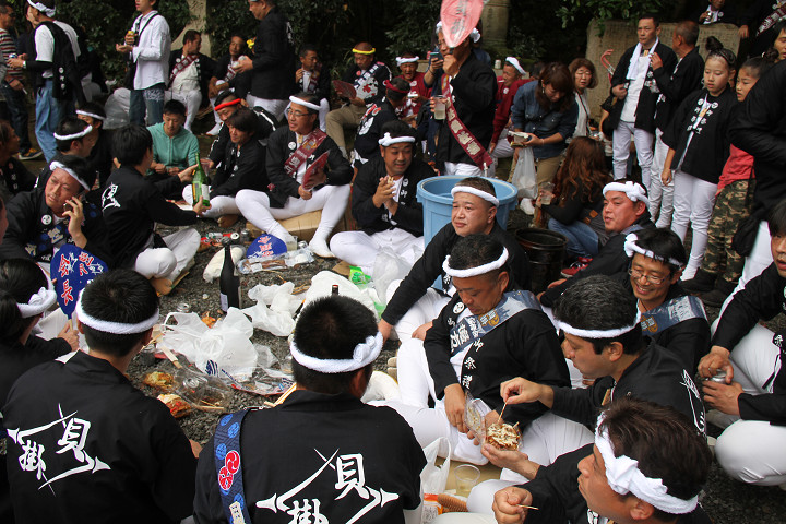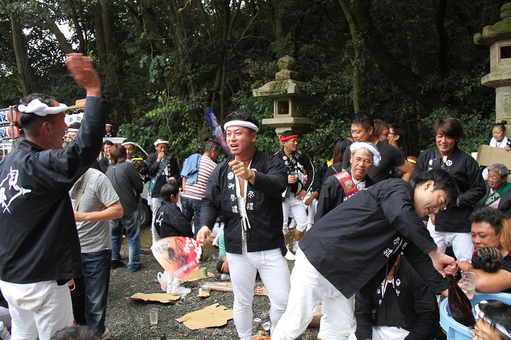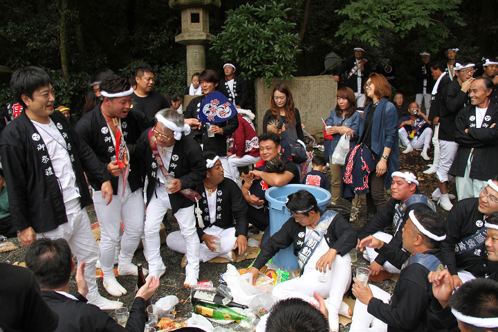 ![]() 再び拝殿前へ、そこで「ケンジ会」と言う名の酒宴に混ぜて頂きました。 |