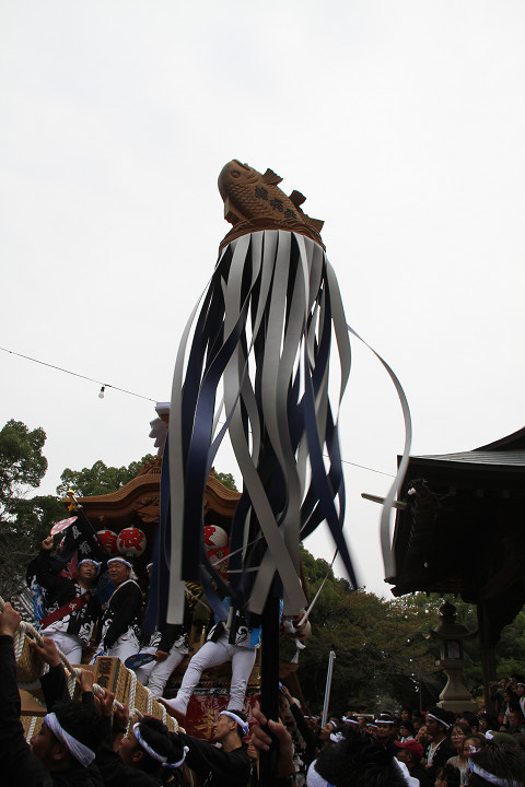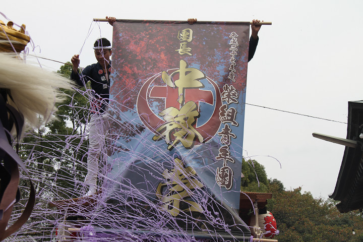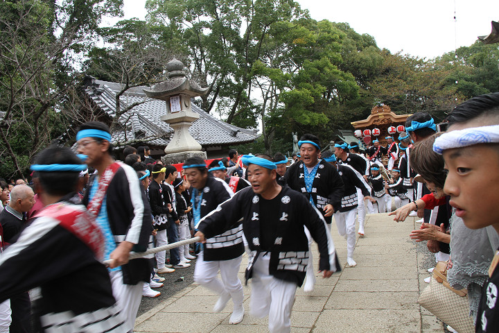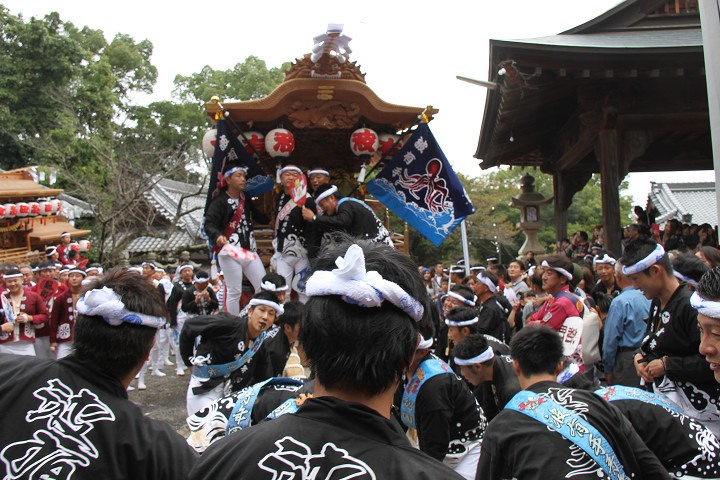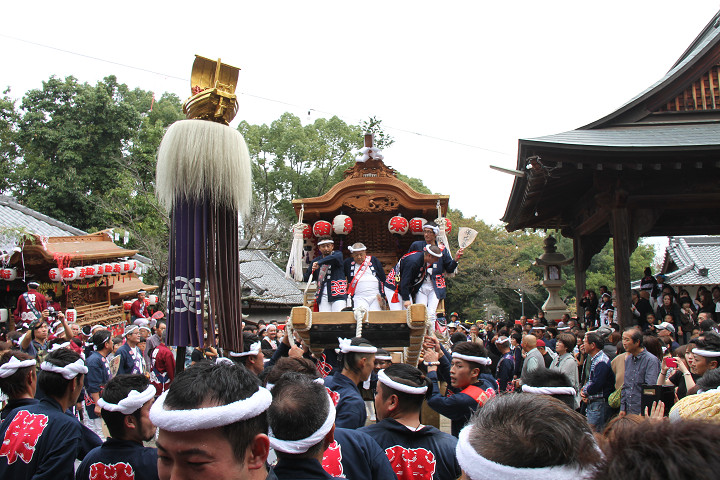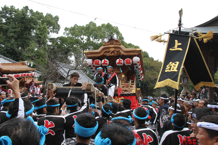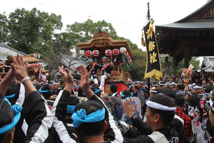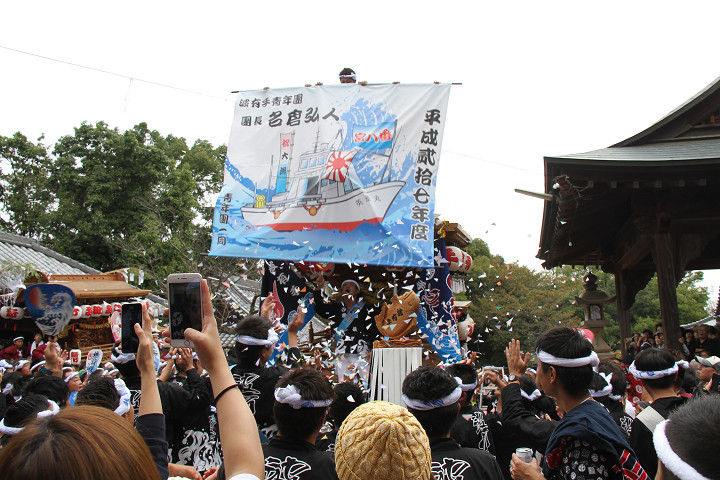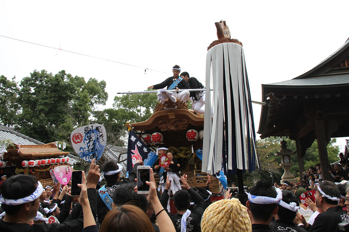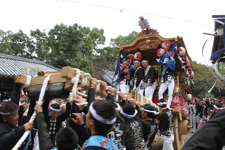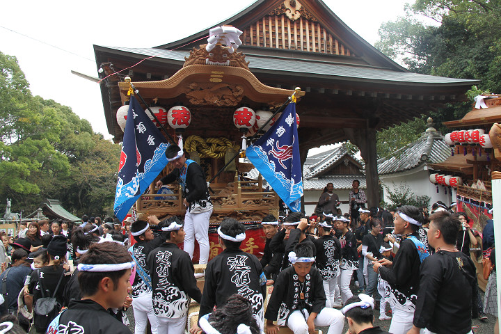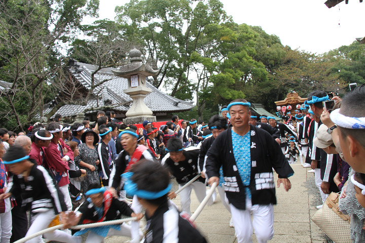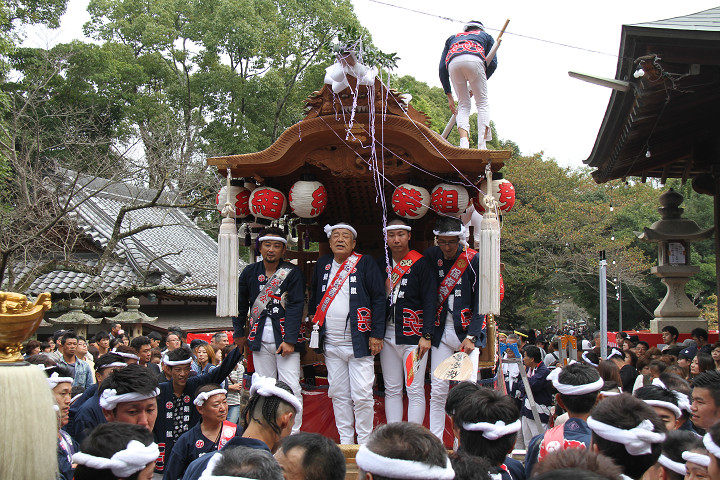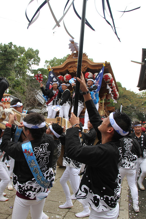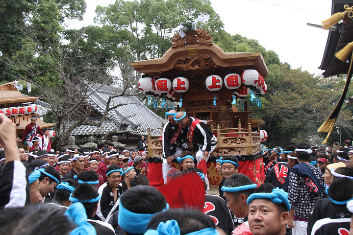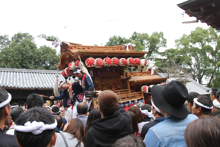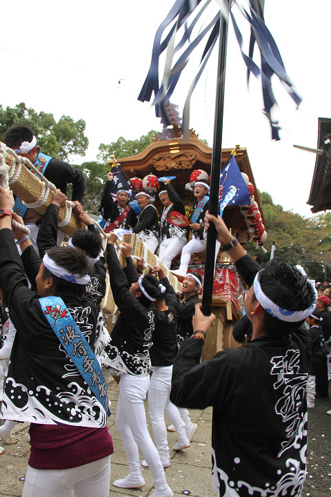 ![]() まもなく波有手組のやぐらが宮上がりを行います。 |