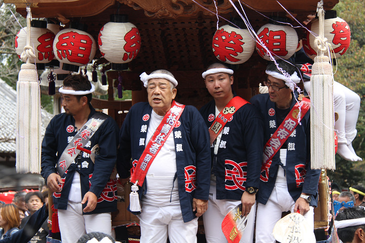 ![]() 榮組の横にやぐらを据えます。 |