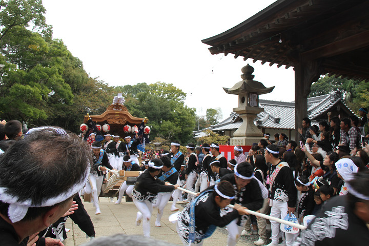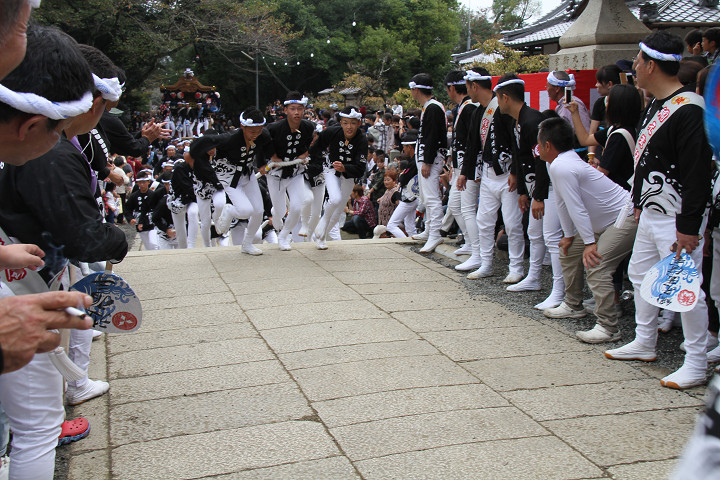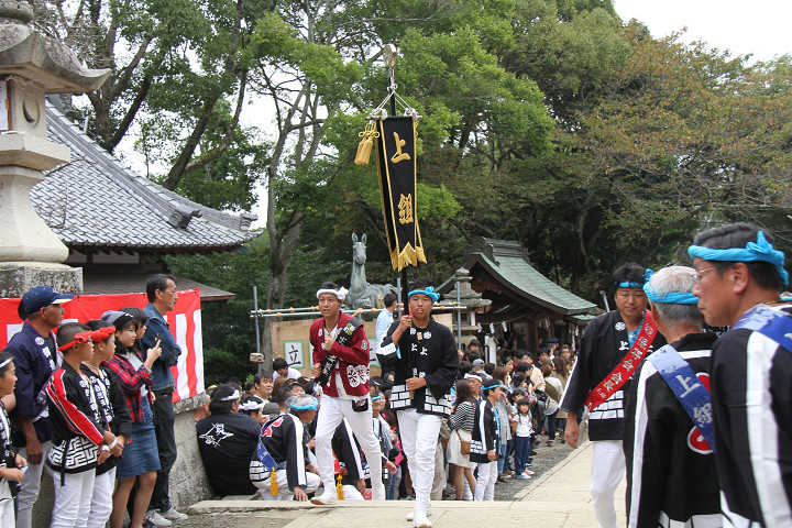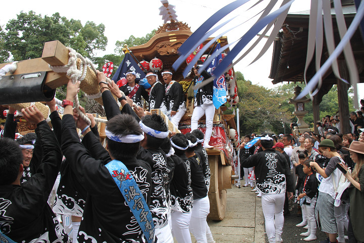 ![]() 次いで西鳥取上組のやぐらが宮上がりをします。 |