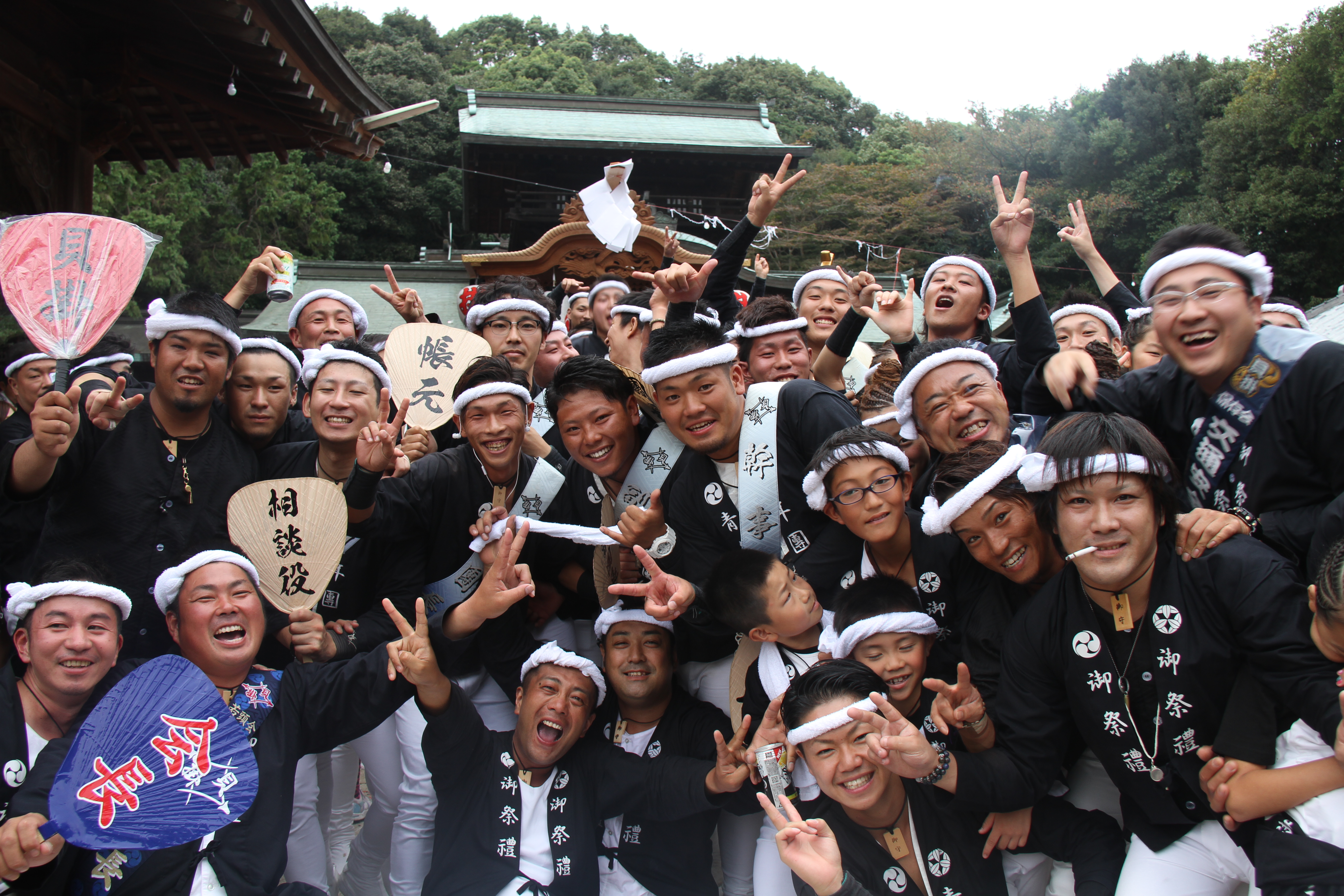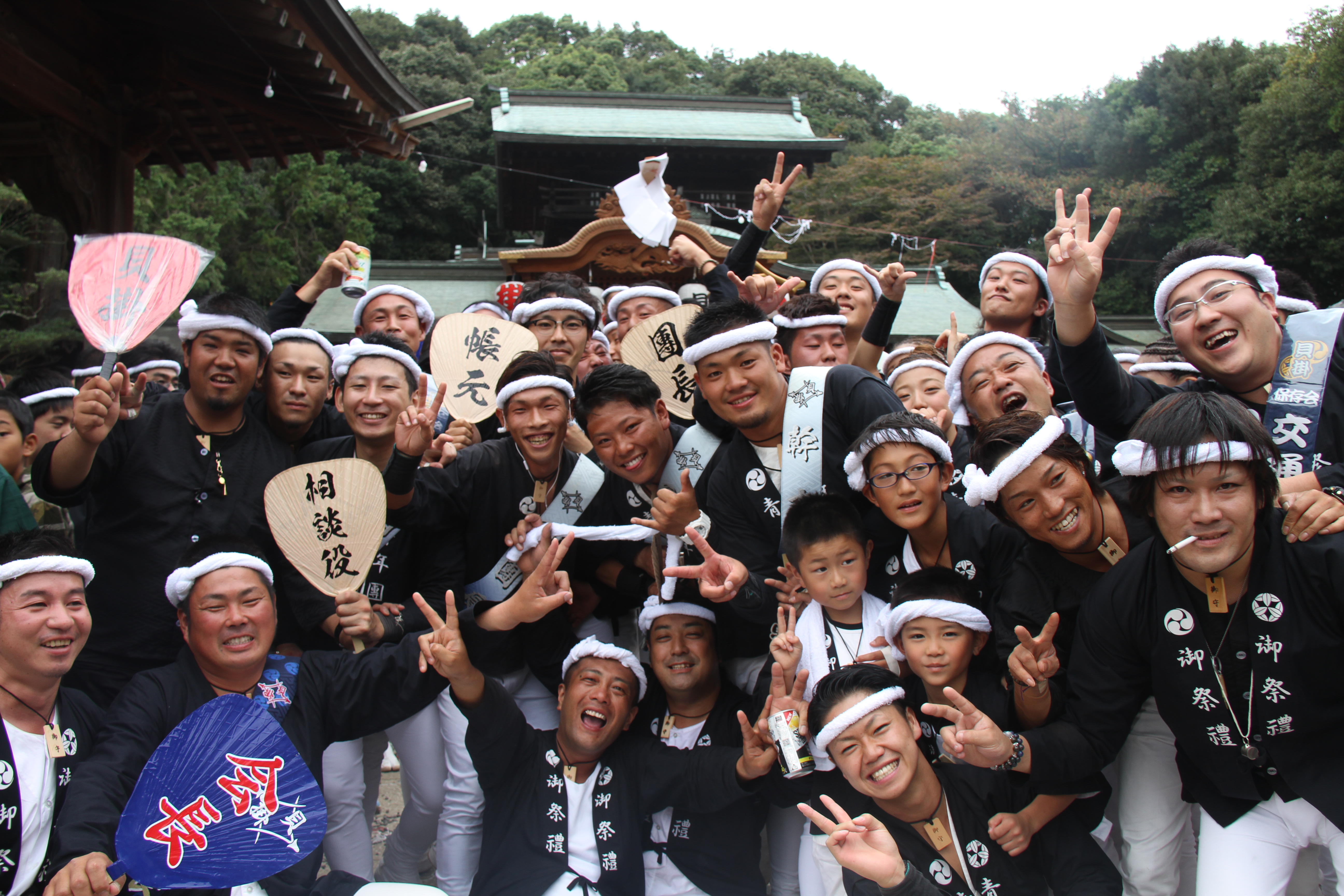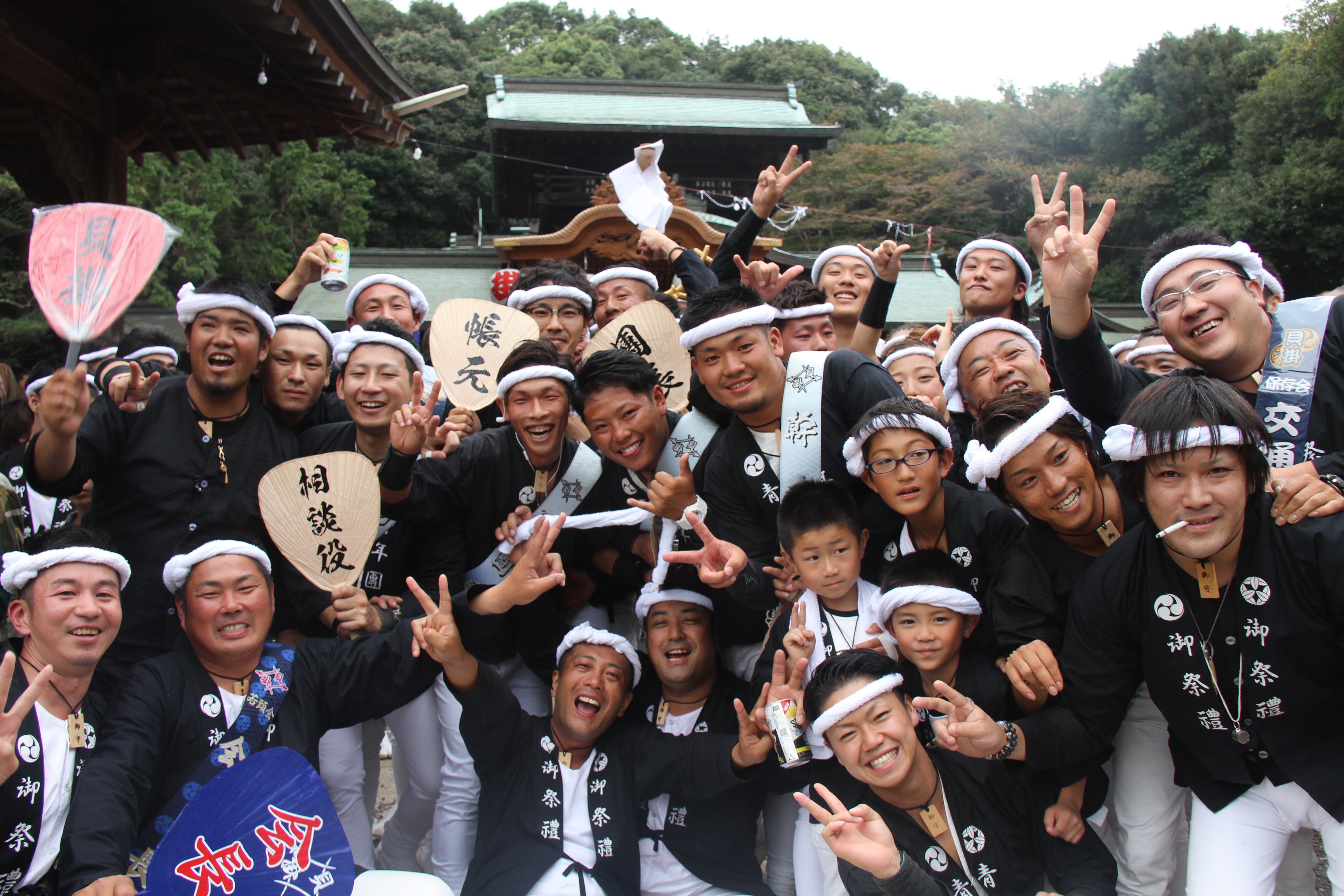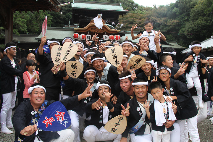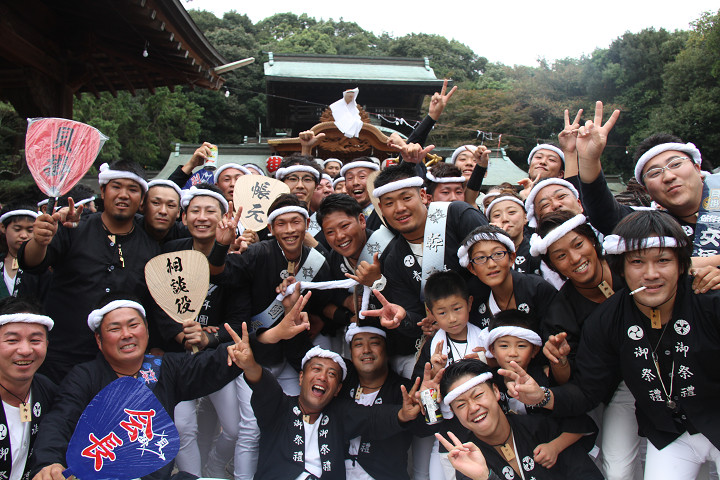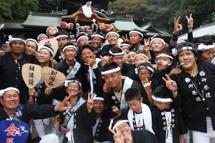 ![]() 我が貝掛はこれから拝殿をバックに記念撮影。 しかもカメラマンは泥酔気味の小生が…。 |