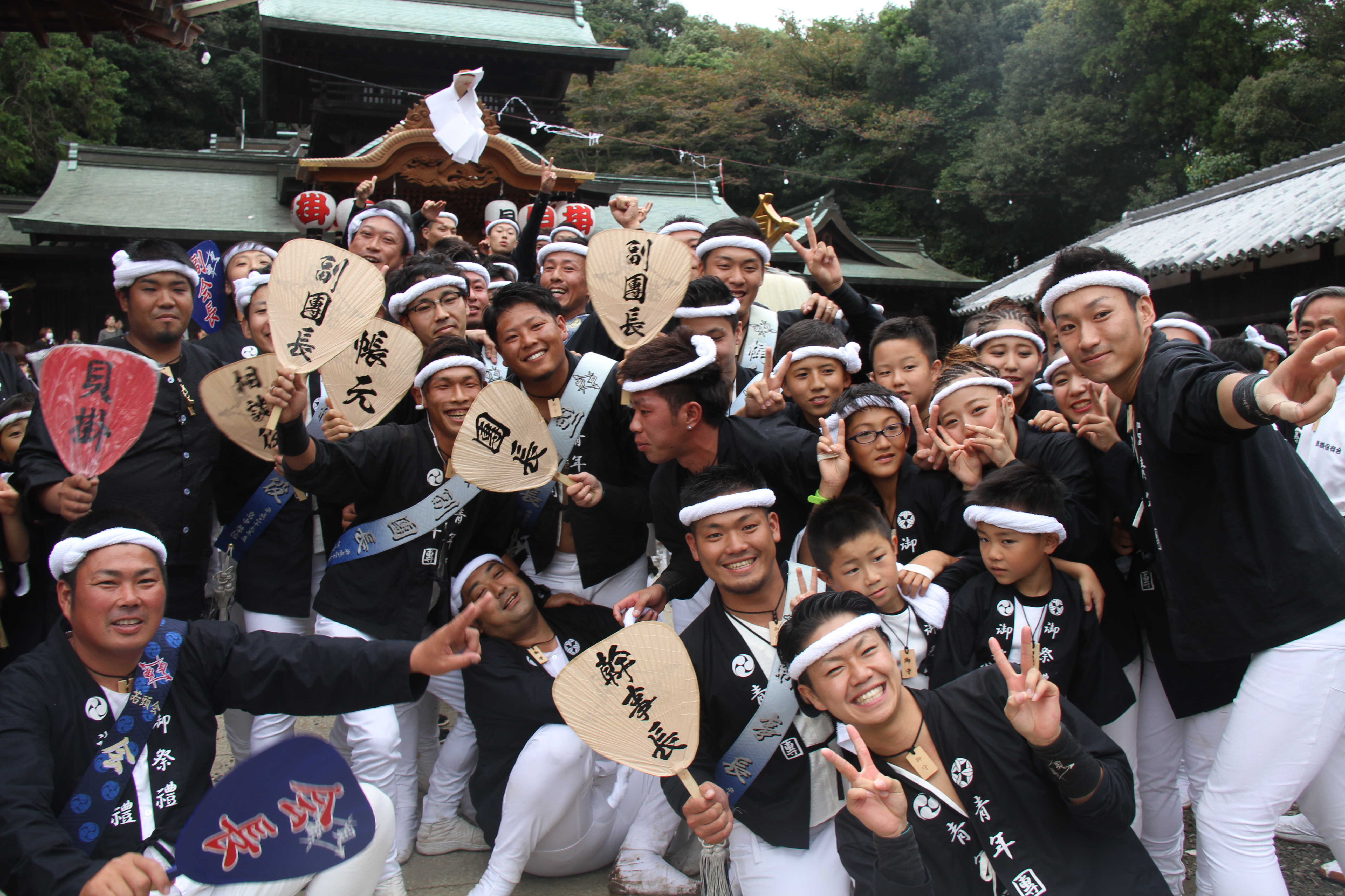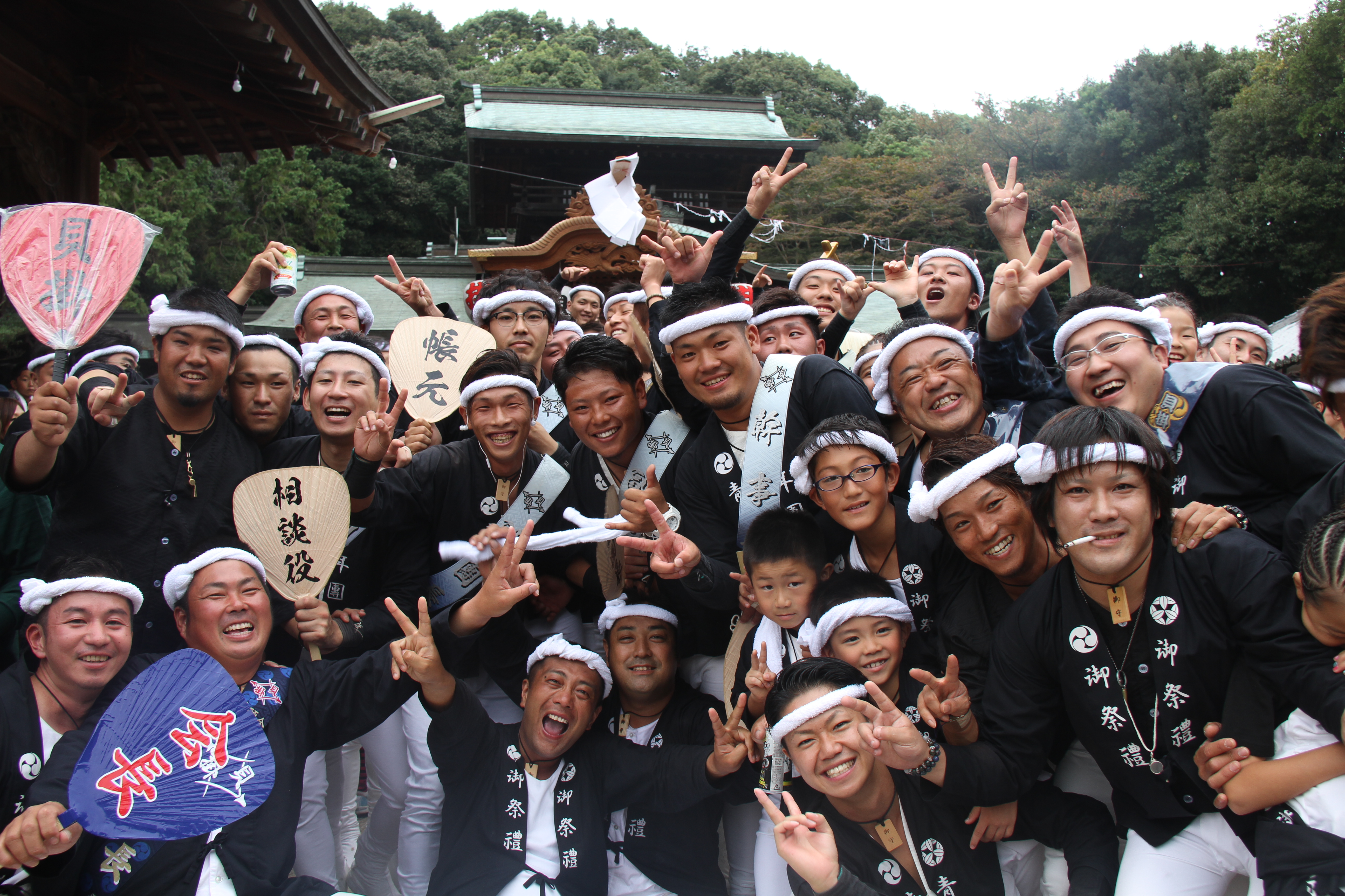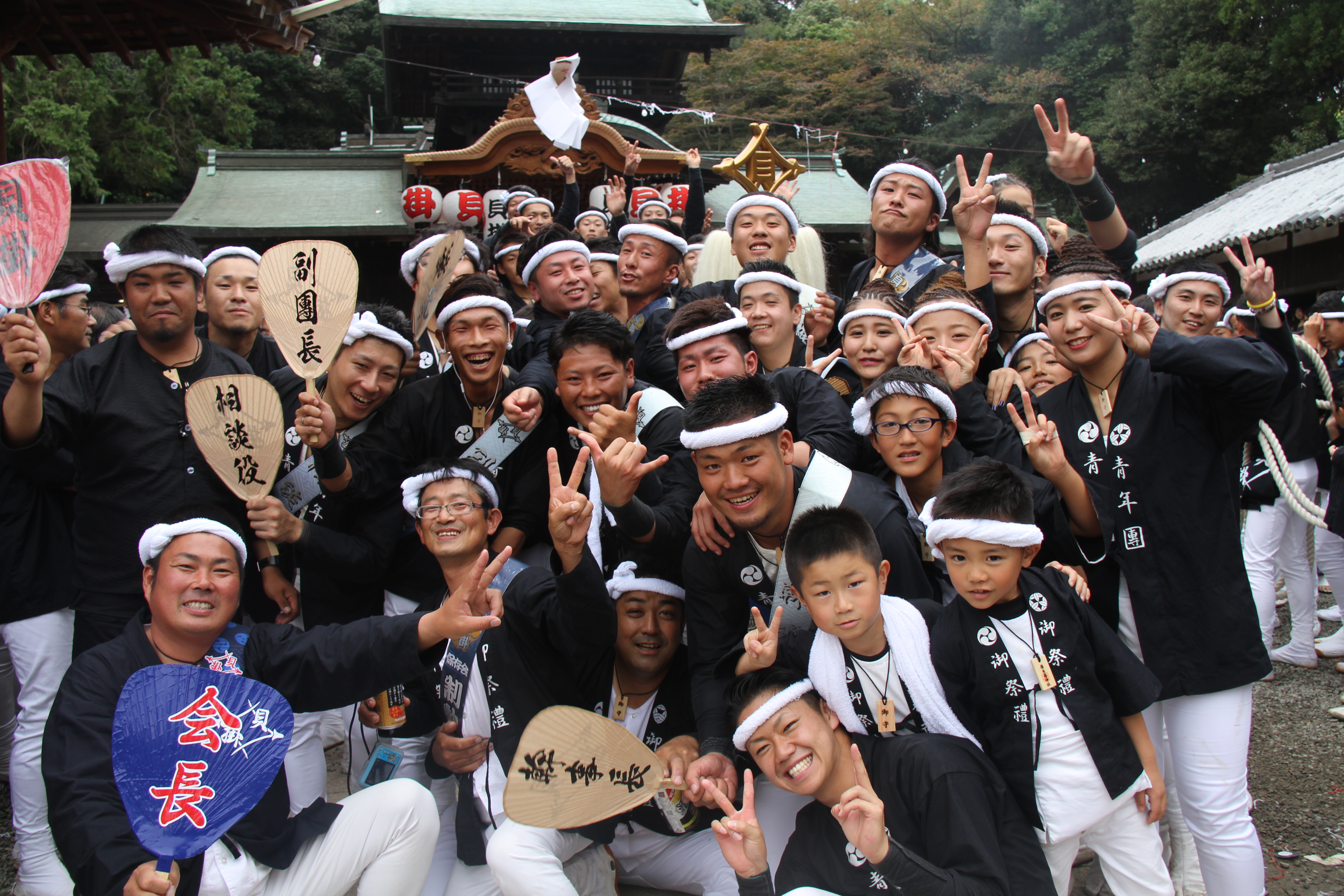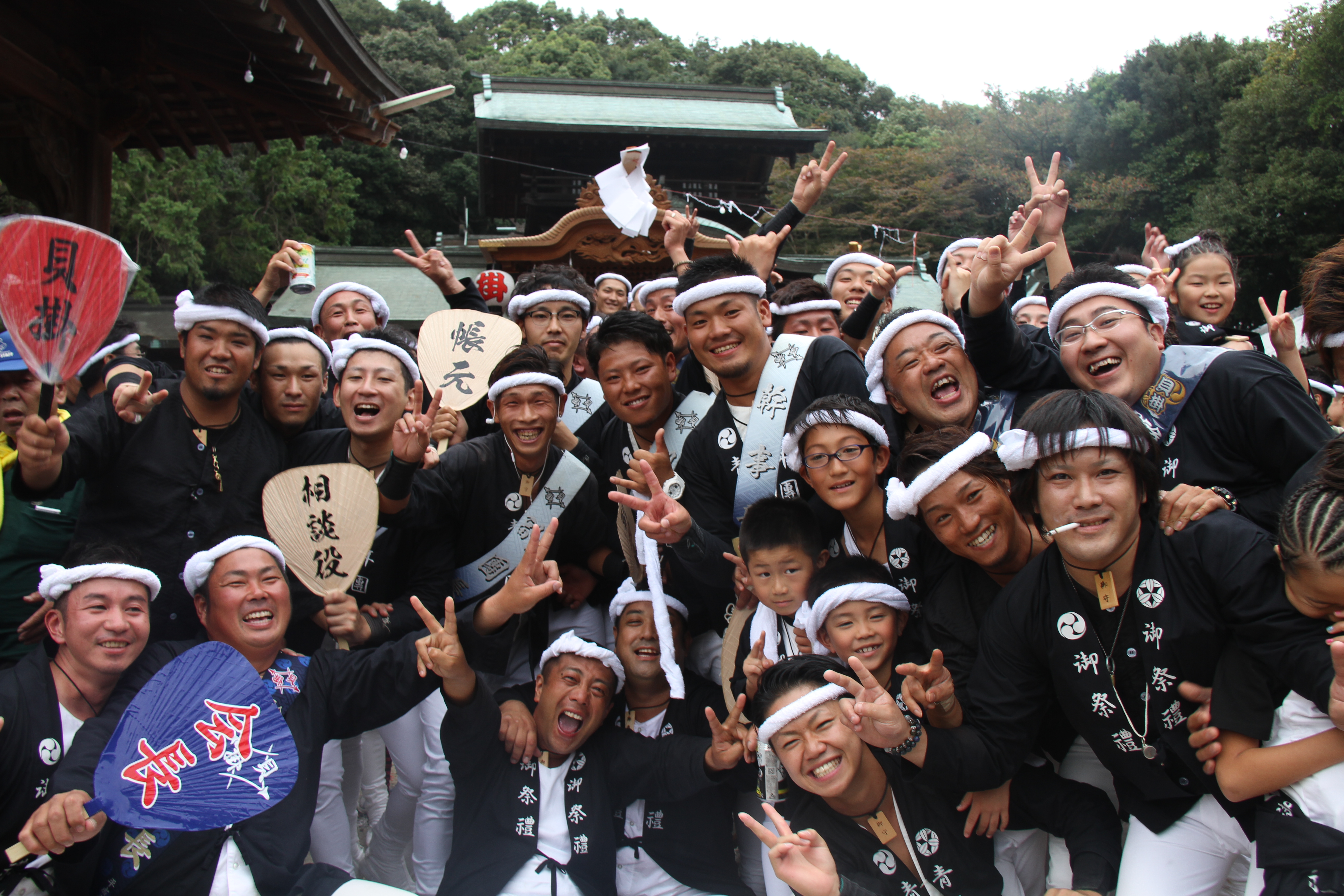 ![]() 我が貝掛はこれから拝殿をバックに記念撮影。 しかもカメラマンは泥酔気味の小生が…。 |