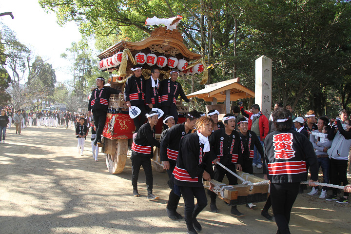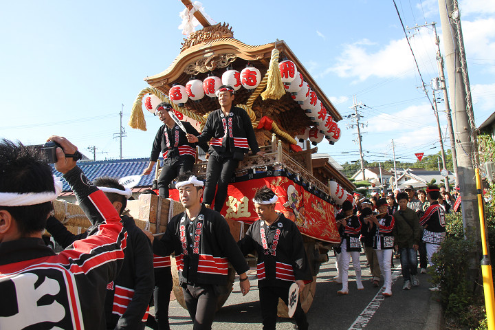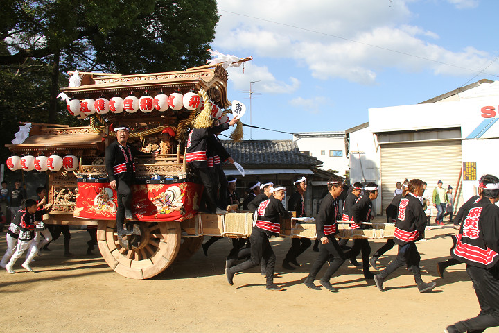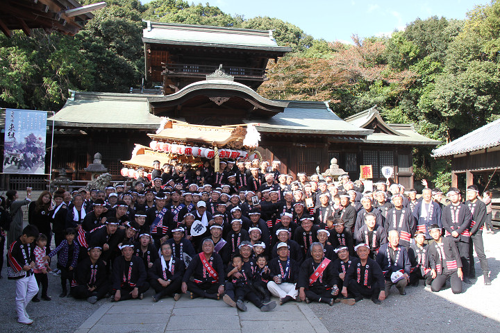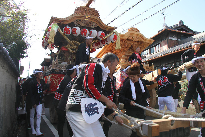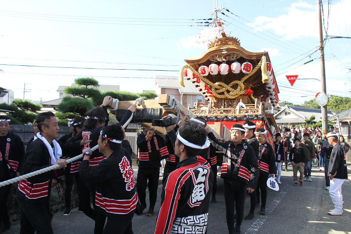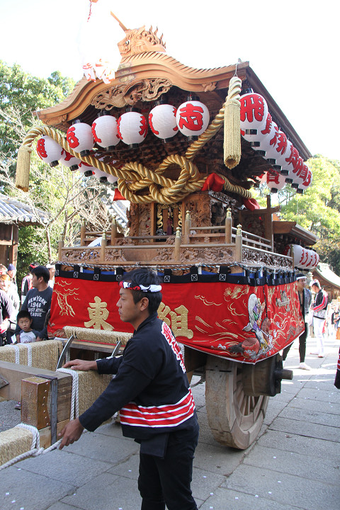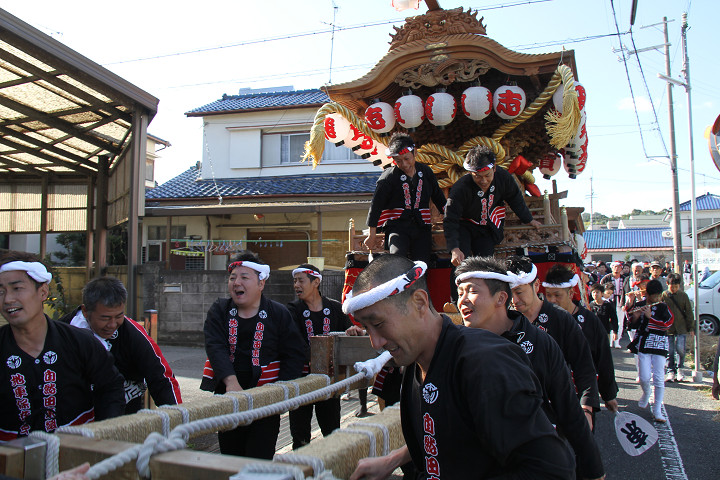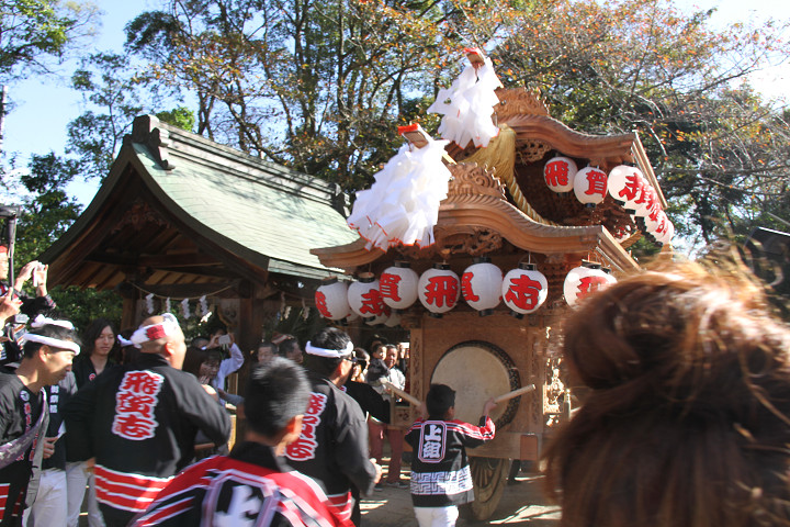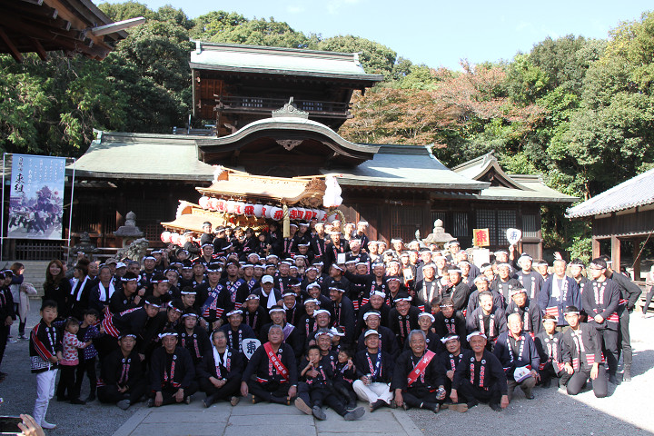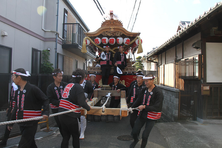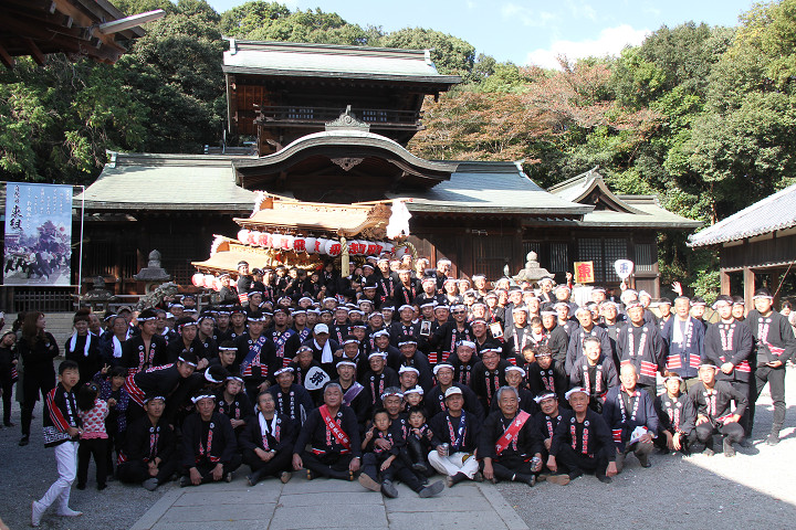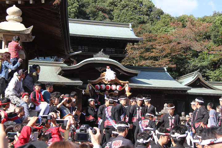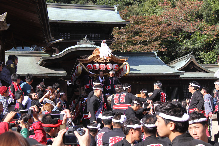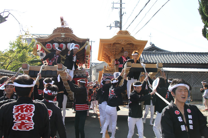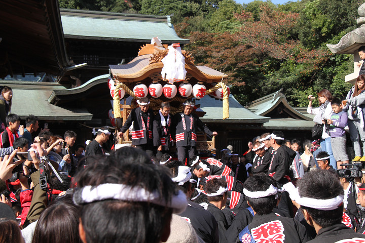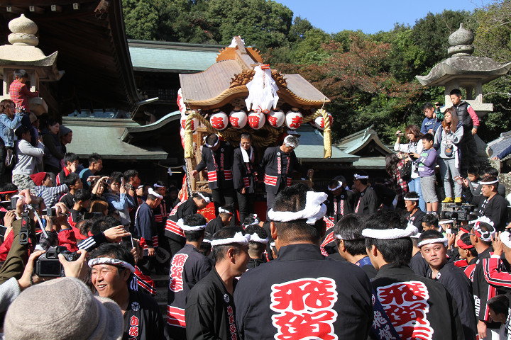 ![]() 双方の自治会長が互いのやぐらに乗ります。 |