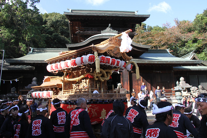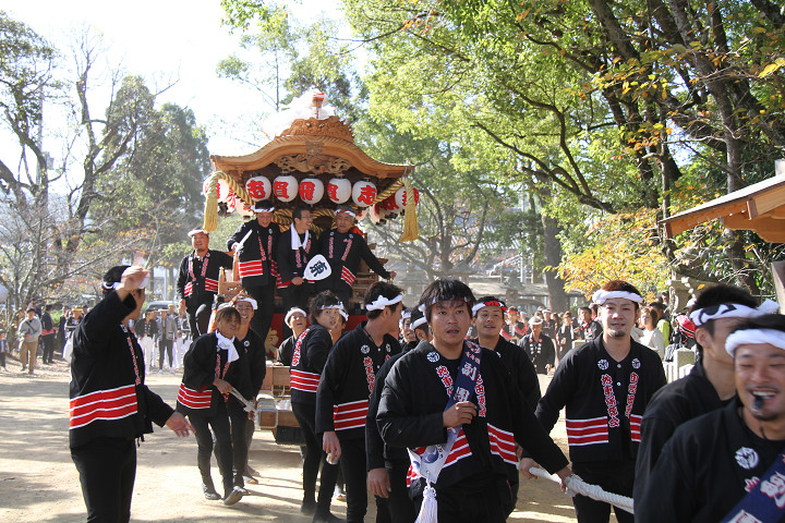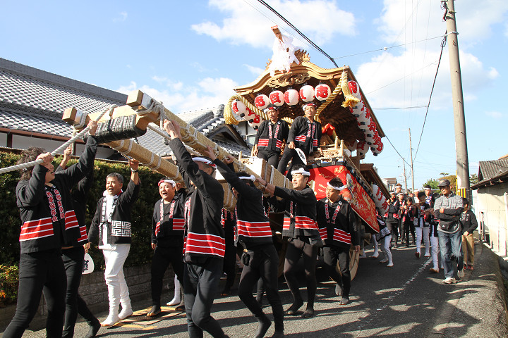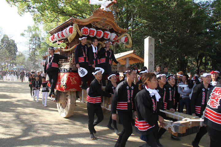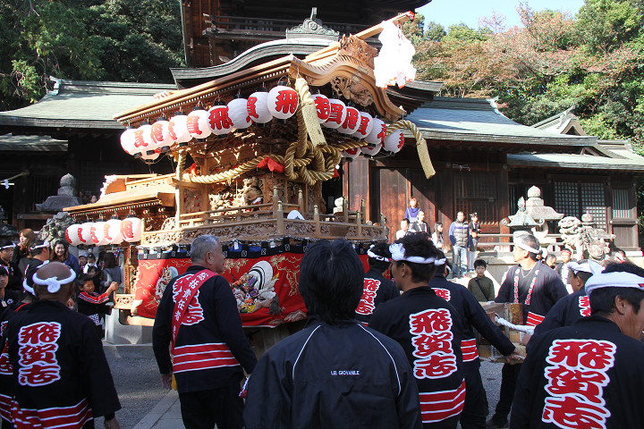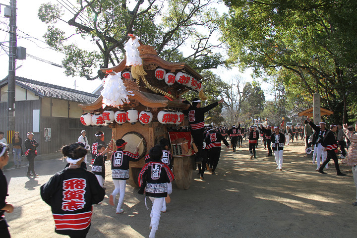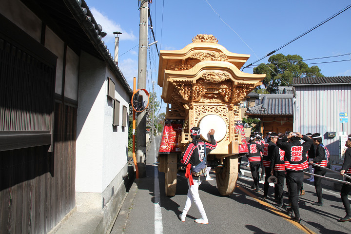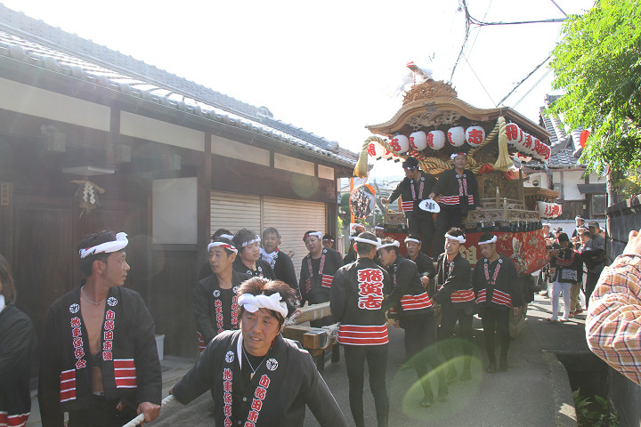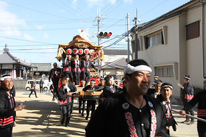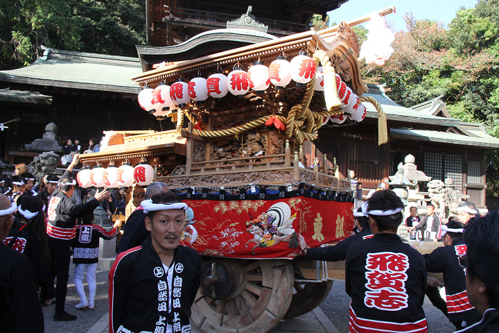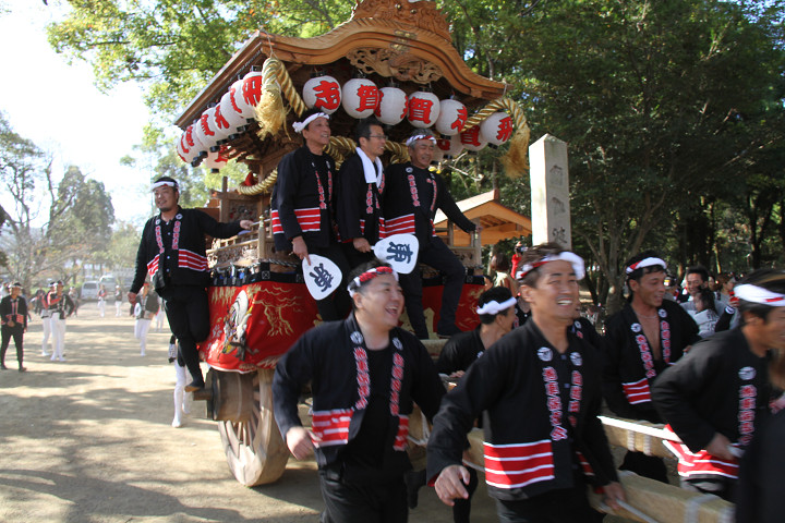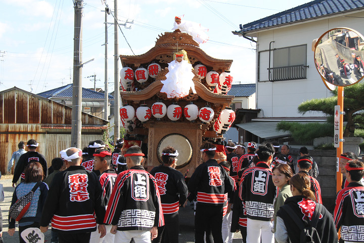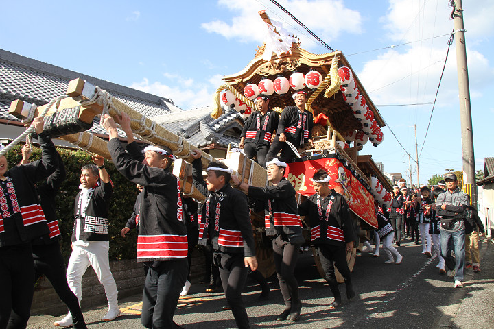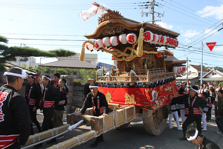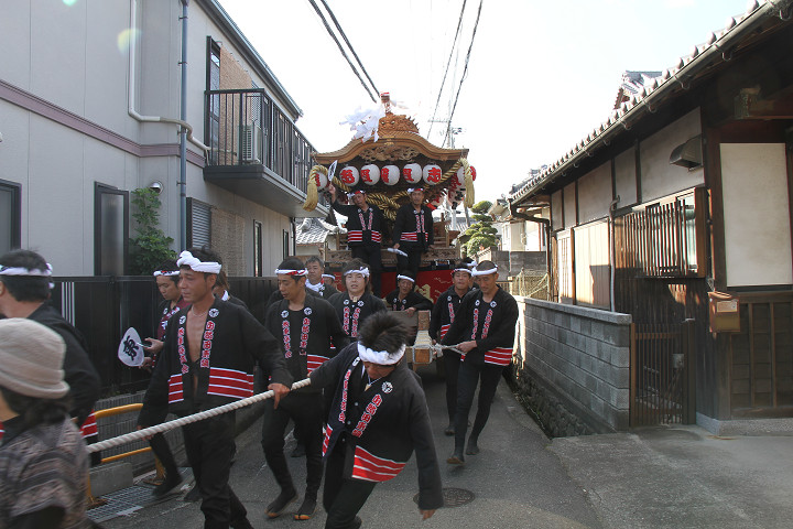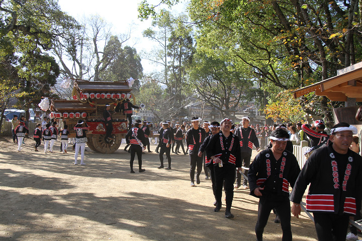 ![]() 双方の自治会長が互いのやぐらに乗ります。 |