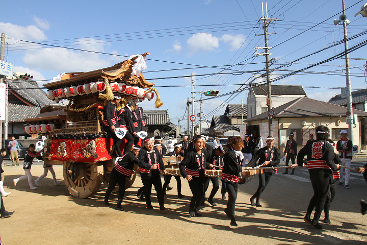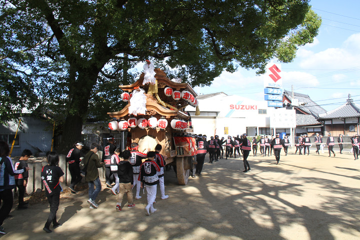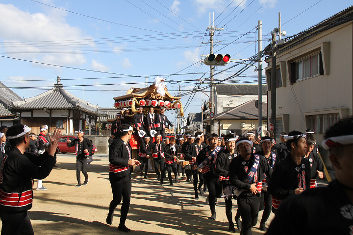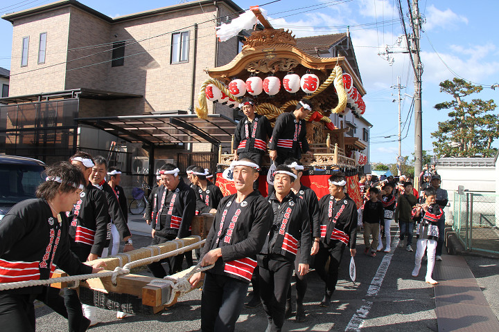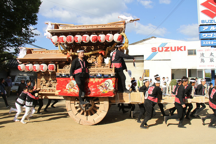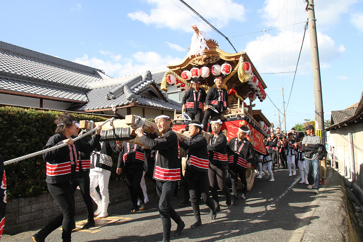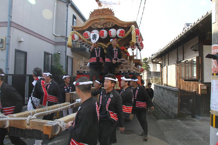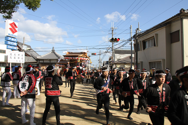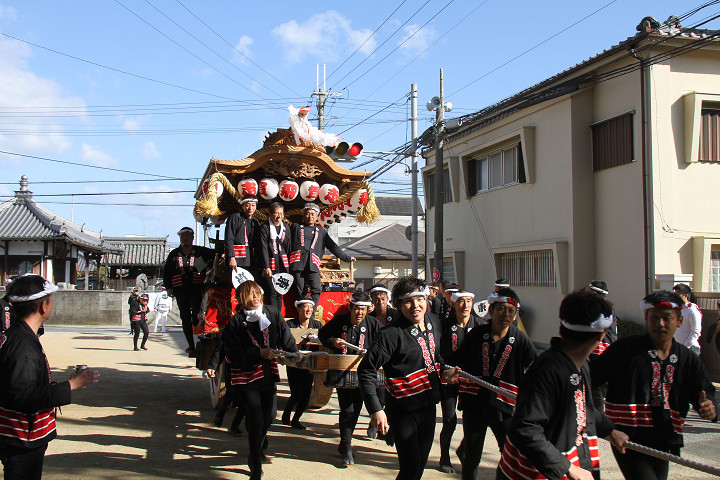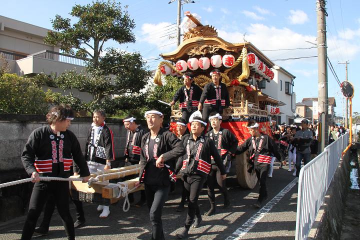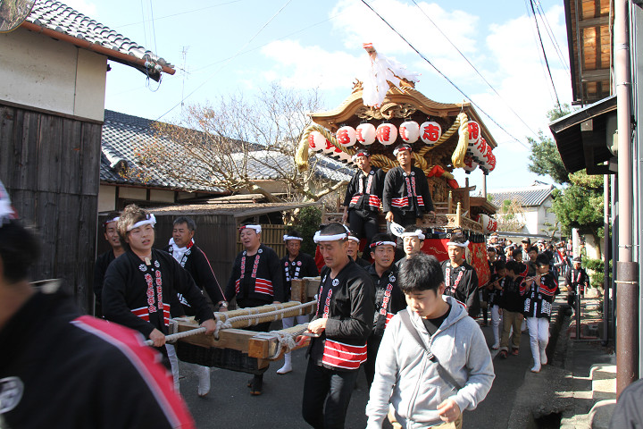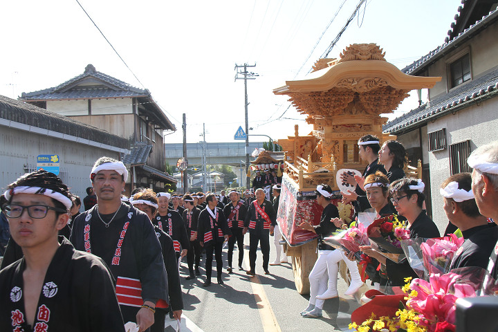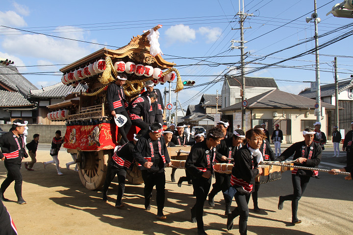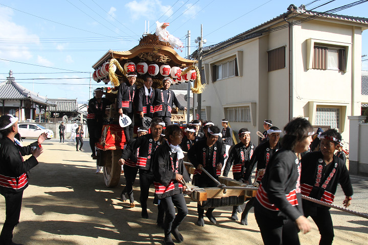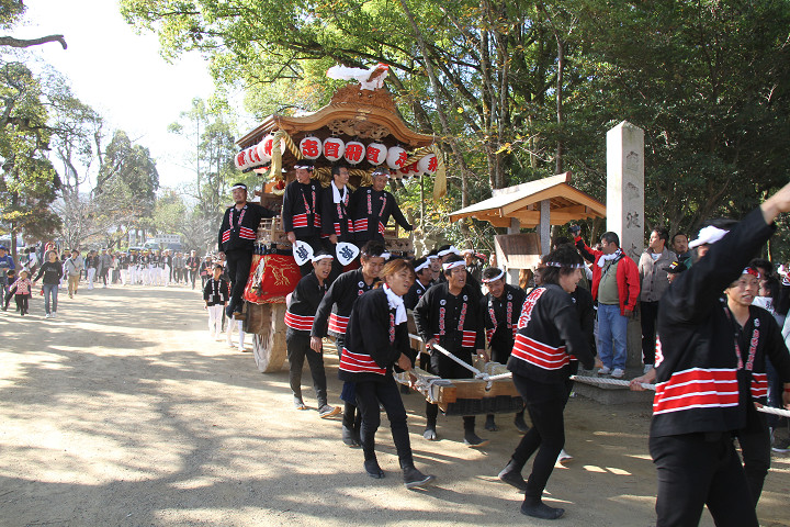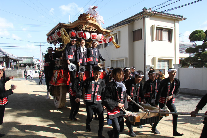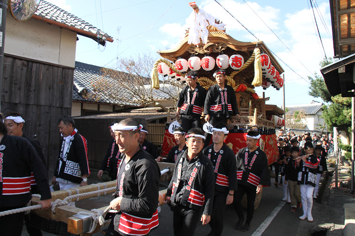 ![]() 双方の自治会長が互いのやぐらに乗ります。 |