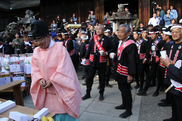 ![]() 先ほどよりも増えた御祝いの酒。 |