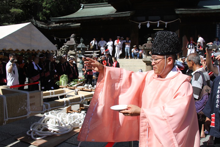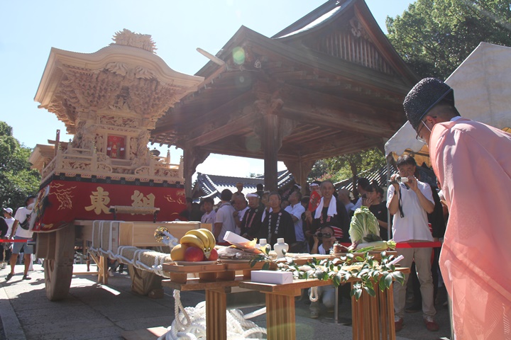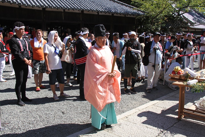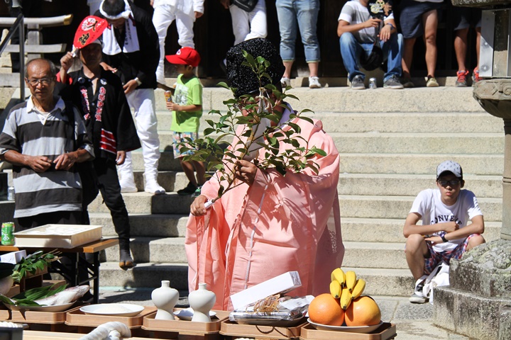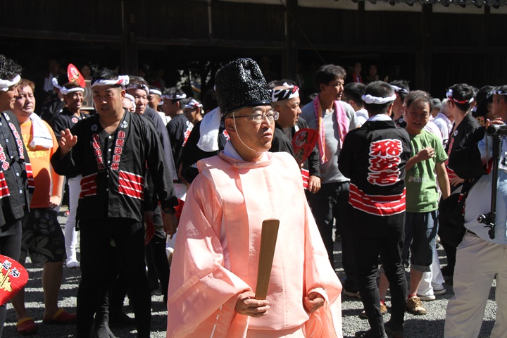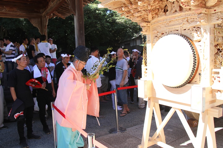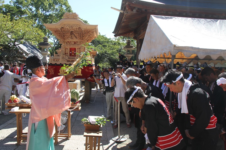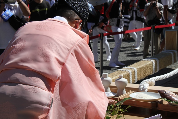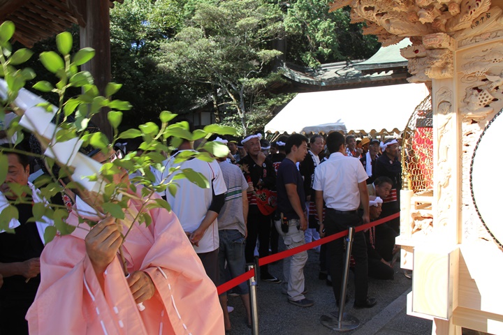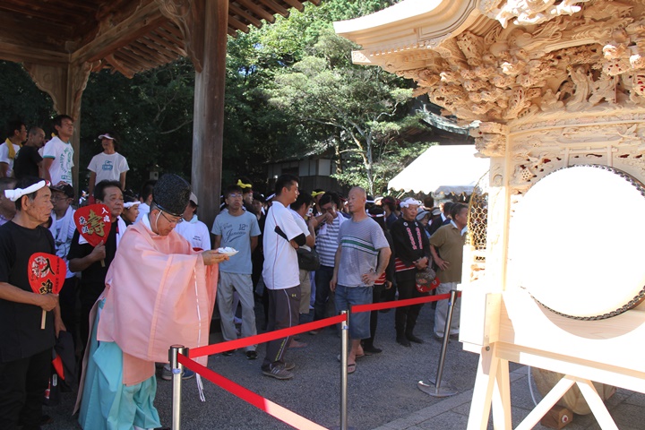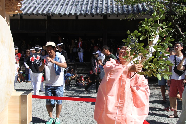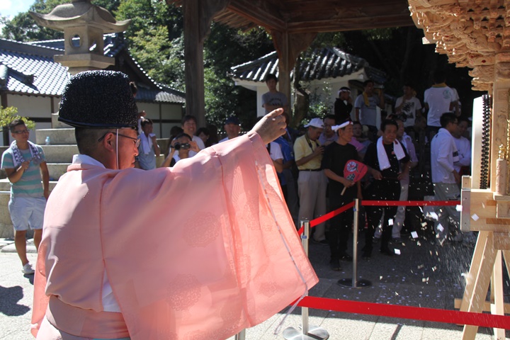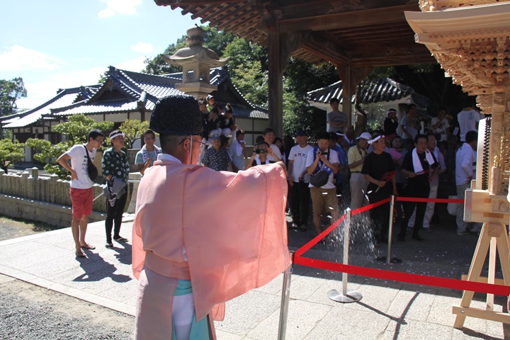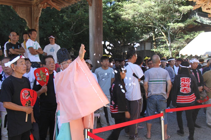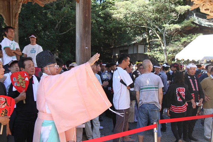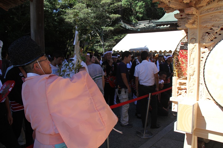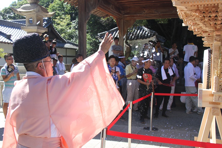 ![]() あまりの暑さゆえいつもの入魂式よりも左手の人がまばらです。 |