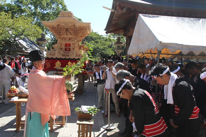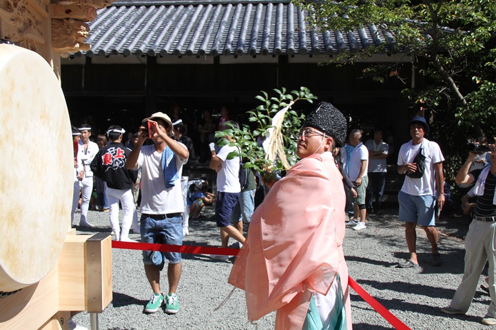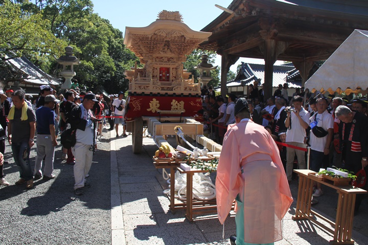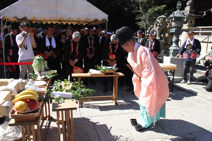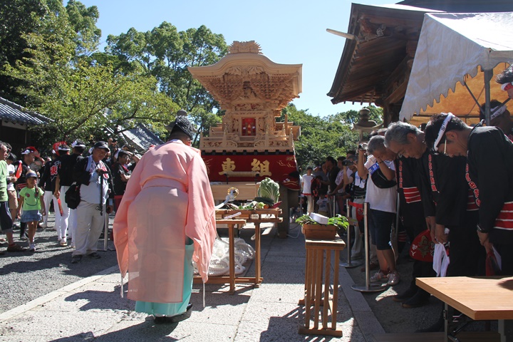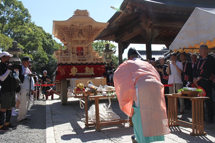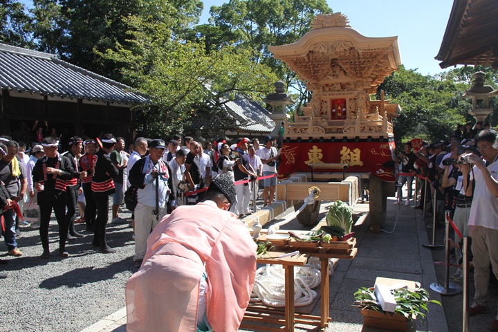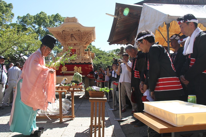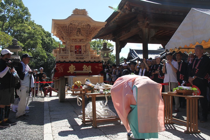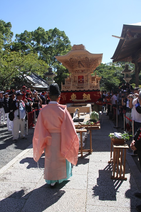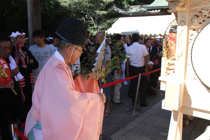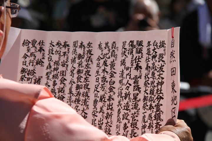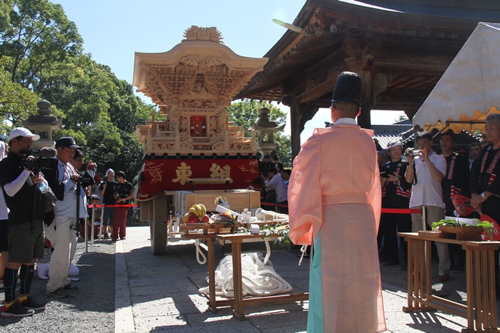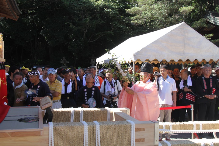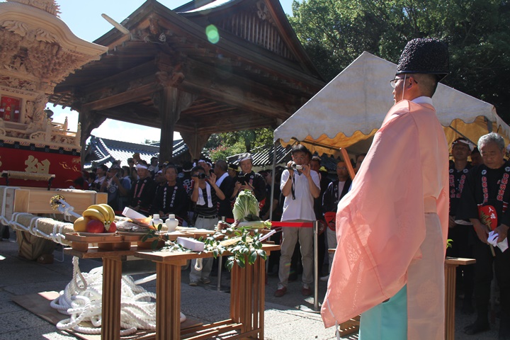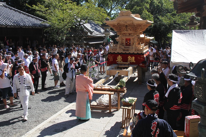 ![]() あまりの暑さゆえいつもの入魂式よりも左手の人がまばらです。 |