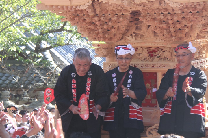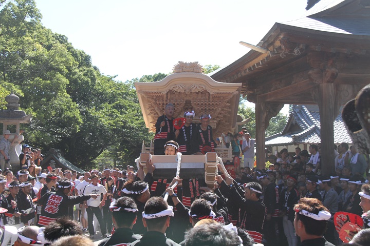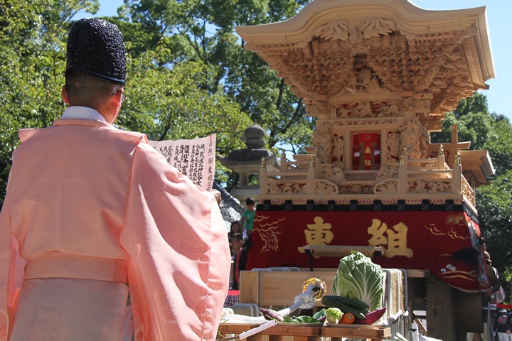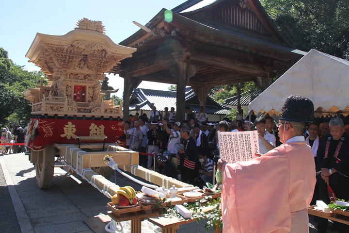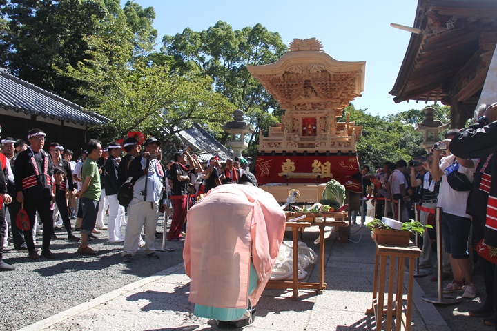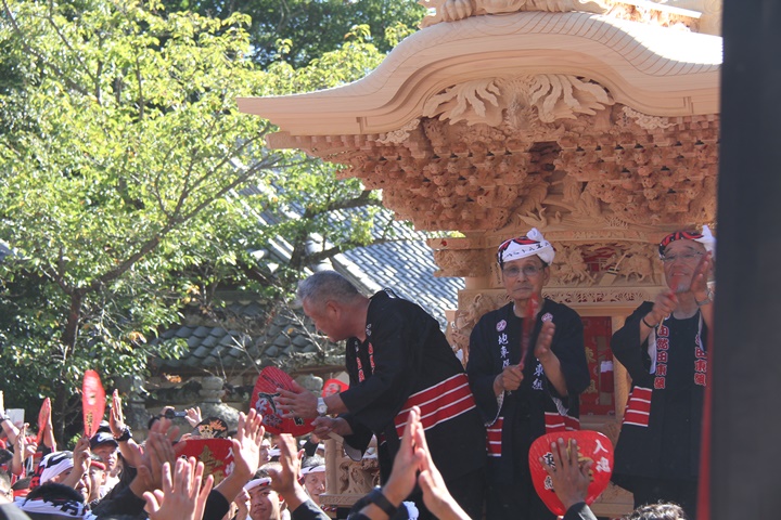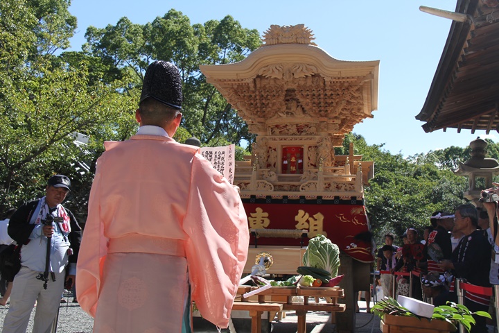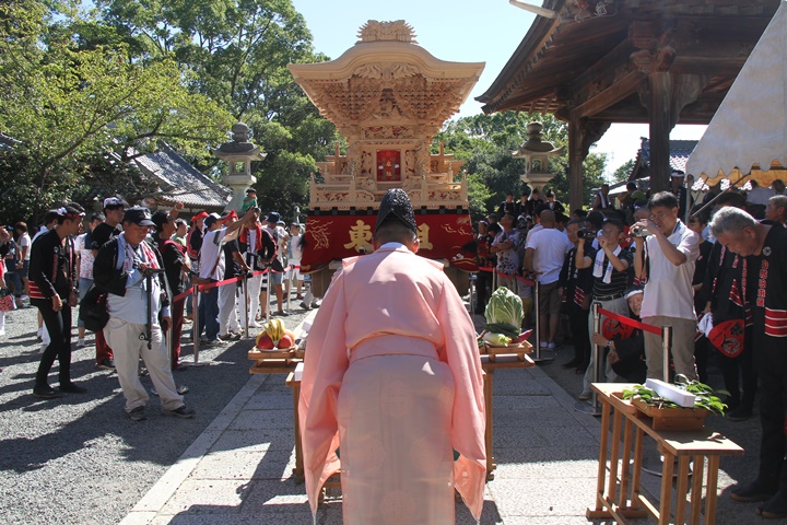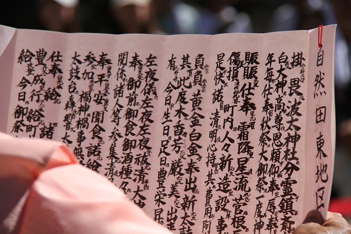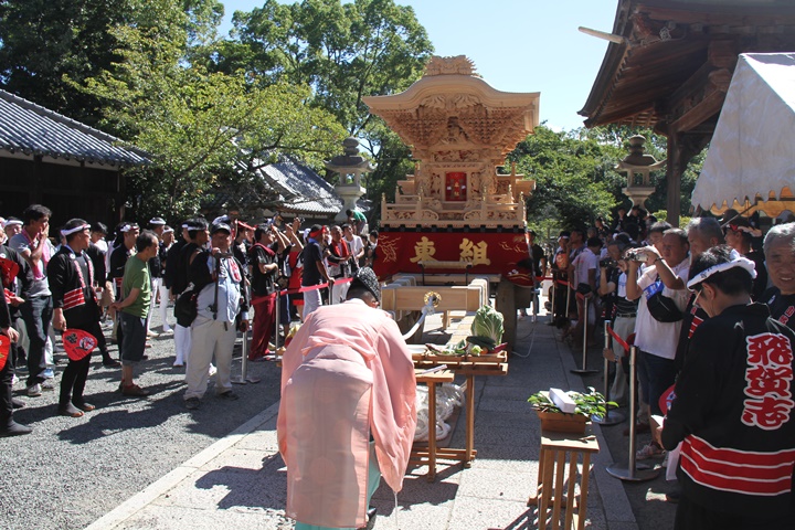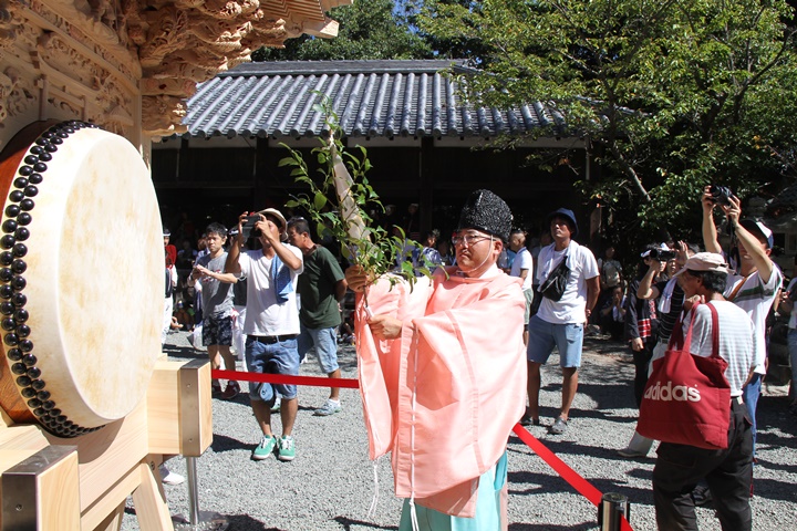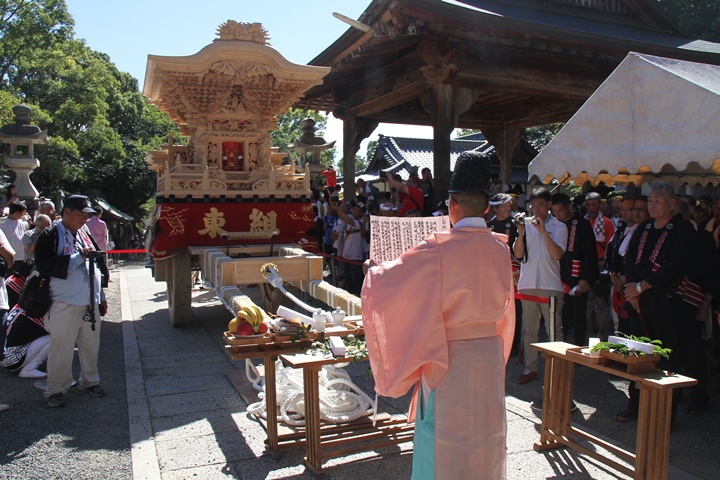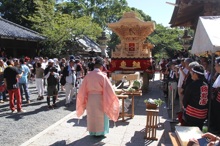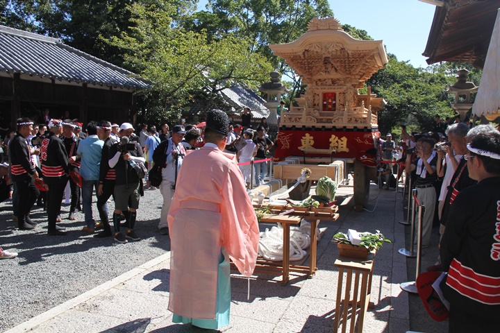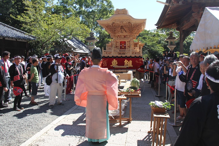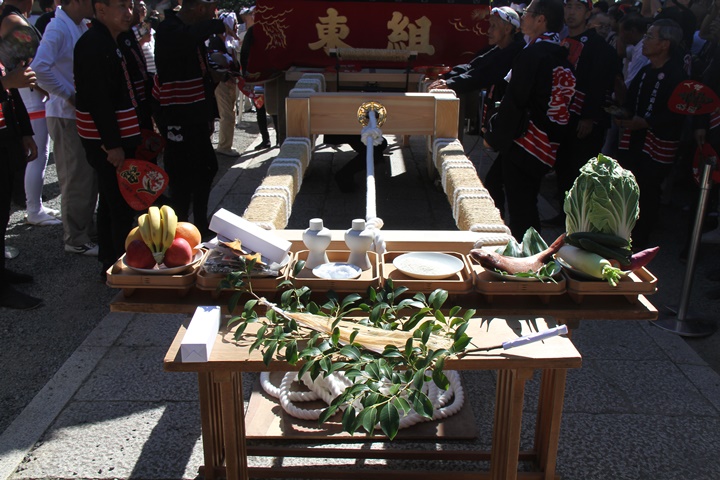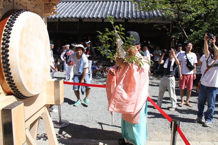 ![]() あまりの暑さゆえいつもの入魂式よりも左手の人がまばらです。 |