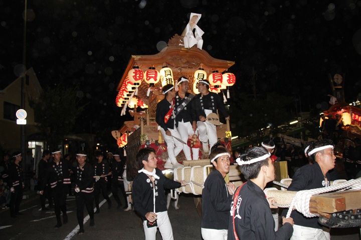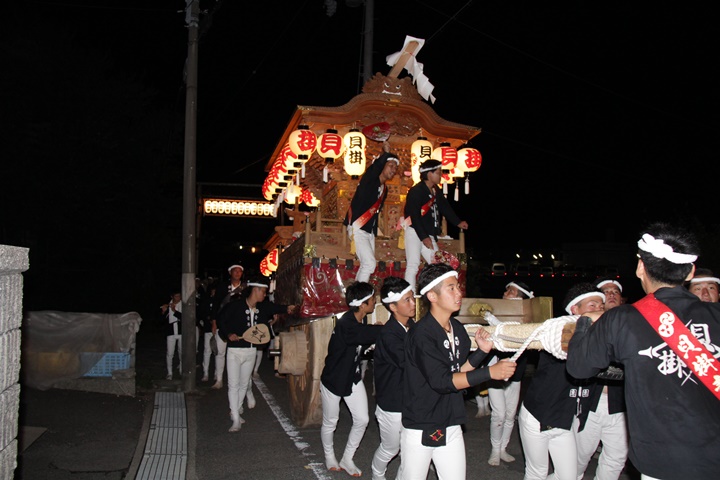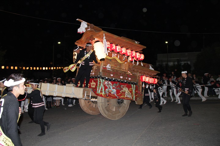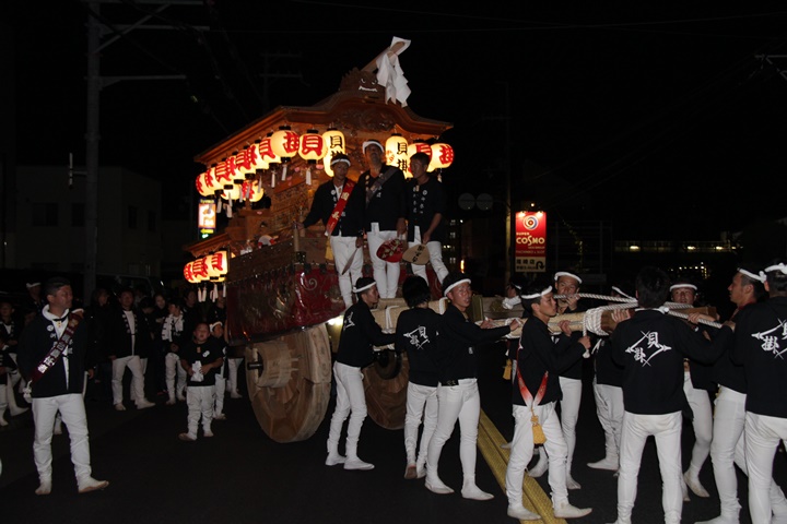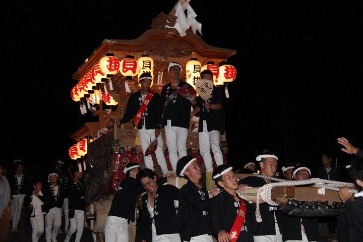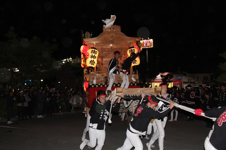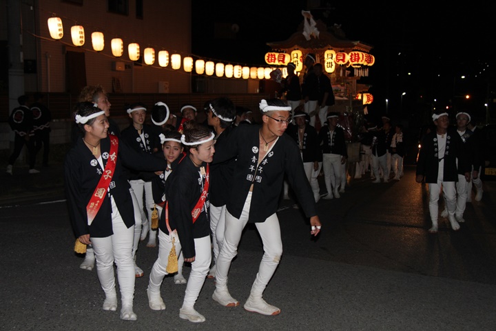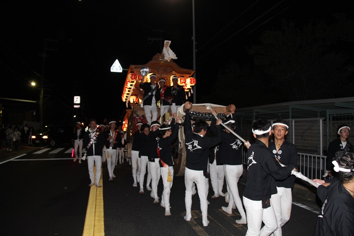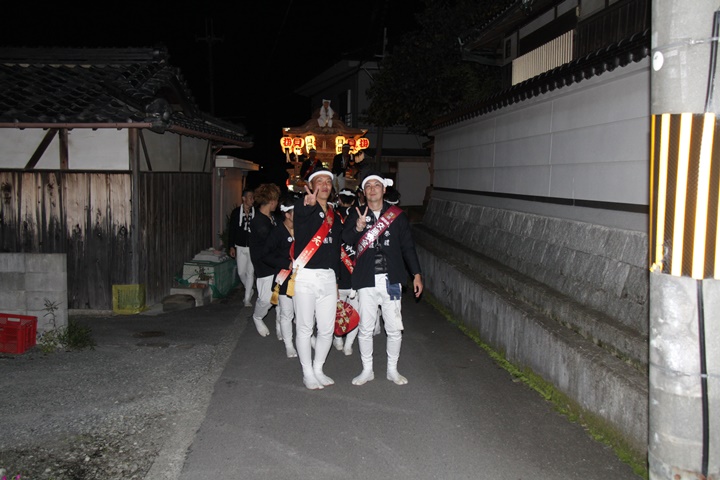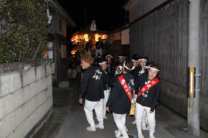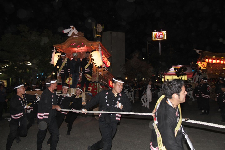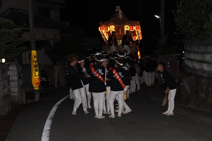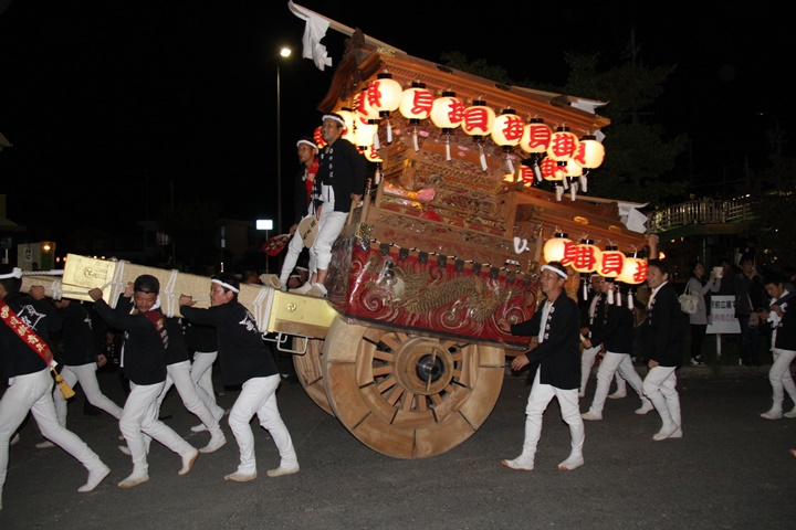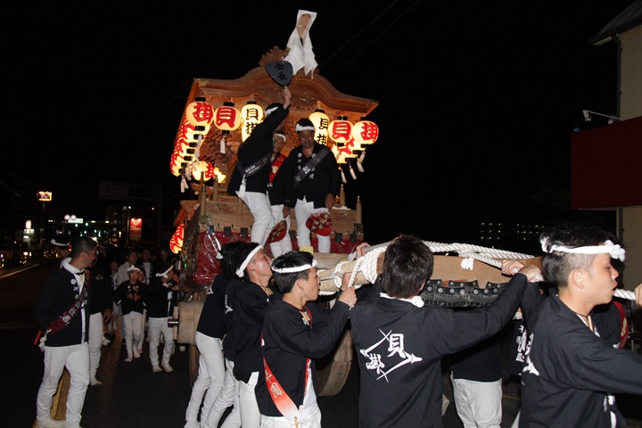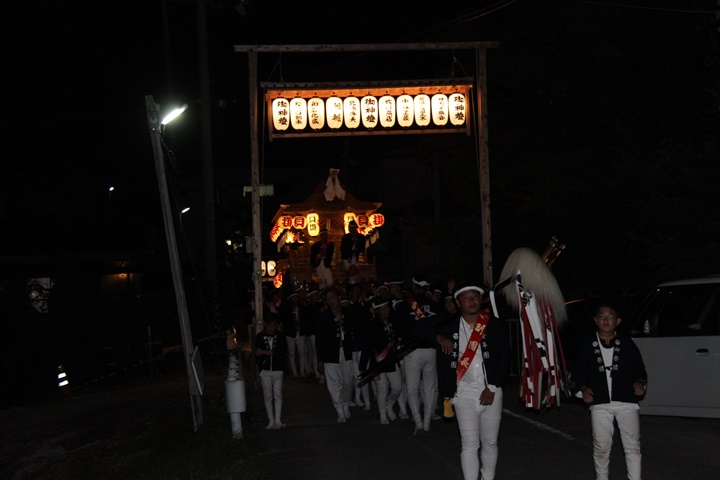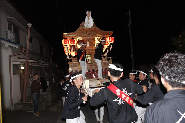 | 平成28年の秋祭りも無事終わりました。後宮では生まれて初めて自町から離れ他町、しかも神輿渡御へ参加すると言う今までにない祭りをさせて頂きました。今日の感想はやぐらも大切ですが波太神社の祭りと言うか、神事は神輿渡御なんだと改めて認識しました。そして今年は幼馴染みのMくんが若頭会会長と言う重職をされており、感慨無量な祭りでした。ともあれ事故や怪我もなく祭りを終えられて良かったです。 結局今日は神輿渡御を1,192枚、自町の後宮を600枚、合計1,792枚撮影させて頂きました。パレード・本宮・後宮合わせて合計4,698枚もの写真を撮影、この莫大な写真の中、当サイトを御覧の皆様方の思い出の写真が一枚でも埋もれていれば管理人冥利に尽きるかと思います。 ◎ 自町やぐら曳行の記録 指出森神社 → (村中1周) → ぶんすけ前 → スカイタウンロード入口(箱作東,箱作西と合流・青年團イベント「ザ・勝負」) → 箱作東の浜 → 下荘漁港 → 西踊り場(箱作東,箱作西と離散) → (国道26号線経由) → 武輪駐車場(餅投げ) → 菅原神社(箱作東,箱作西と合流) → 箱作駅ロータリー(箱作東,箱作西とまっせー・離散) → (国道26号線経由) → (村中1周) → 指出森神社 |