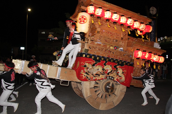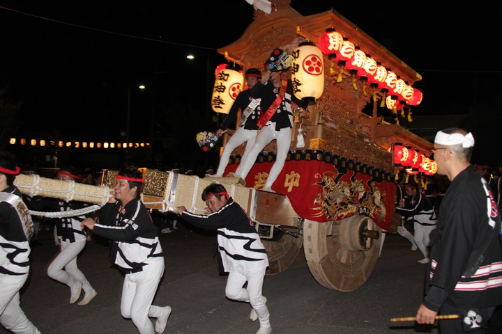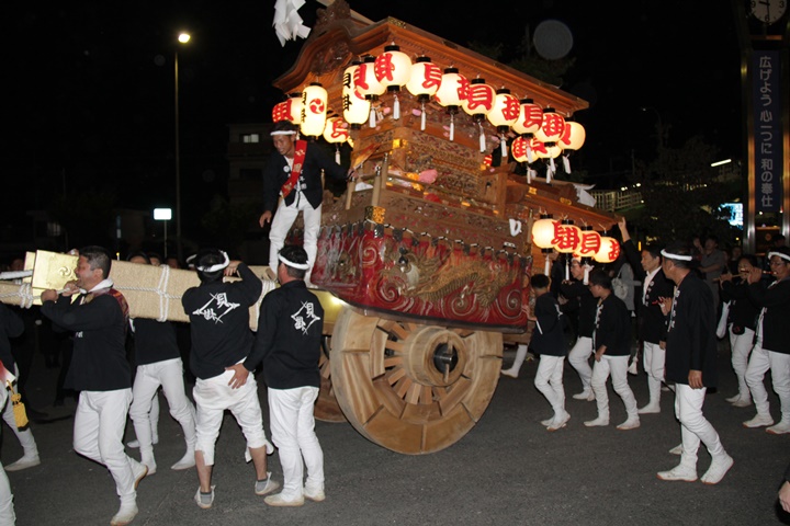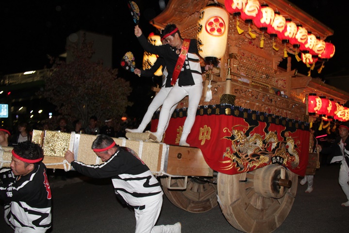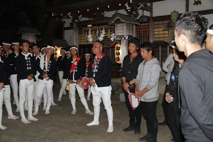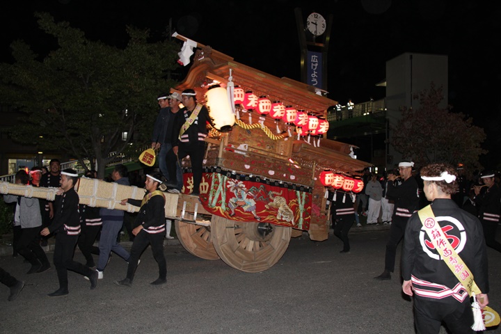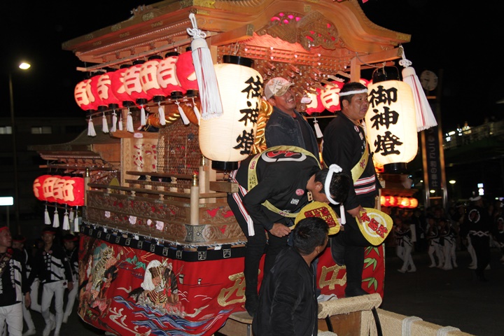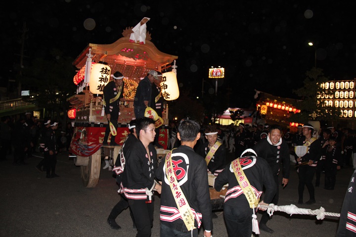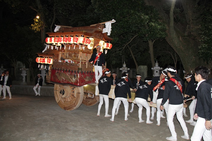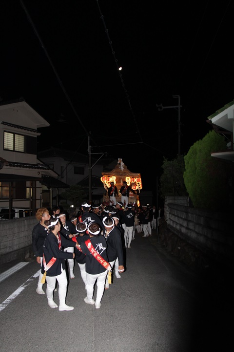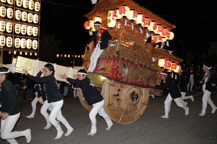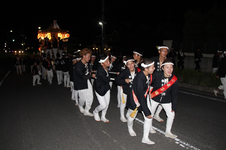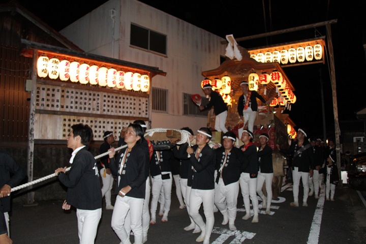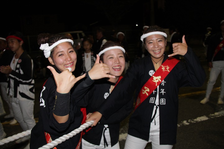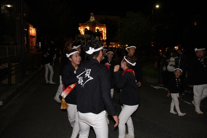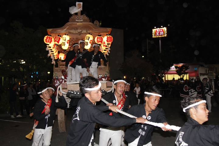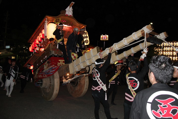 | 平成28年の秋祭りも無事終わりました。後宮では生まれて初めて自町から離れ他町、しかも神輿渡御へ参加すると言う今までにない祭りをさせて頂きました。今日の感想はやぐらも大切ですが波太神社の祭りと言うか、神事は神輿渡御なんだと改めて認識しました。そして今年は幼馴染みのMくんが若頭会会長と言う重職をされており、感慨無量な祭りでした。ともあれ事故や怪我もなく祭りを終えられて良かったです。 結局今日は神輿渡御を1,192枚、自町の後宮を600枚、合計1,792枚撮影させて頂きました。パレード・本宮・後宮合わせて合計4,698枚もの写真を撮影、この莫大な写真の中、当サイトを御覧の皆様方の思い出の写真が一枚でも埋もれていれば管理人冥利に尽きるかと思います。 ◎ 自町やぐら曳行の記録 指出森神社 → (村中1周) → ぶんすけ前 → スカイタウンロード入口(箱作東,箱作西と合流・青年團イベント「ザ・勝負」) → 箱作東の浜 → 下荘漁港 → 西踊り場(箱作東,箱作西と離散) → (国道26号線経由) → 武輪駐車場(餅投げ) → 菅原神社(箱作東,箱作西と合流) → 箱作駅ロータリー(箱作東,箱作西とまっせー・離散) → (国道26号線経由) → (村中1周) → 指出森神社 |