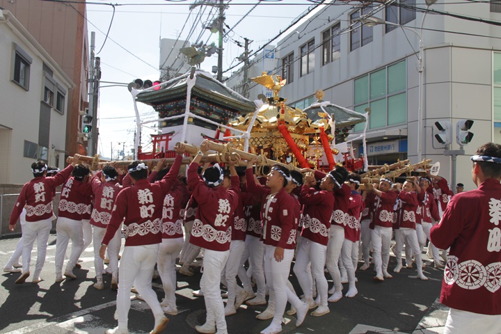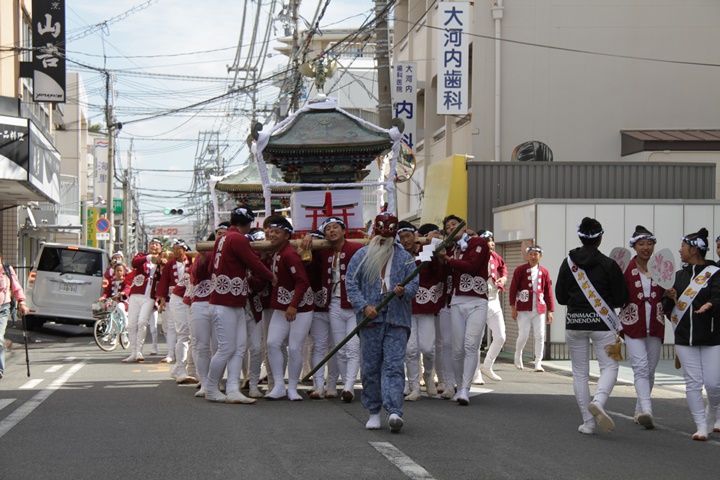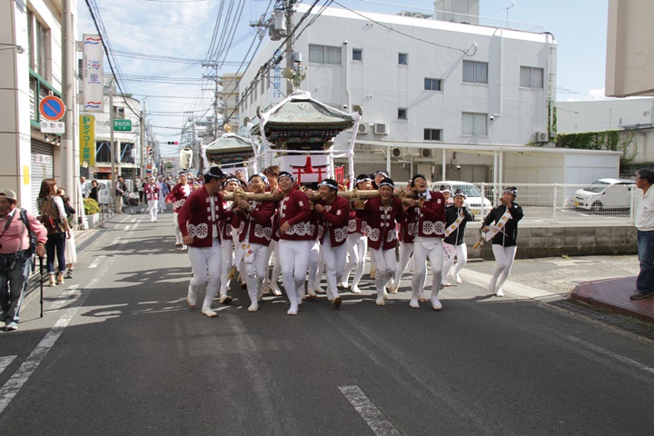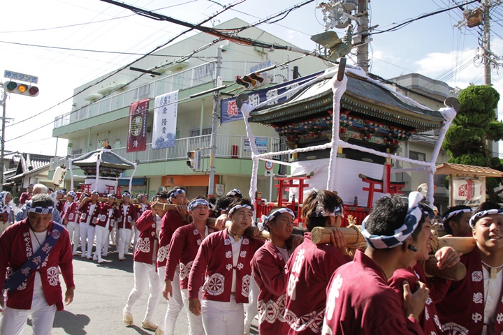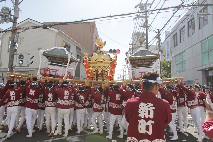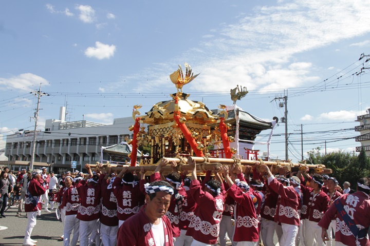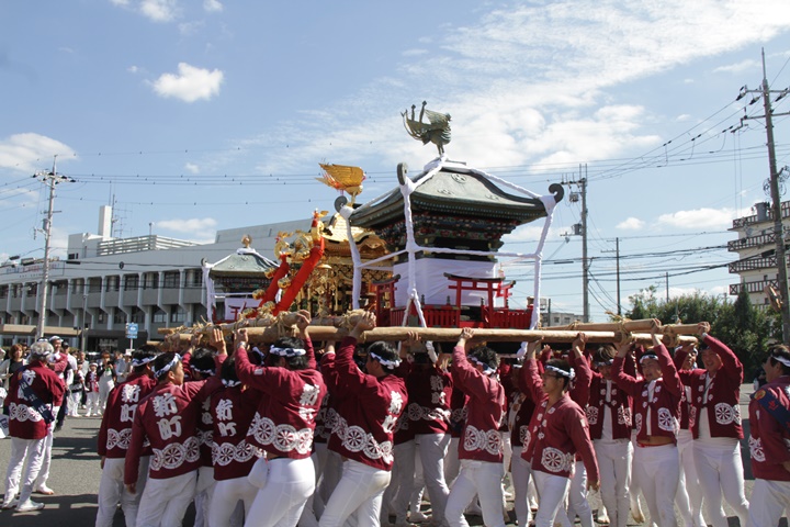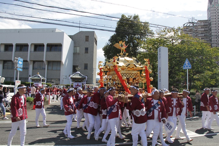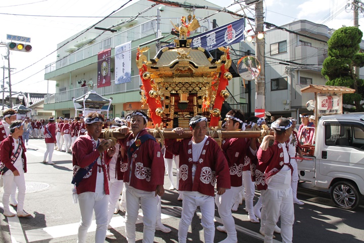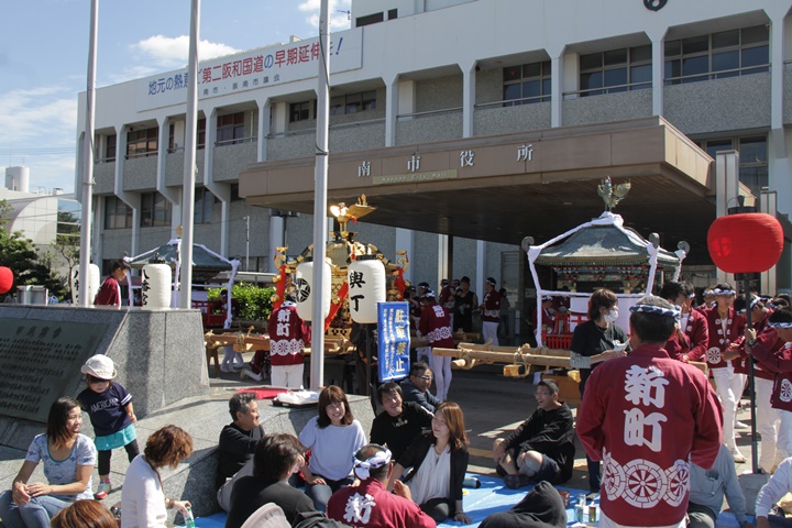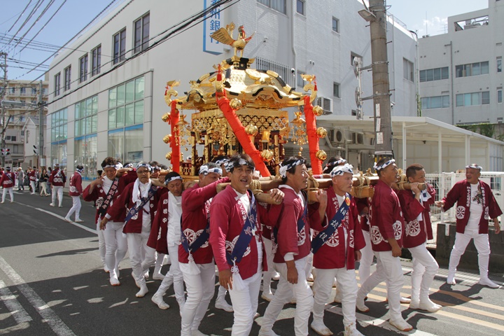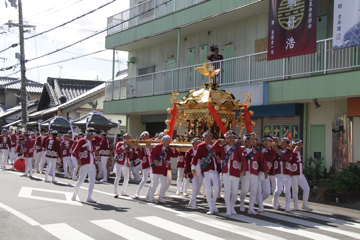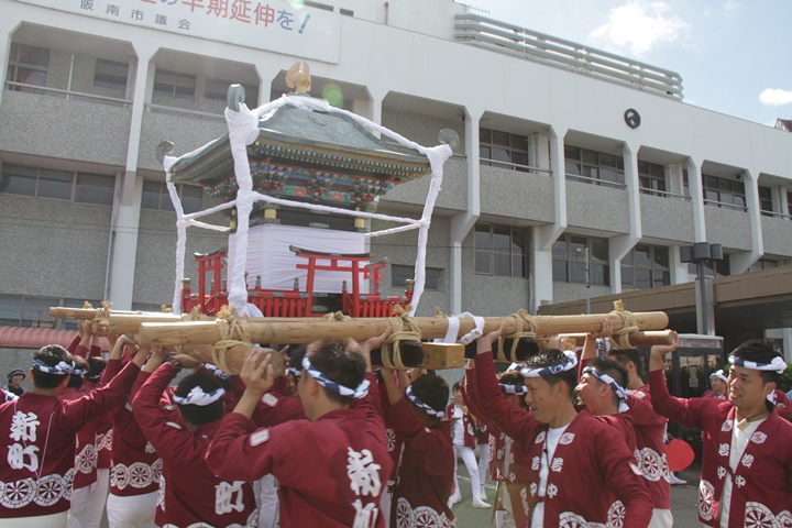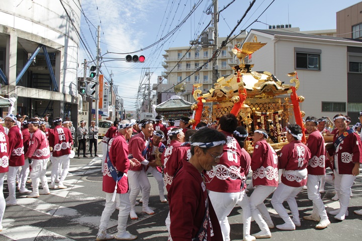 ![]() 鳳神輿は阪南市役所へ向けて進みます。 |