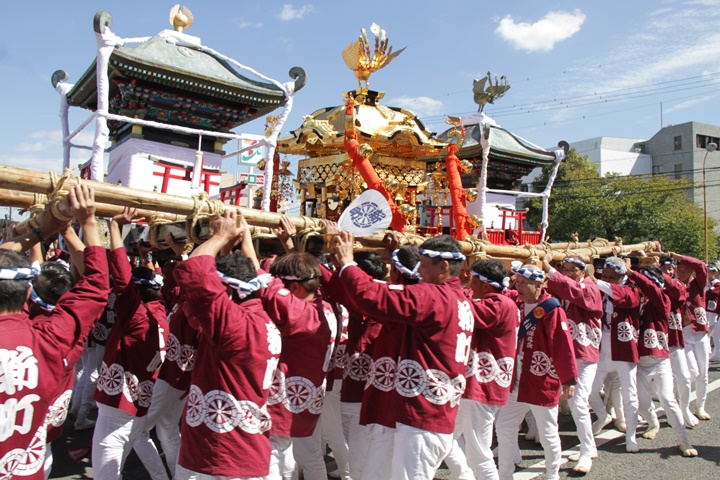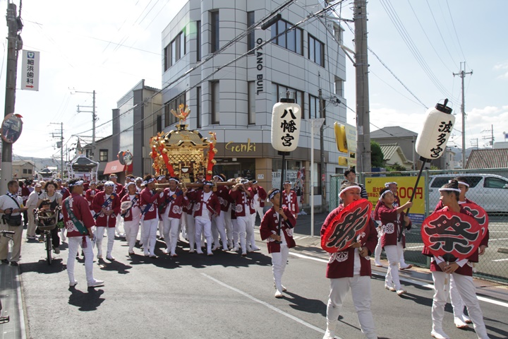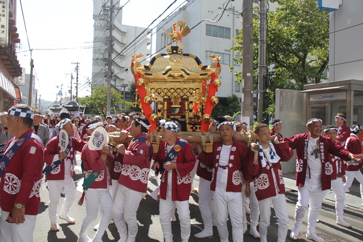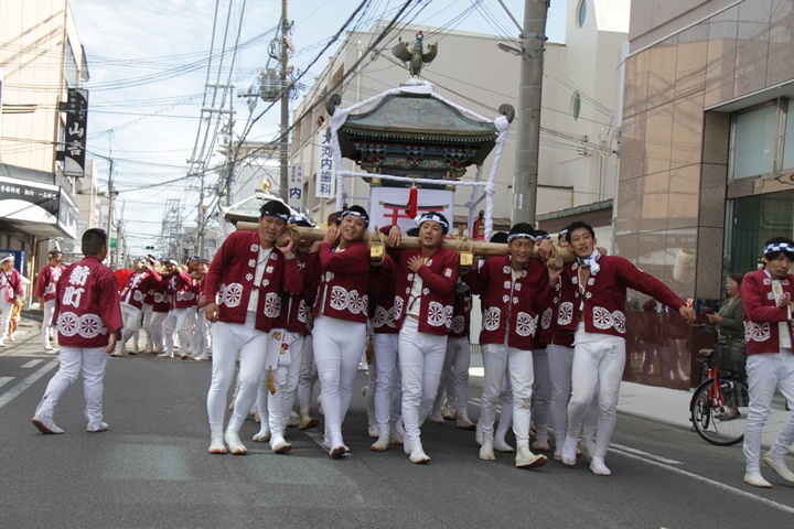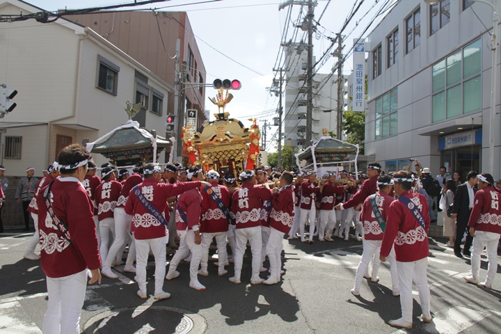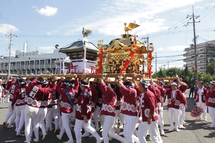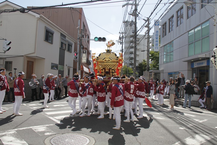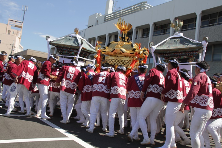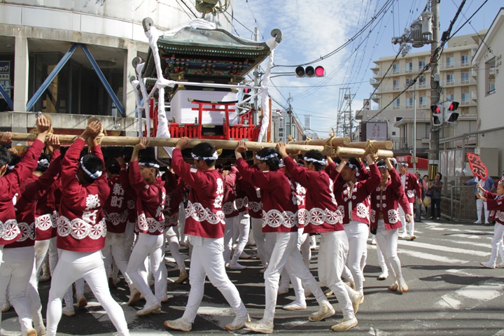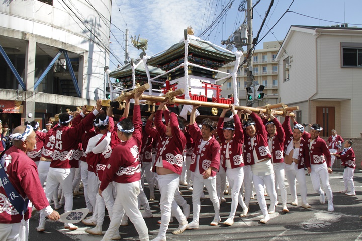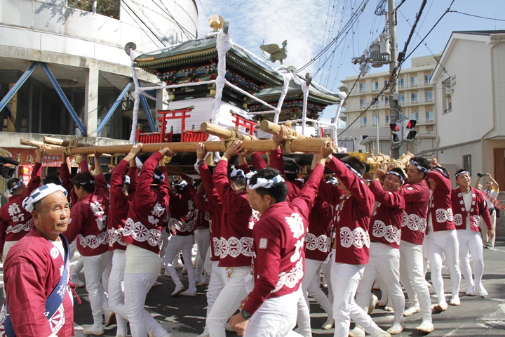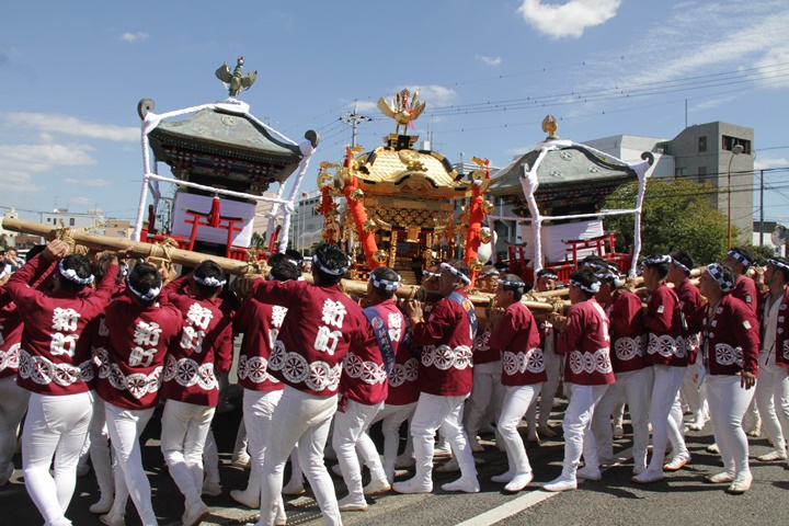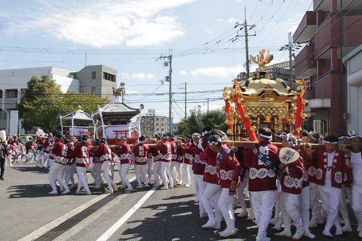 ![]() 鳳神輿は阪南市役所へ向けて進みます。 |