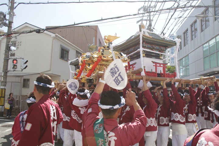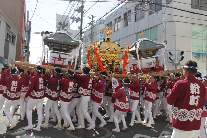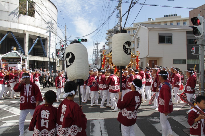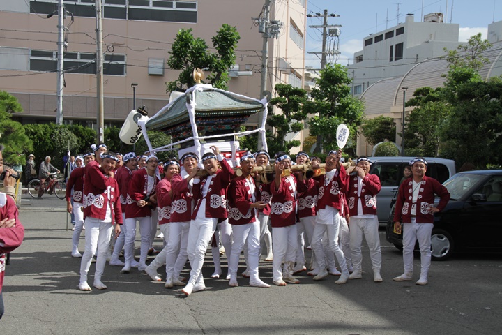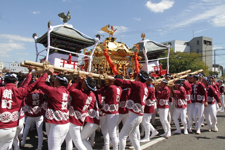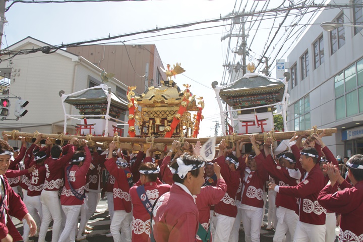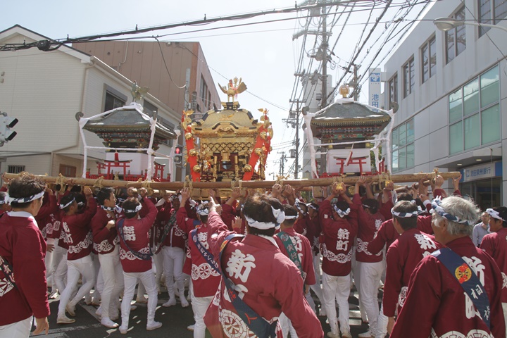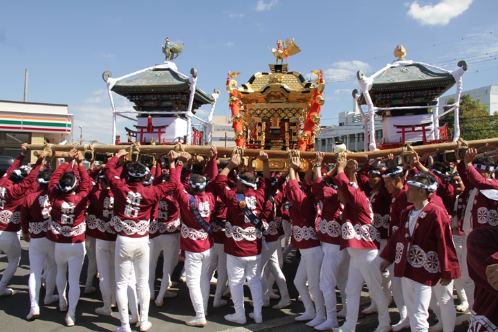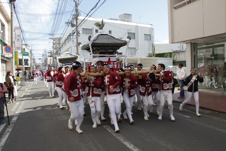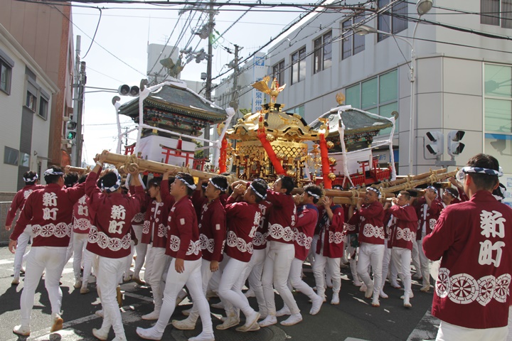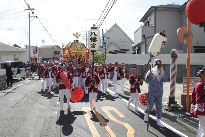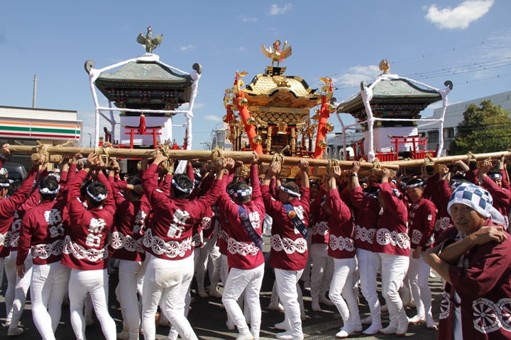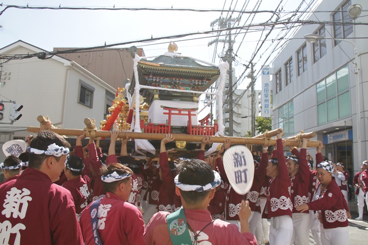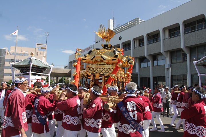 ![]() 鳳神輿は阪南市役所へ向けて進みます。 |