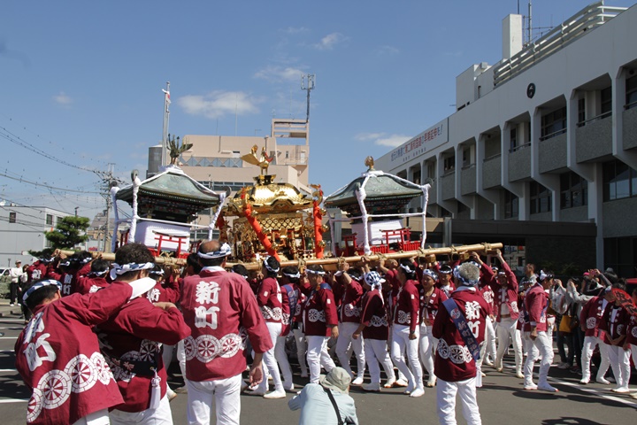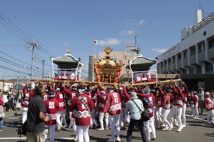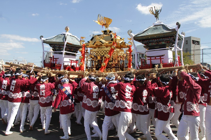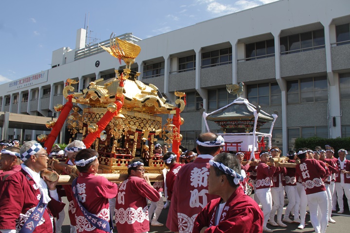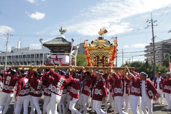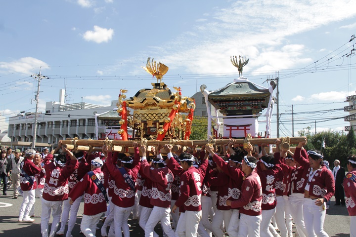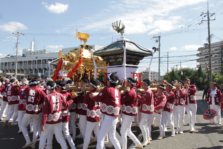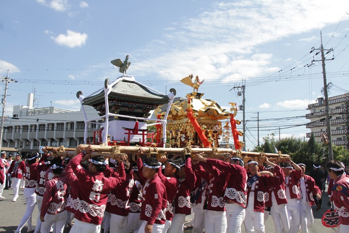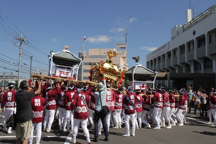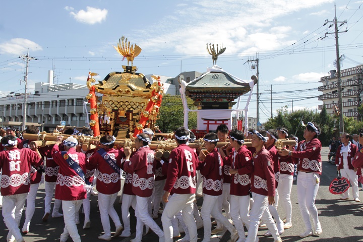 ![]() 鳥神輿・玉神輿は再び合わせます。 |