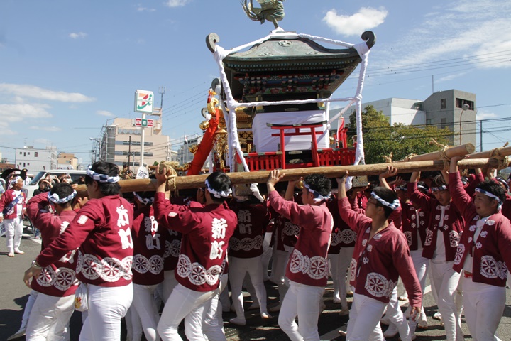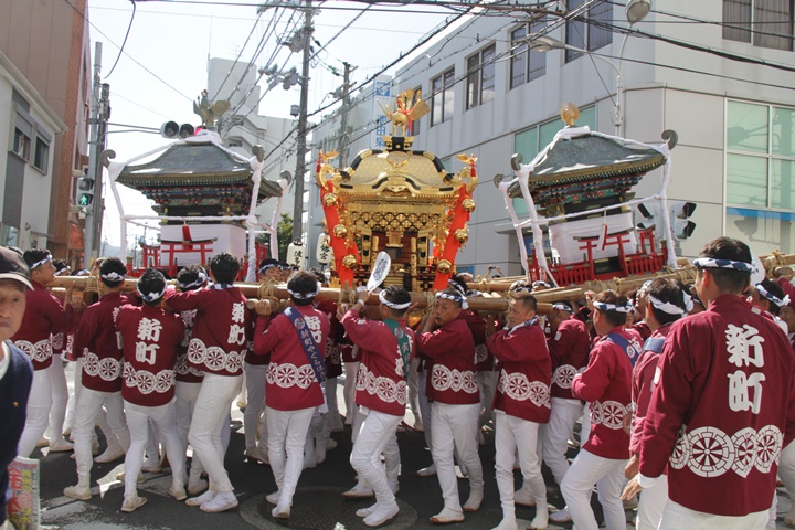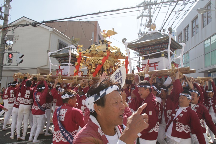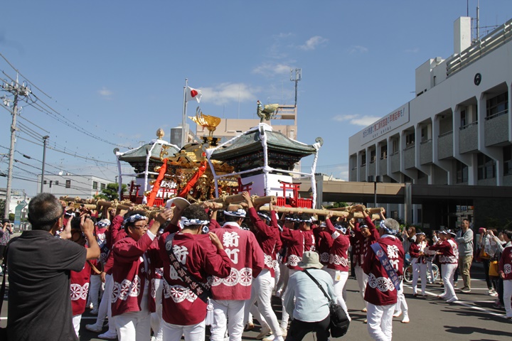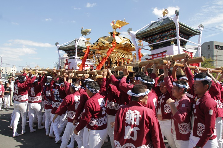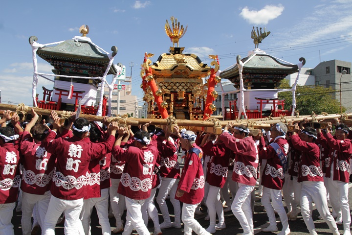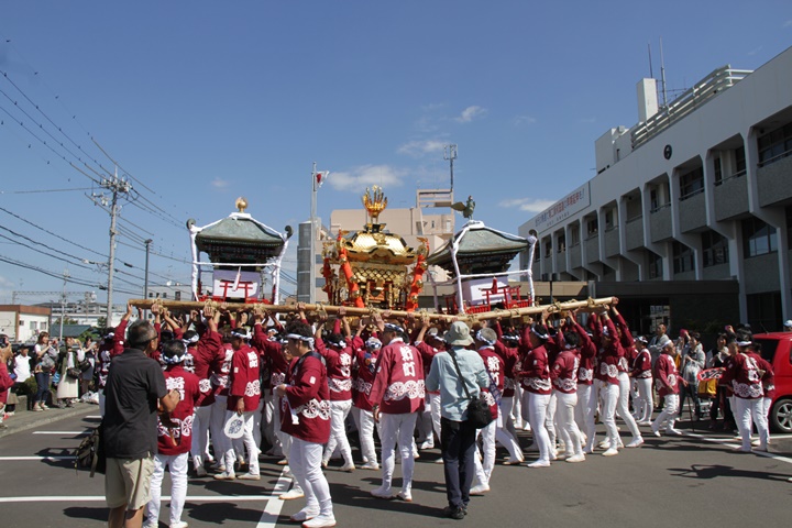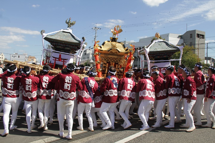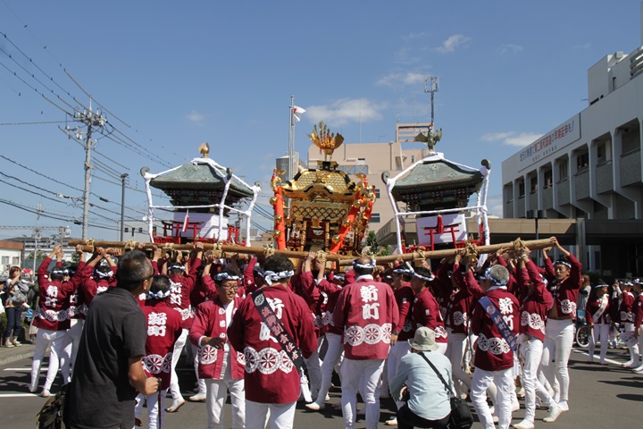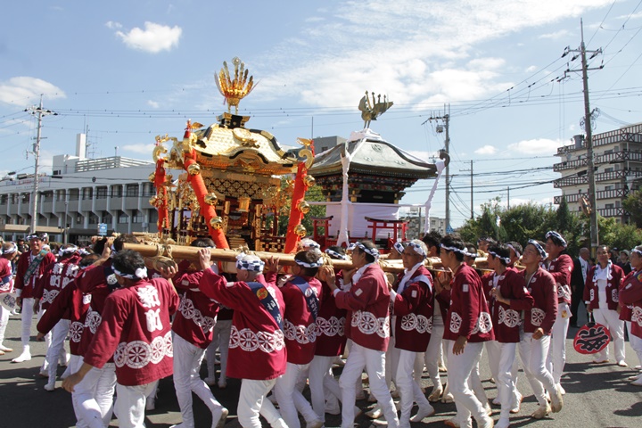 ![]() 鳥神輿・玉神輿は再び合わせます。 |