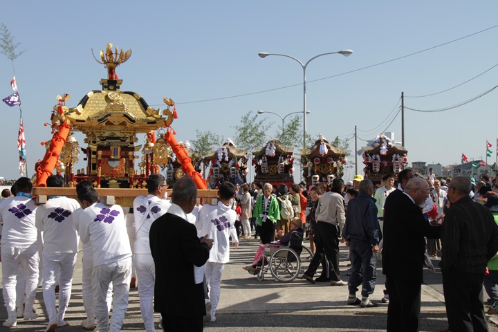 ![]() 淡輪連中を先頭に曳行再開です。 |
