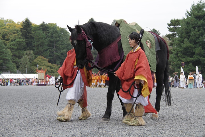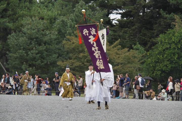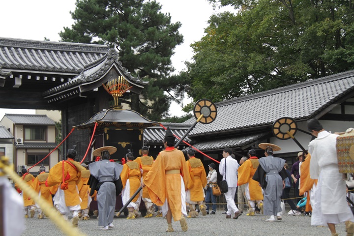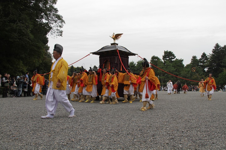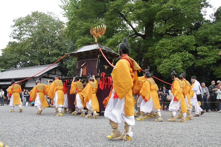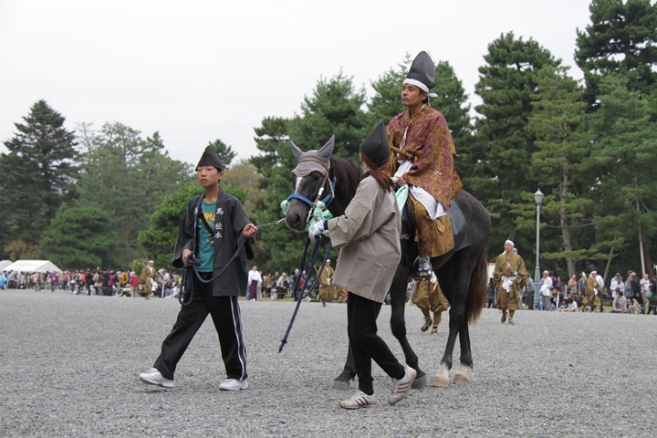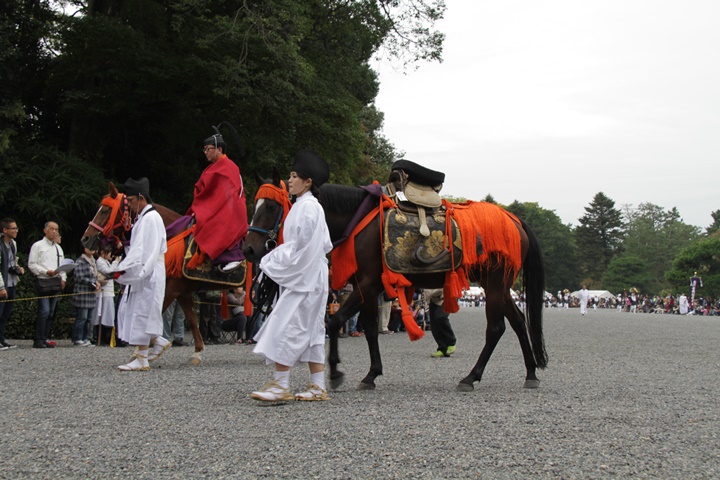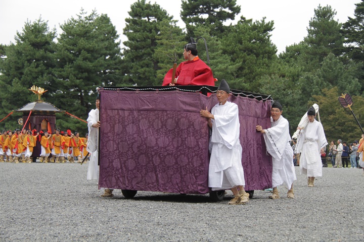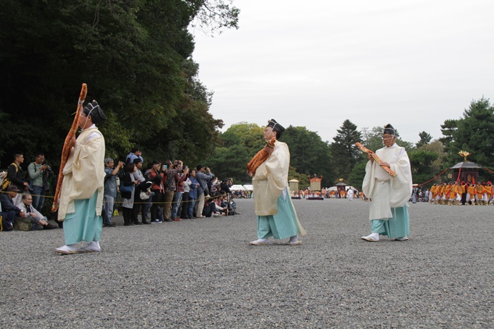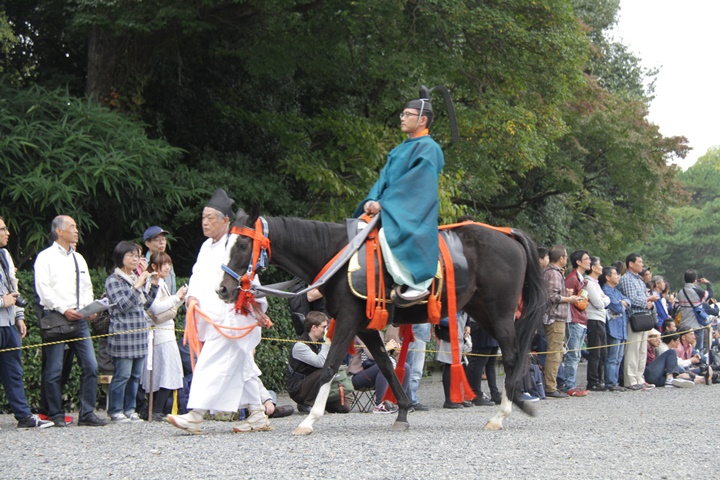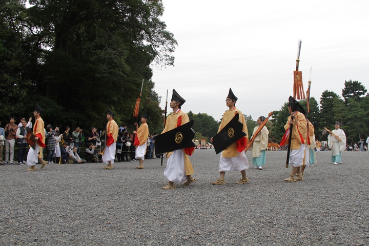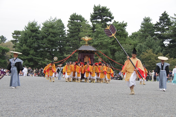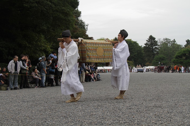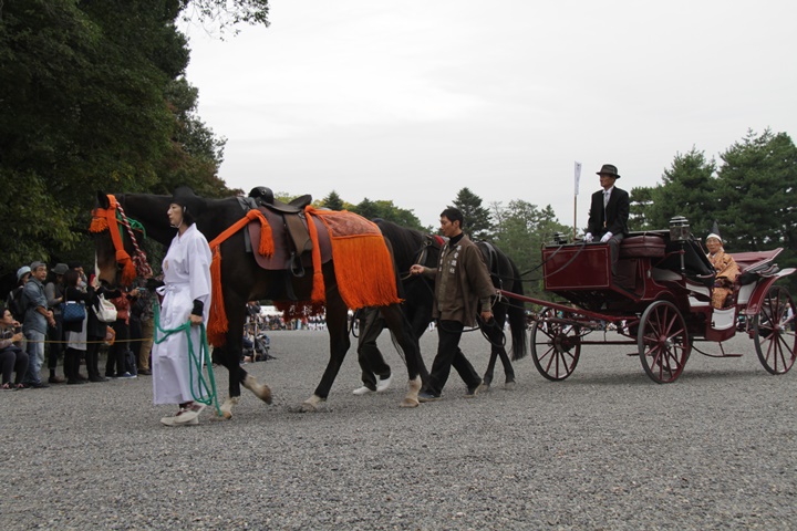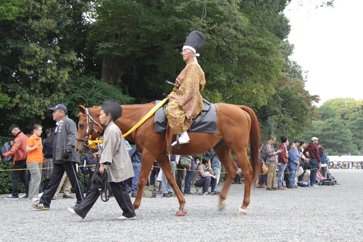 | 結局時代祭の列は2時間ほど連なり終わったのが14時過ぎでした。場所取りのために10時からの4時間、ずっと同じ場所で座っていた訳で少々疲れました。でも念願だった時代祭、やっと見れました。現地で時代祭のパンフレットを購入したのですが時代祭って平安神宮の例大祭だと初めて知りました。平安神宮の御祭神である孝明天皇、桓武天皇の御鳳輦も見れてとても良かったです。 |