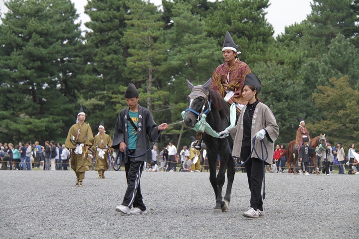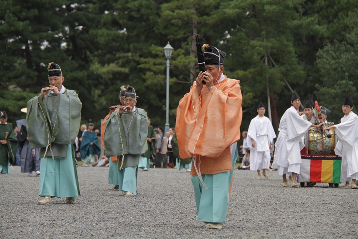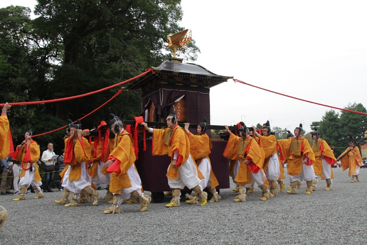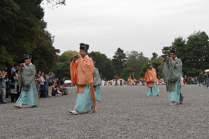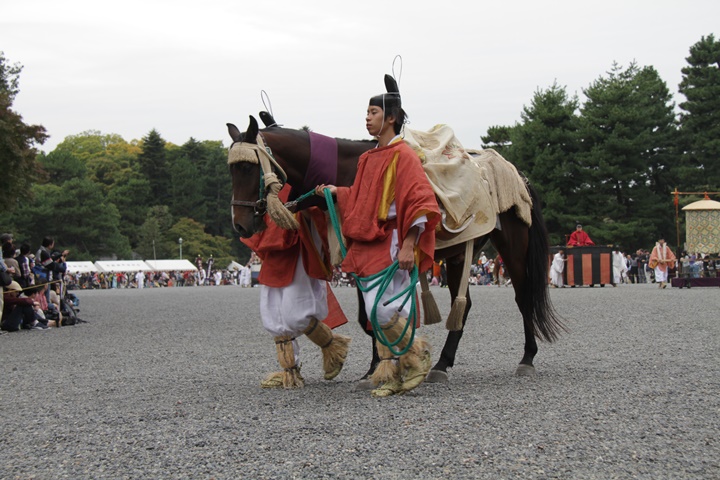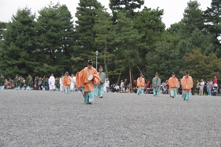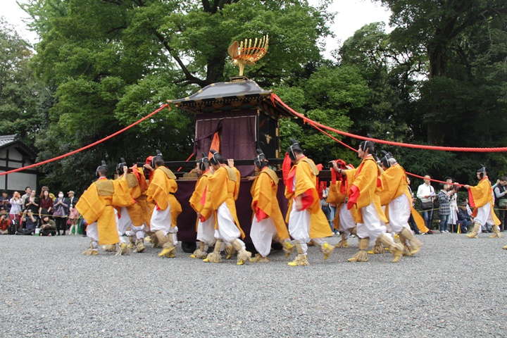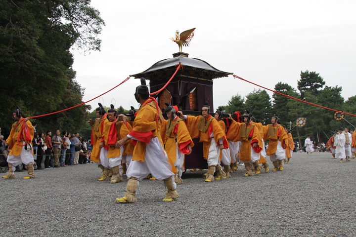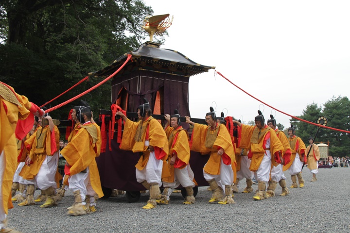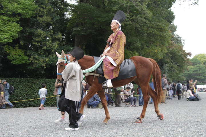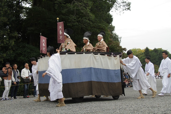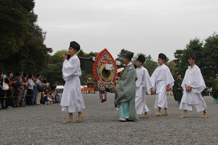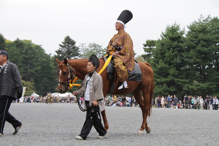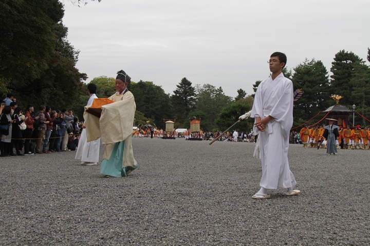 | 結局時代祭の列は2時間ほど連なり終わったのが14時過ぎでした。場所取りのために10時からの4時間、ずっと同じ場所で座っていた訳で少々疲れました。でも念願だった時代祭、やっと見れました。現地で時代祭のパンフレットを購入したのですが時代祭って平安神宮の例大祭だと初めて知りました。平安神宮の御祭神である孝明天皇、桓武天皇の御鳳輦も見れてとても良かったです。 |