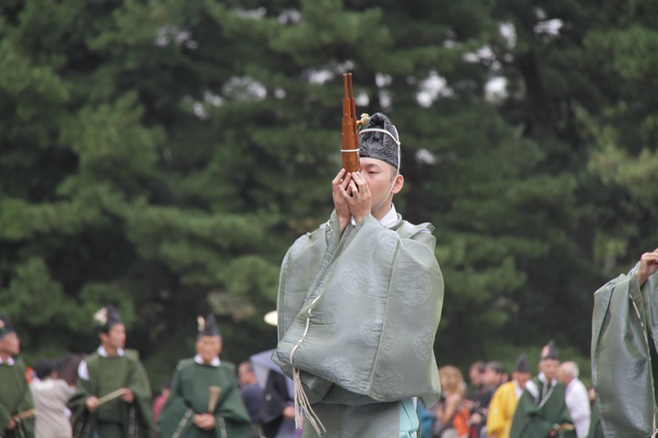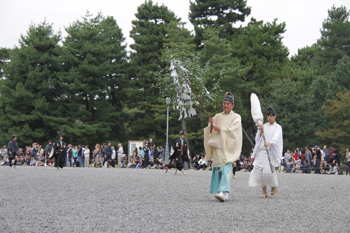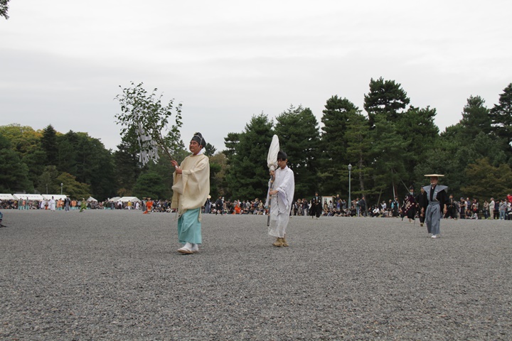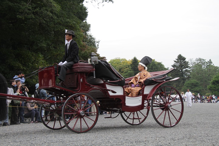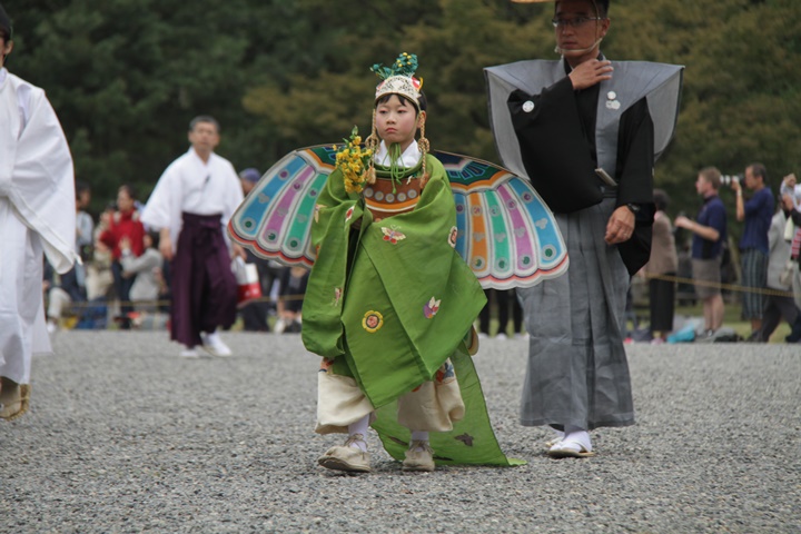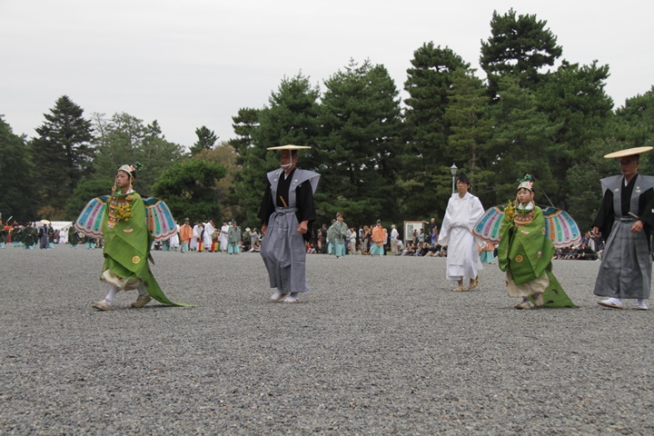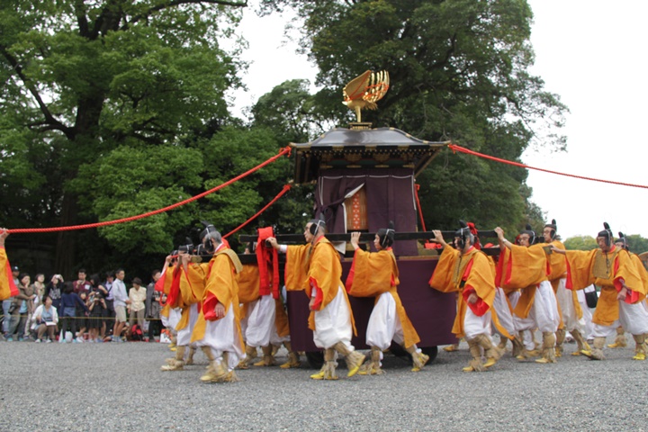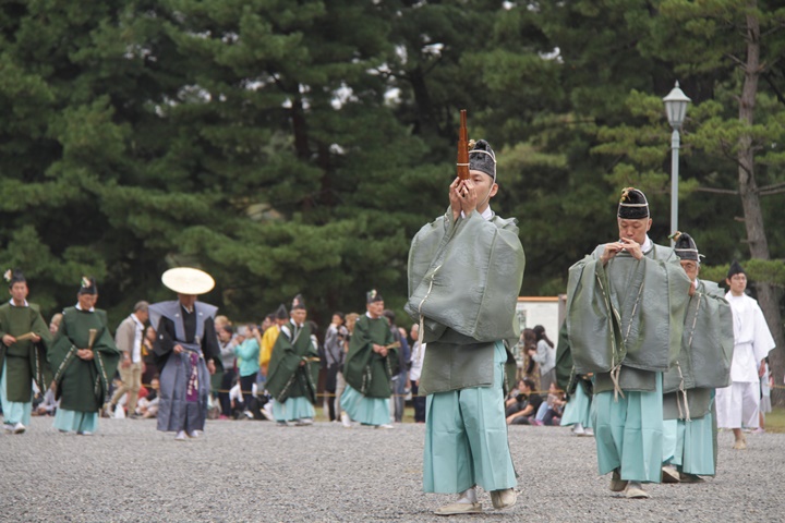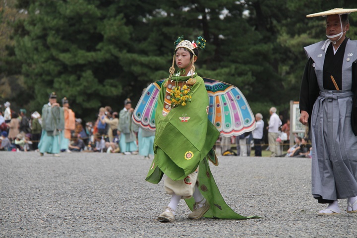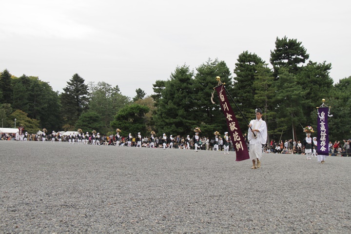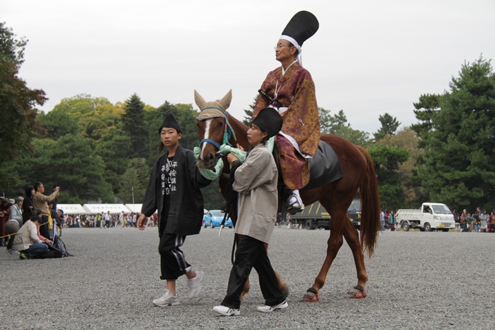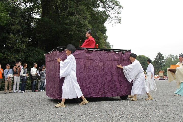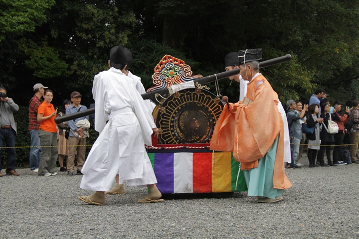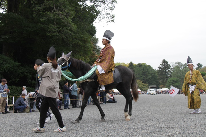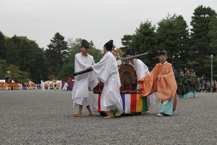 | 結局時代祭の列は2時間ほど連なり終わったのが14時過ぎでした。場所取りのために10時からの4時間、ずっと同じ場所で座っていた訳で少々疲れました。でも念願だった時代祭、やっと見れました。現地で時代祭のパンフレットを購入したのですが時代祭って平安神宮の例大祭だと初めて知りました。平安神宮の御祭神である孝明天皇、桓武天皇の御鳳輦も見れてとても良かったです。 |