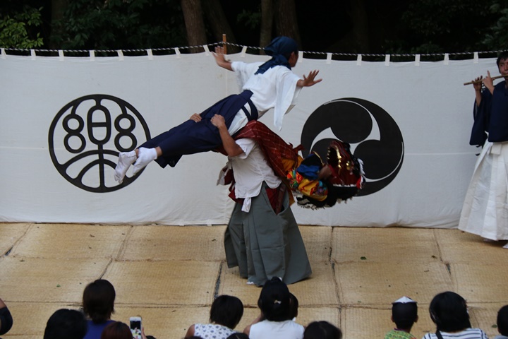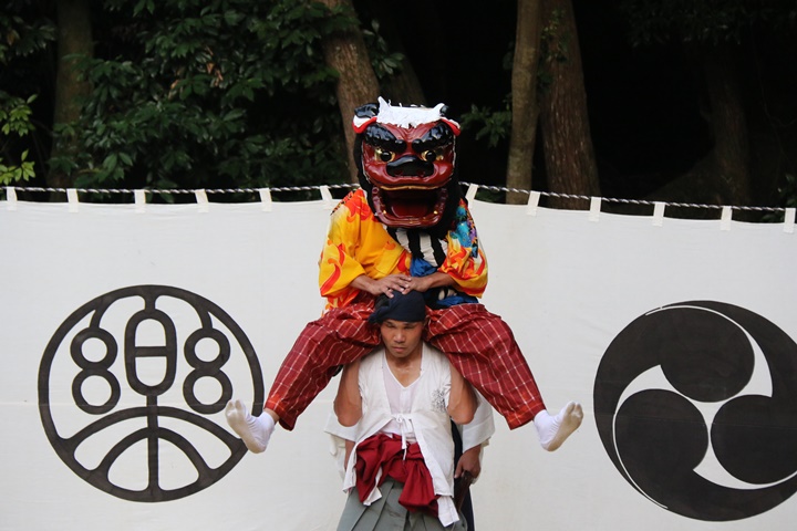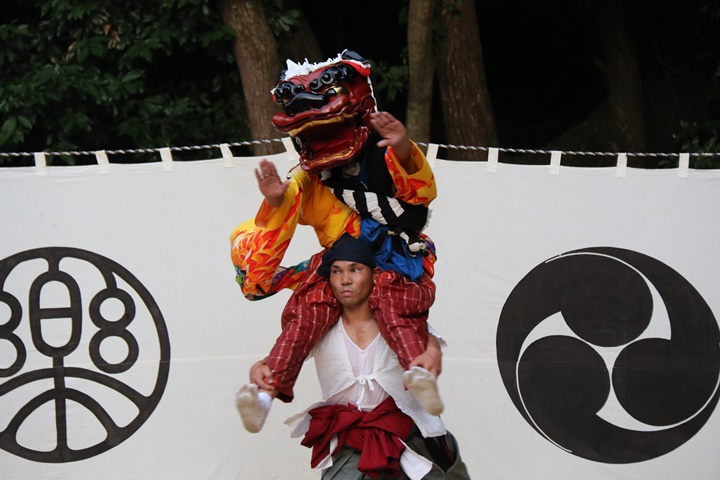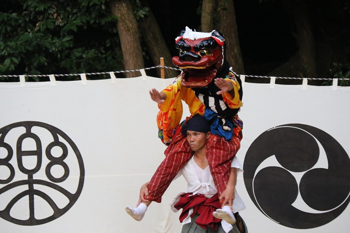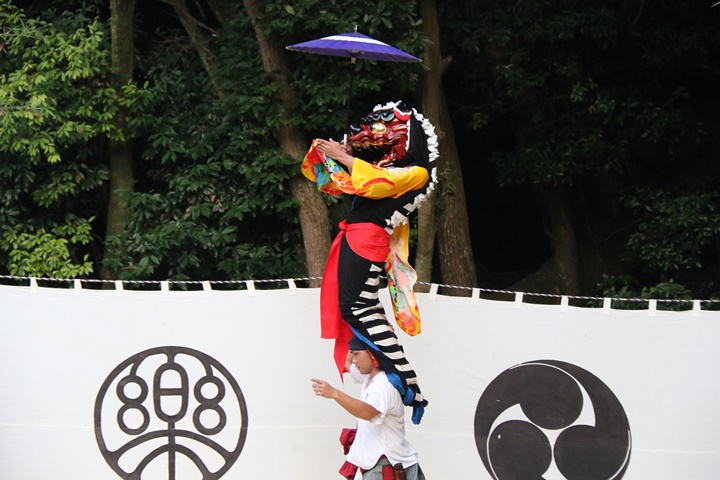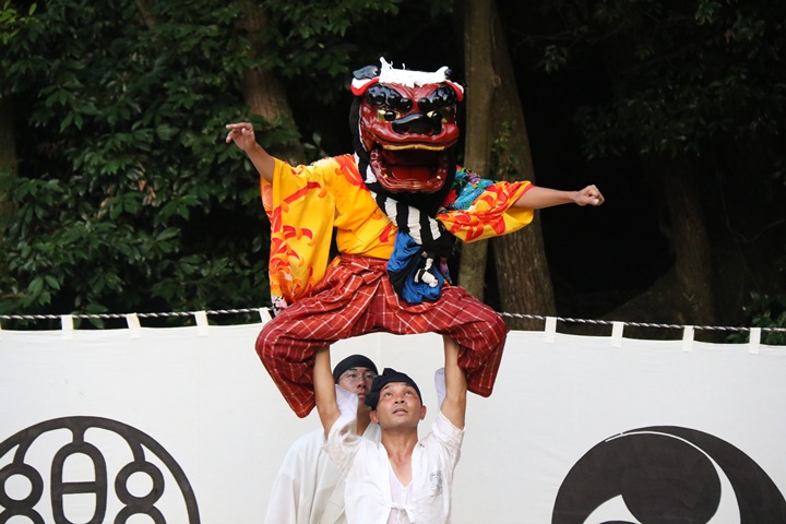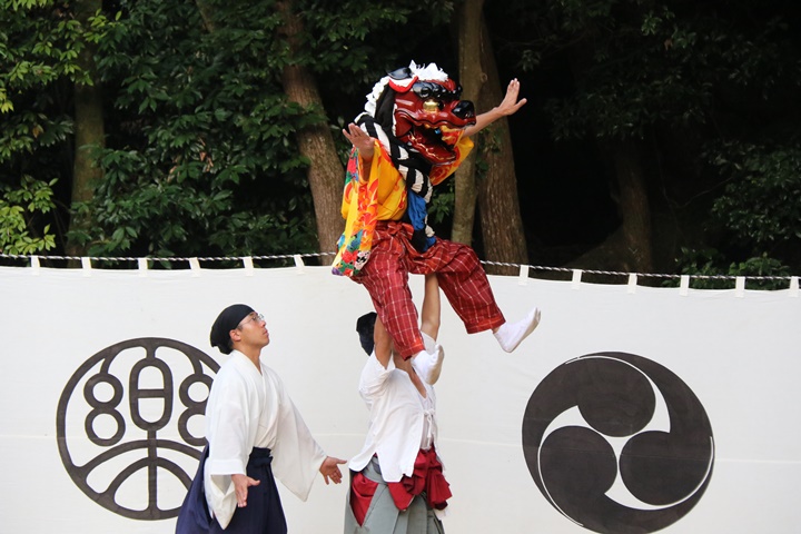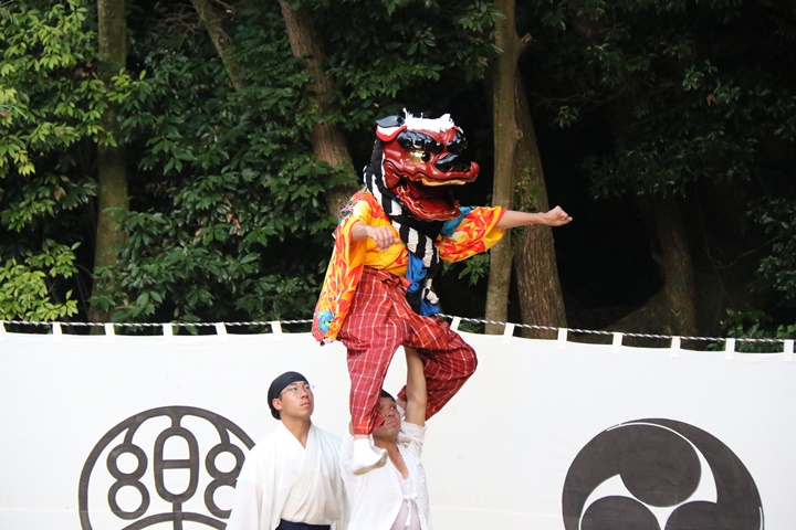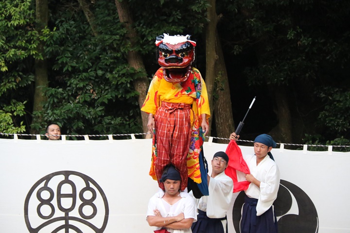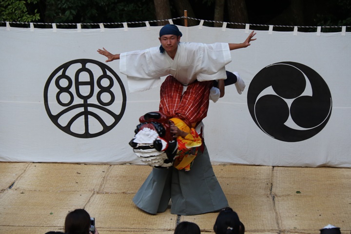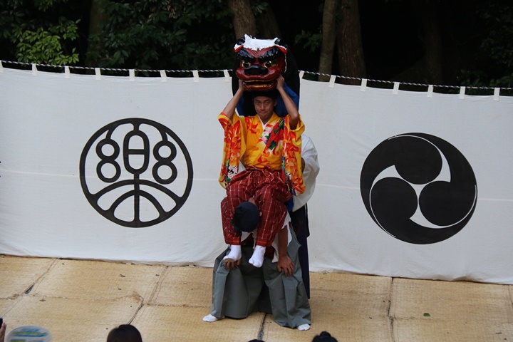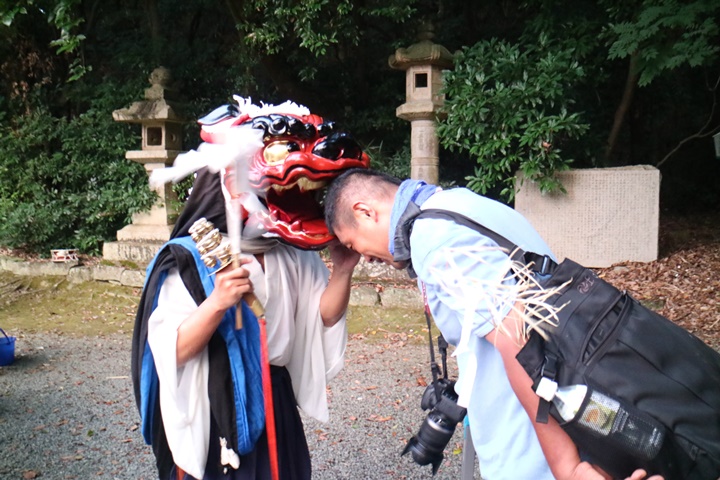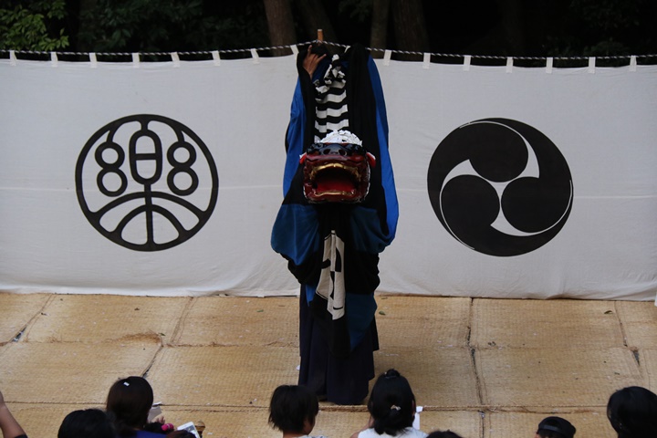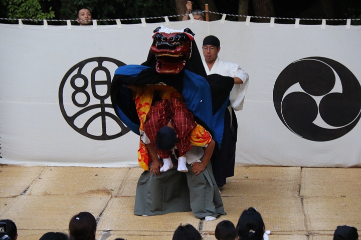 ![]() 恒例の獅子噛み。 |