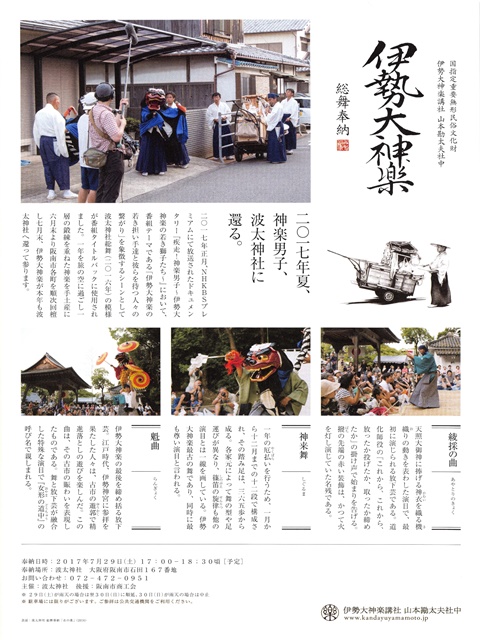 ![]() 今年も伊勢大神楽、楽しませて頂きました。ただ…、暑かった。 そして今日のチラシ。 |