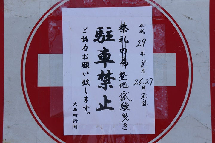 ![]() 川口建設と板谷工務店によって新調された駒、エエ感じでした。 特に板谷工務店の「楠+欅+楠」駒には驚愕しました。 でも試験曳きでも不具合なくエエ感じだったと思います。 いよいよ祭りシーズンインです、お互いエエ祭りを! 最後に今日はたくさんのビール、御馳走様でした。 毎度恒例、駐車禁止の貼り紙。 |