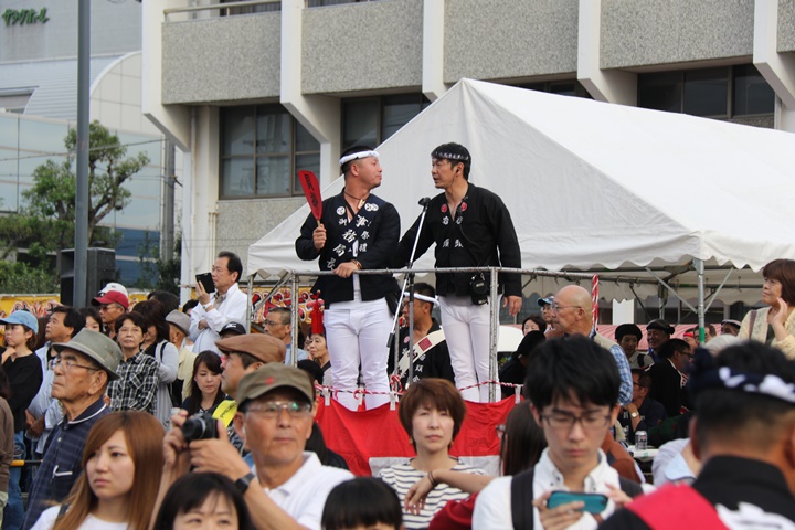 間もなくパレードコースへ出発、事務局長が見守ります。 |