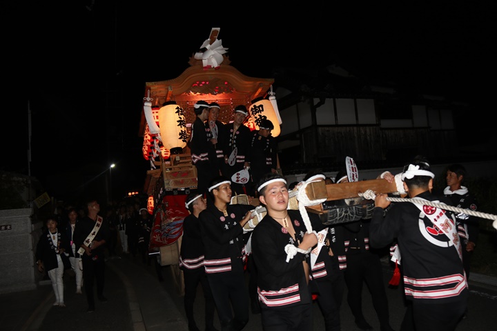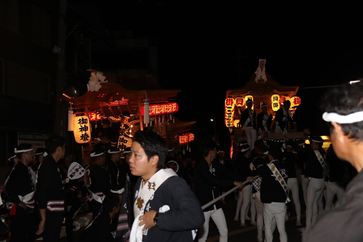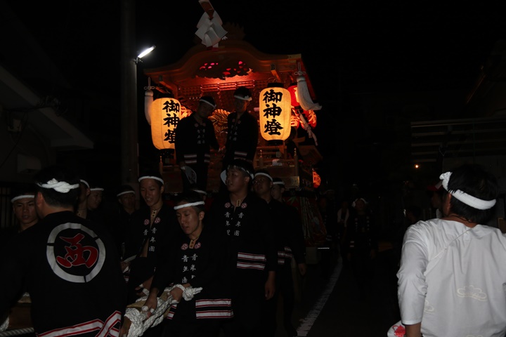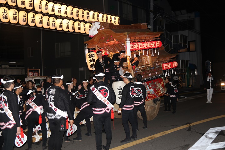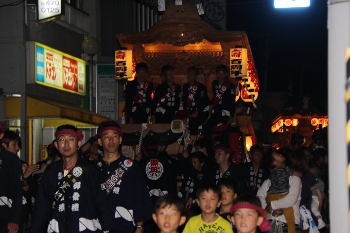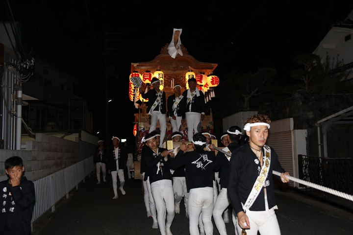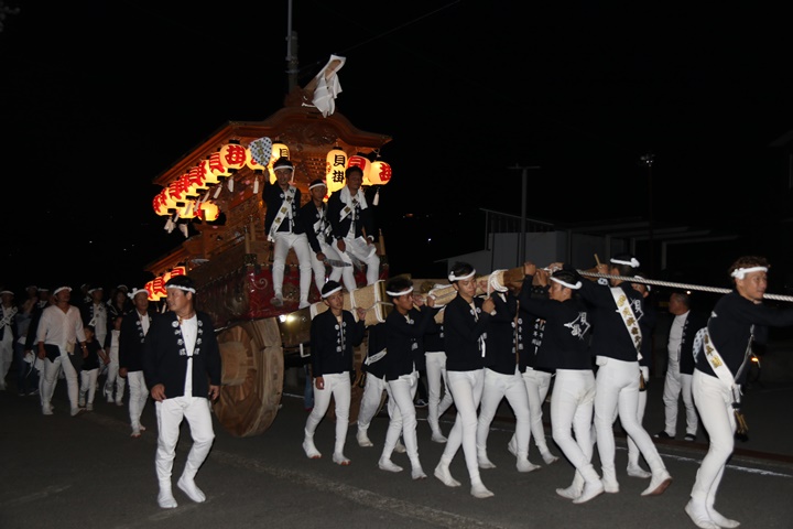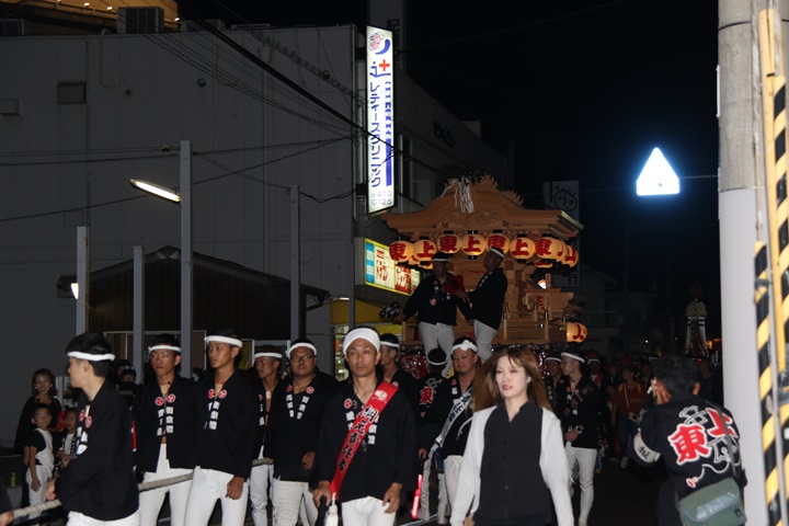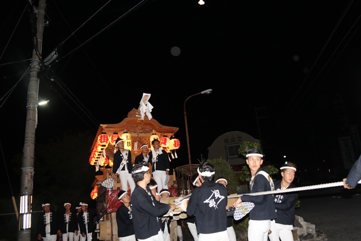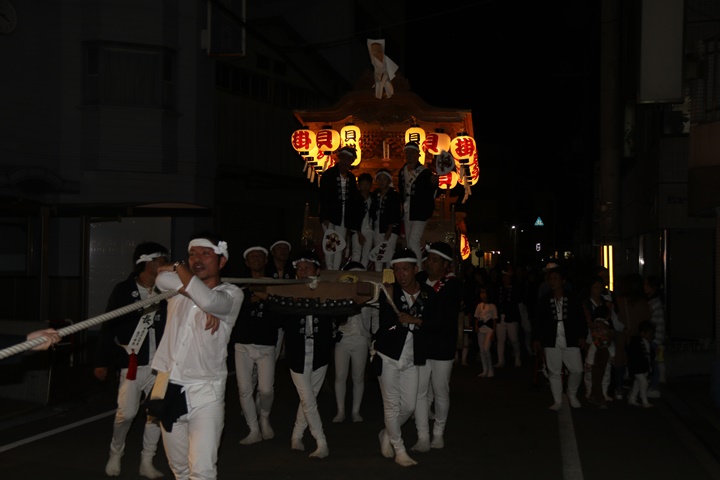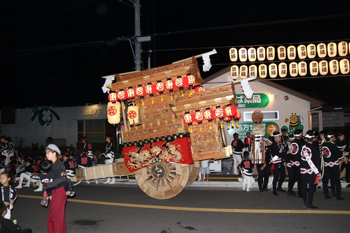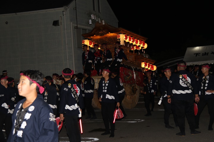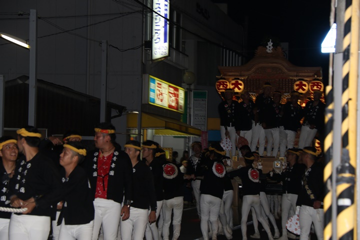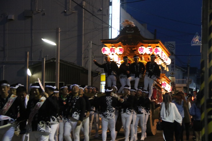 | ◎ 自町やぐら曳行の記録 指出森神社 → (村中1周) → 指出森神社 → 指出森神社(箱作東,箱作西と合流) → 武輪駐車場(順番入替え) → 鳥取ノ荘駅上(波有手組,榮組,新町と合流) → 阪南市役所(パレード開会式) → マンダイ前コース → マンダイ前コース → 田中外科前コース → 田中外科前コース → マンダイ前コース → 丸正ミート付近(箱作東,箱作西と合流) → (海手経由) → 武輪撚糸前(箱作東,箱作西と離散) → 指出森神社 |
