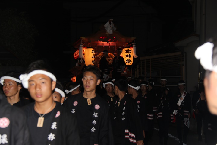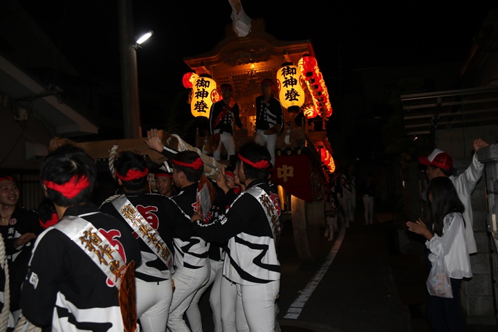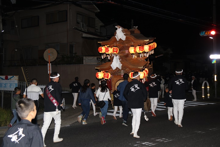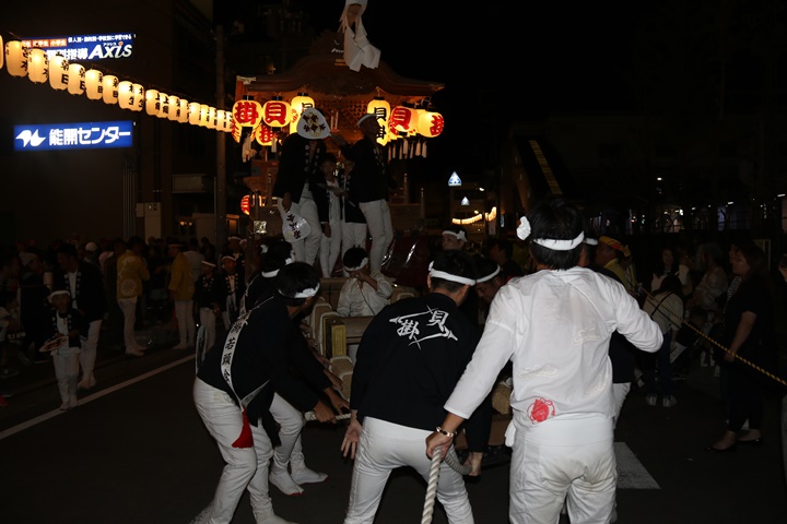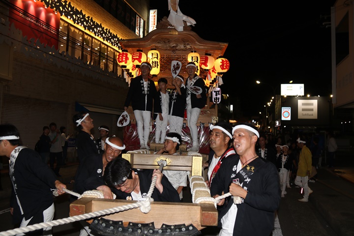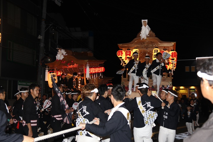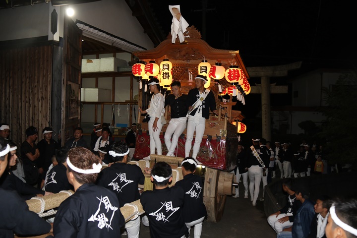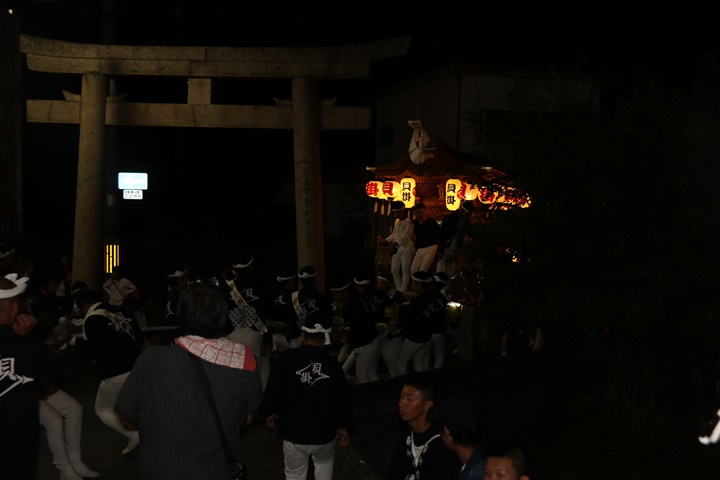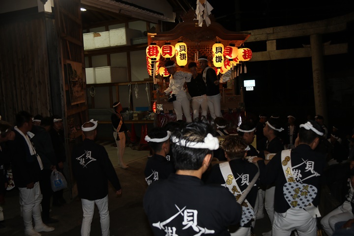 ![]() 泉南警察署前へ先まわり、貝掛の前には波有手組のやぐら。 |