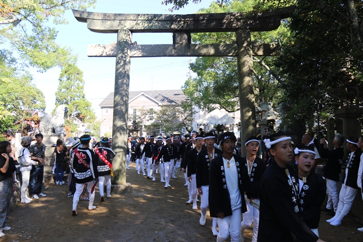 ![]() 私は鳥居へ先まわり、実行委員長さんが先導します。 |