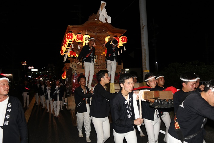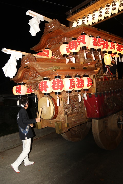 ![]() 今日は秋晴れの中、無事に宮入りもできエエ本宮を過ごしました。 ビールもたらふく飲ませて頂きました。私は納庫後すぐに帰宅、 そして今日撮影したデータをパソコンに保存、 そしてカメラを充電し23時過ぎに床に着きました。 ともあれ祭りも残り明日一日、明日も楽しもうと思います。 |