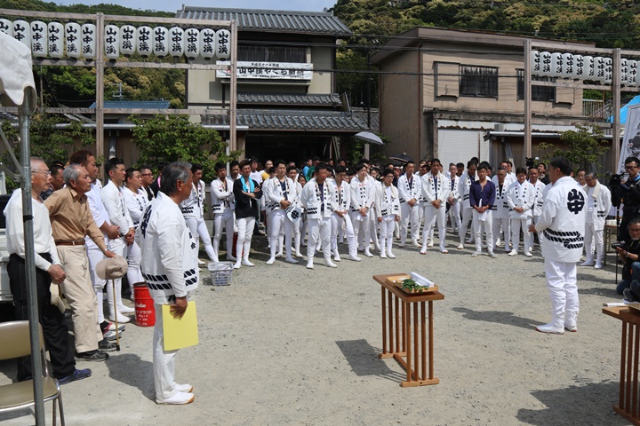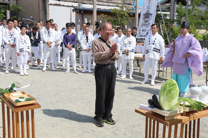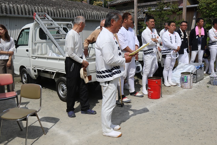 ![]() 昇魂式を前に役員の挨拶。 |
