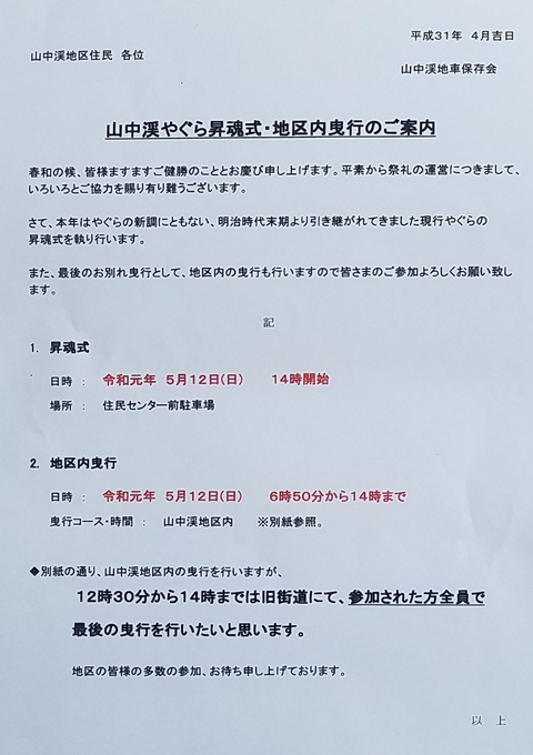 ![]() 百年以上愛された銘やぐらがまた一台なくなり寂しく思います。 一方で今夏の新調やぐらも楽しみなのは正直な感想。 ともあれ今日は山中渓関係者様方、色々御世話になりありがとうございました。 最後に今日の御祝い品。 |