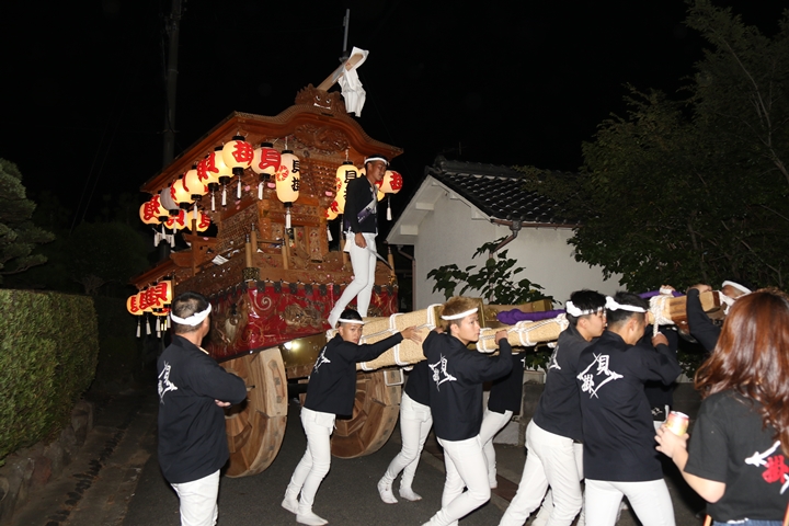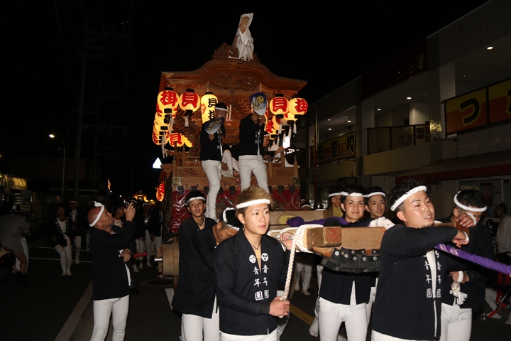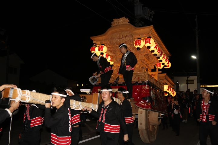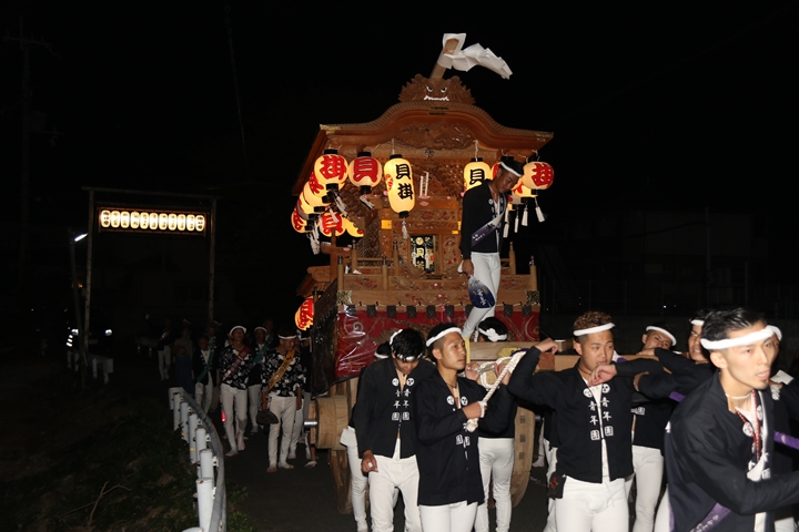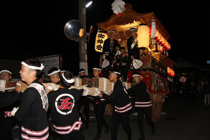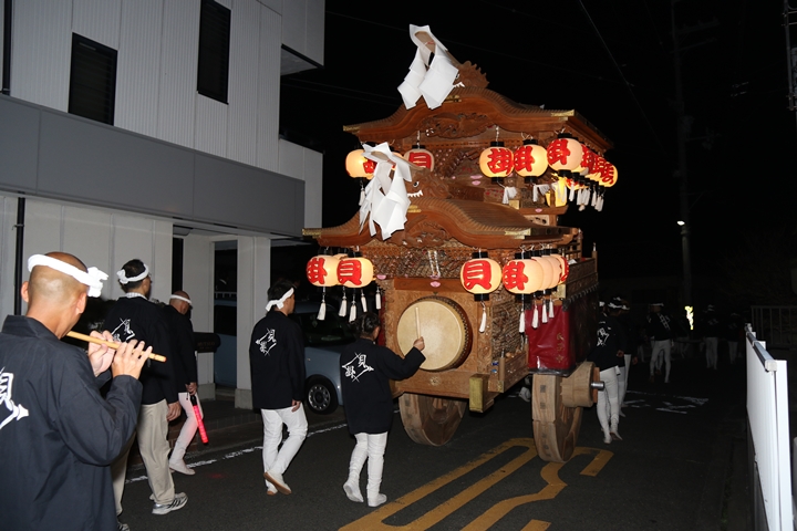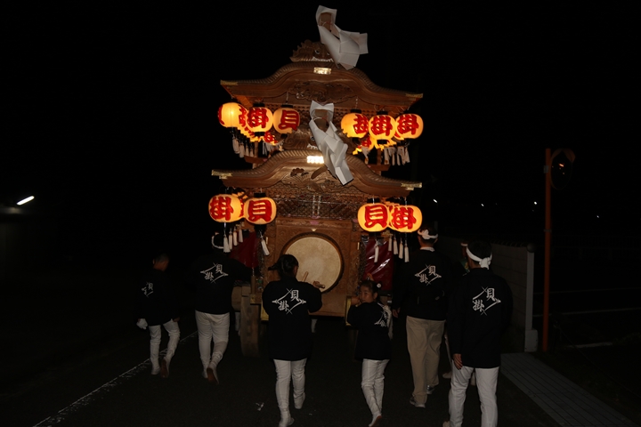 | ◎ 自町やぐら曳行の記録 指出森神社 → (村中2周) → 指出森神社 → 指出森神社(箱作東,箱作西と合流) → 武輪駐車場(順番入替え) → 鳥取ノ荘駅上(榮組,波有手組,新町と合流) → 阪南市役所(パレード開会式) → 田中外科前コース → マンダイ前コース → 田中外科前コース → マンダイ前コース → 田中外科前コース → マンダイ前コース → 阪南消防署付近(箱作東,箱作西と合流) → (海手経由) → 武輪撚糸前(箱作東,箱作西と離散) → 指出森神社 |