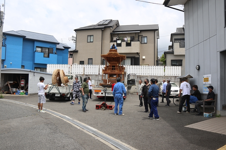 ![]() そして私たちは伊八さんの車で淡輪連中へ向かいました。 既にやぐらは到着していました。 |