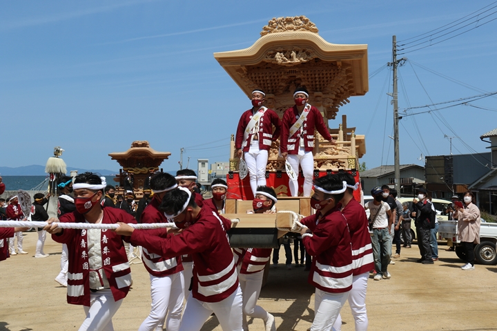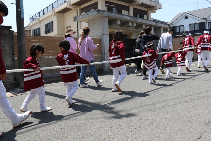 ![]() 太鼓には他町の子供がいっぱい、何しろ2年半ぶりのやぐらですから。 |