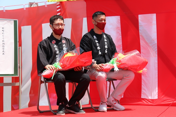 ![]() そして泉谷工務店、木彫前田工房へ花束贈呈。 |