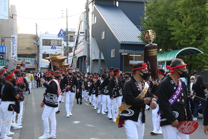 | 3年ぶりのパレード、とても満喫しました。自称「地車写真家」として全19町のやぐらを撮影できてホッとしています。そして1週間後の祭禮に向けて体調を整えて行こうと思います。 |