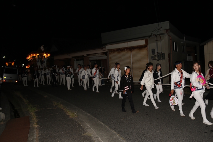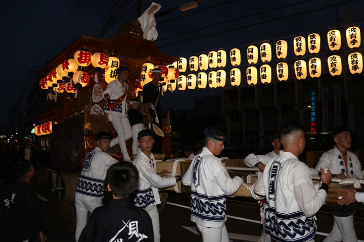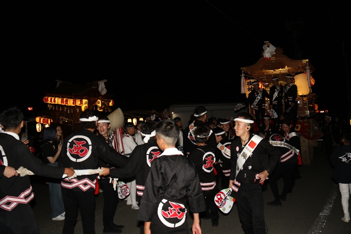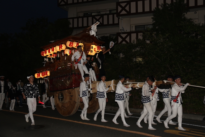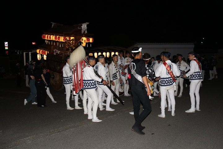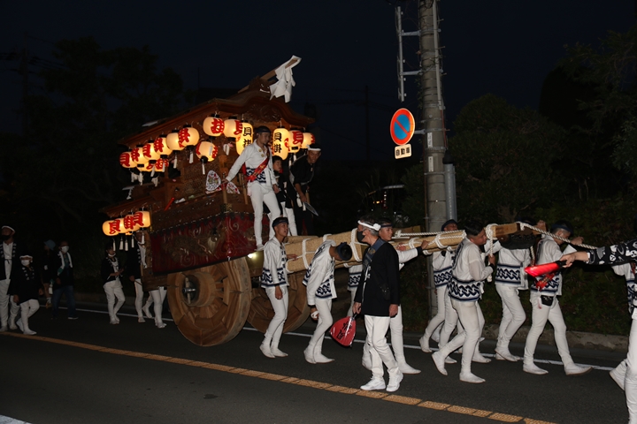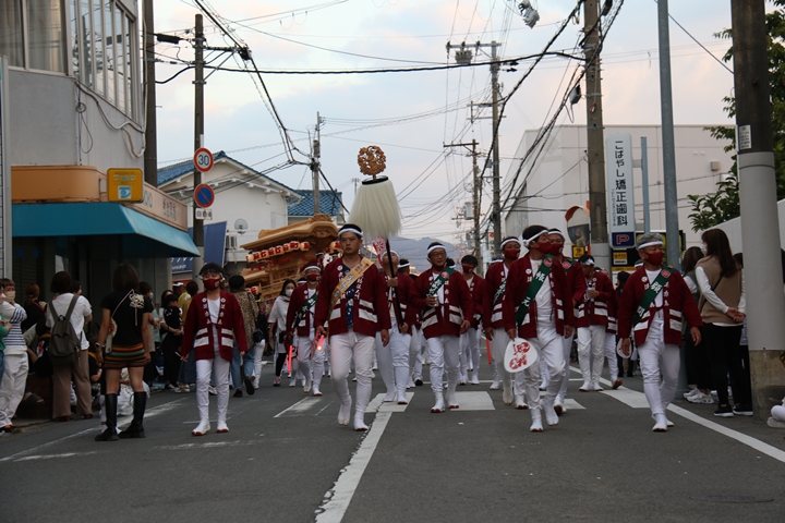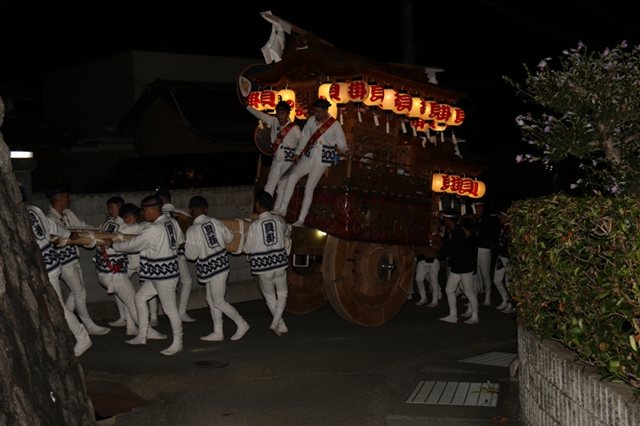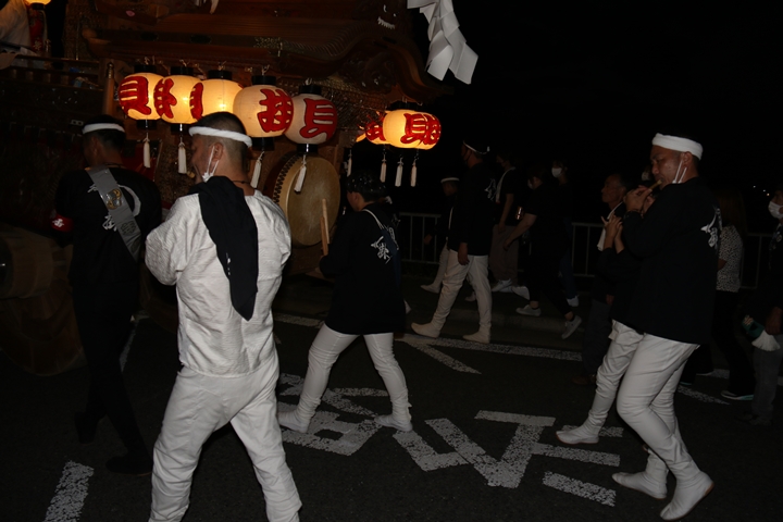 ◎ 自町やぐら曳行の記録 指出森神社 → (村中1周) → 指出森神社(箱作東,箱作西と合流) → 武輪駐車場(順番入替え) → 鳥取ノ荘駅上(波有手組と合流) → お好み焼き竹前(榮組,新町と合流) → 阪南市役所前(パレード入場待機) → 田中外科前コース → マンダイ前コース → マンダイ前コース → マンダイ前コース → 田中外科前コース → 阪南消防署付近(箱作東,箱作西と合流) → 武輪撚糸前(箱作東,箱作西と離散) → (村中2周) → 指出森神社 |