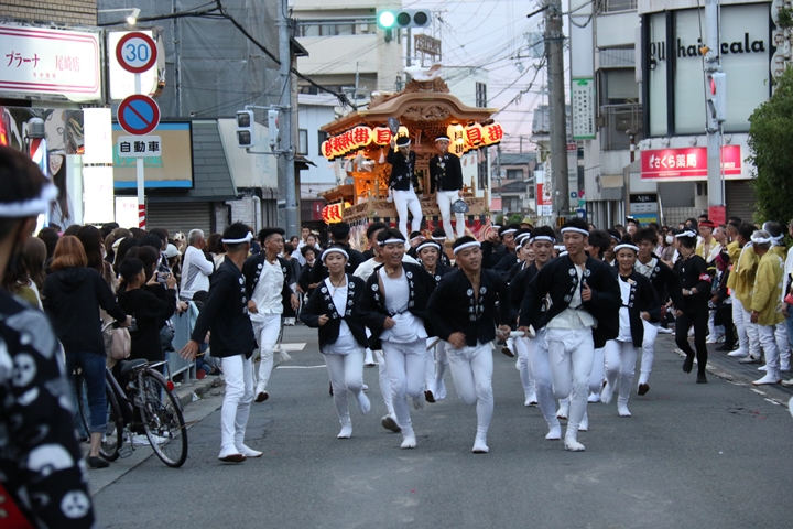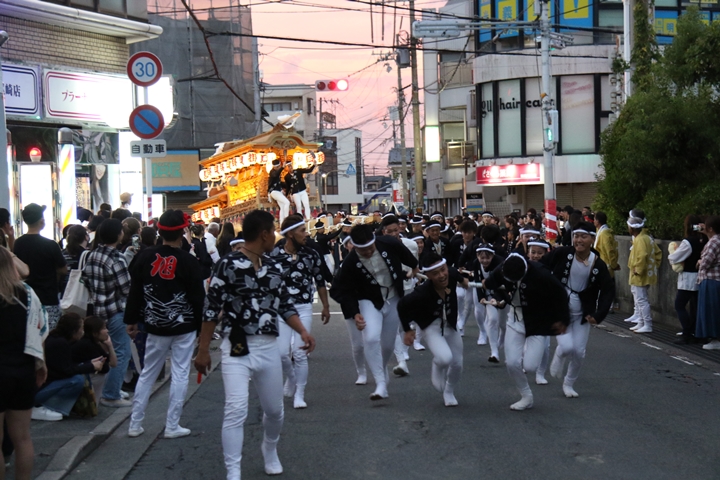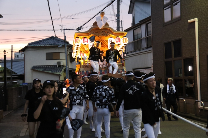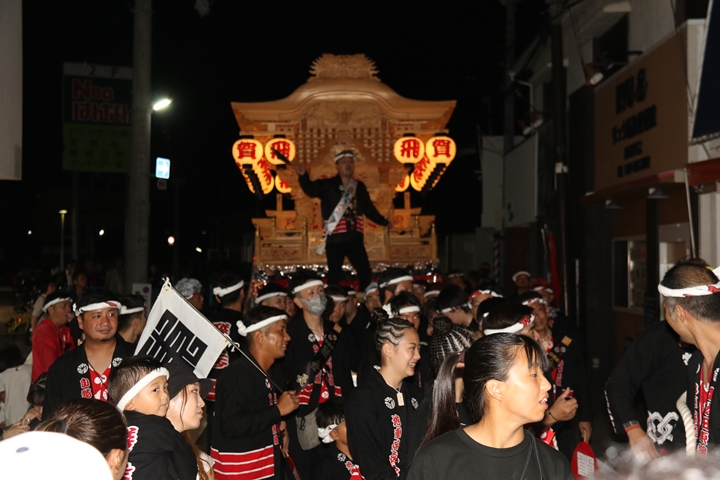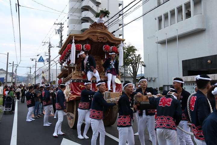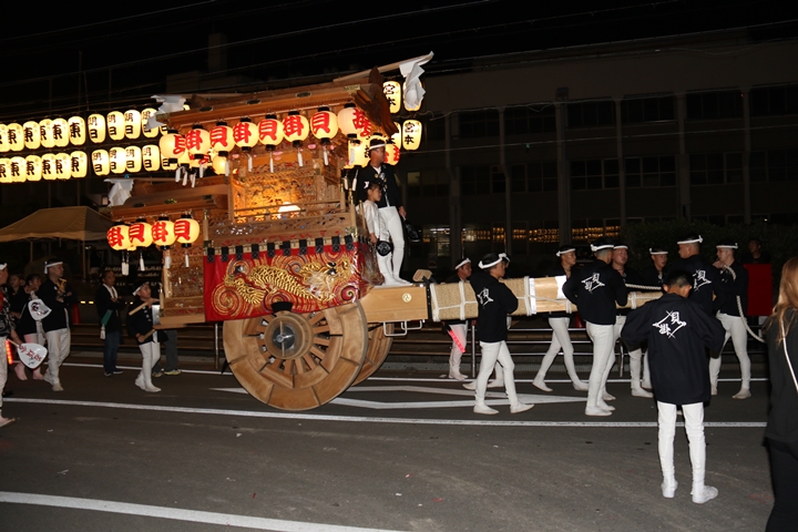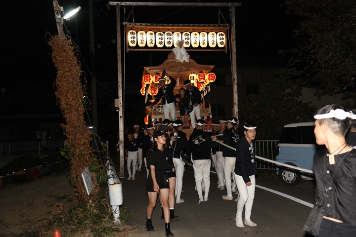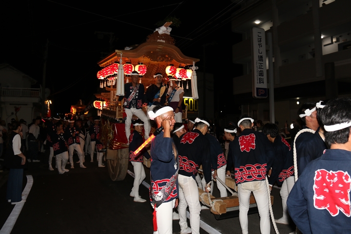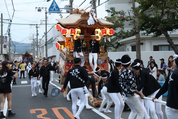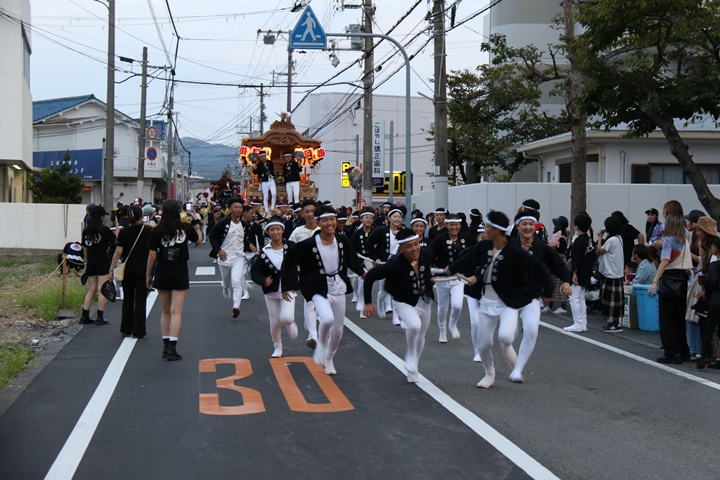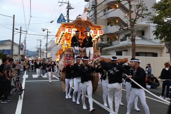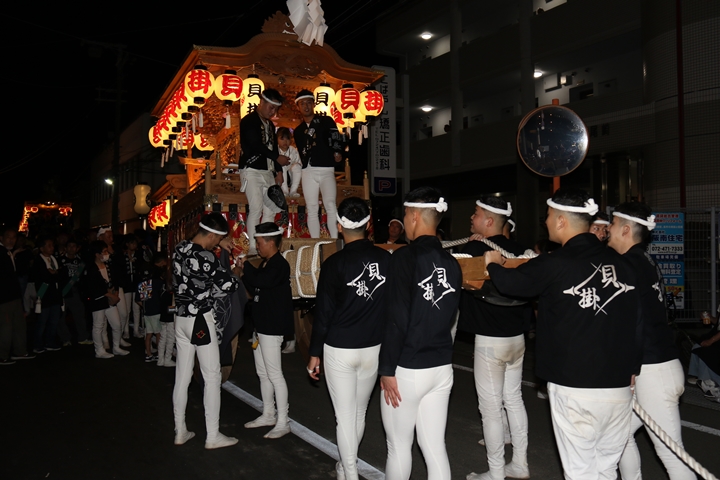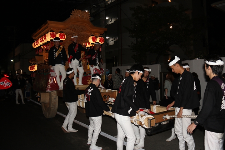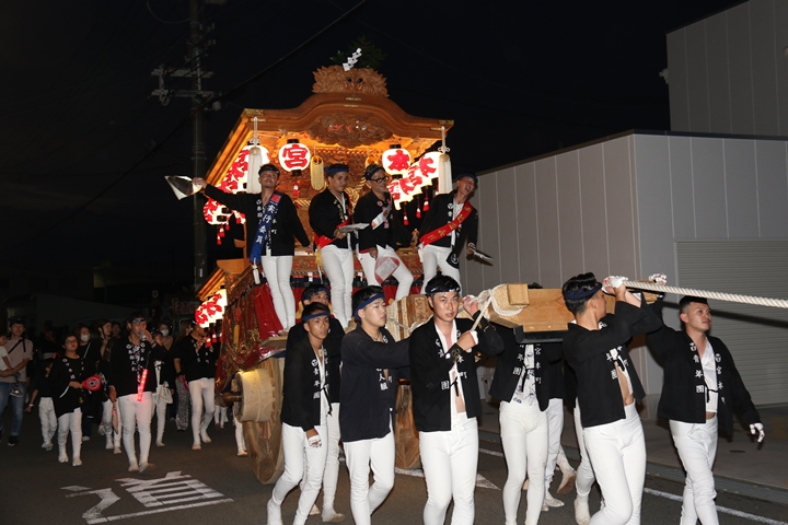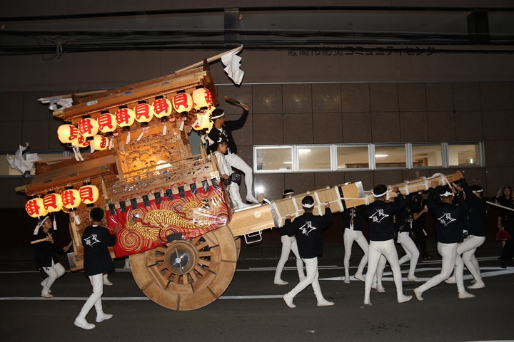 | ◎ 自町やぐら曳行の記録 指出森神社 → (村中2周) → 指出森神社(箱作東,箱作西と合流) → 旧武輪駐車場付近交差点(順番入替え) → 鳥取ノ荘駅南改札前(波有手組と合流) → お好み焼き竹前(榮組,新町と合流) → 阪南市役所前(開会式) → マンダイ前コース → マンダイ前コース → 田中外科前コース → マンダイ前コース → マンダイ前コース → 阪南消防署付近(箱作東,箱作西と合流) → 鳥取ノ荘駅南改札前 → タクミ技研前(箱作東,箱作西と離散) → 指出森神社 |