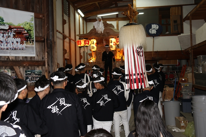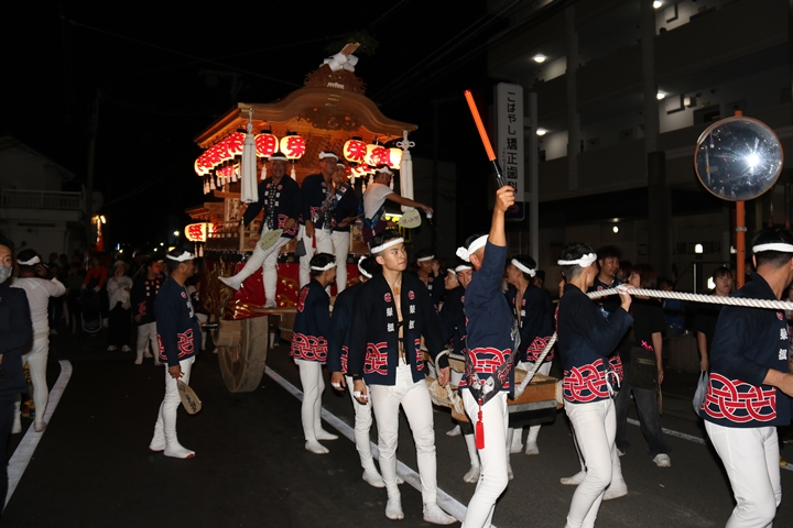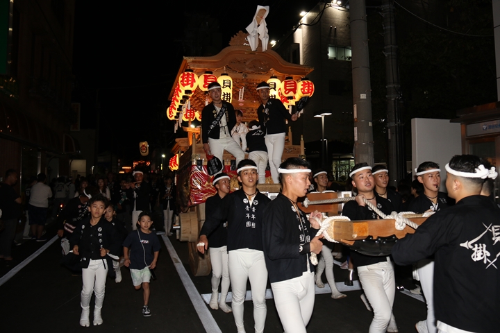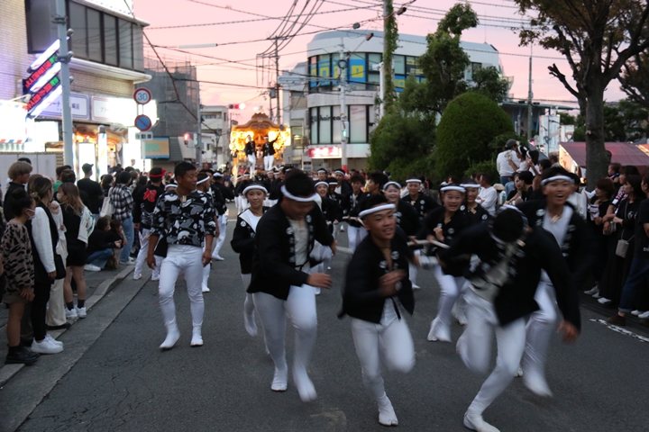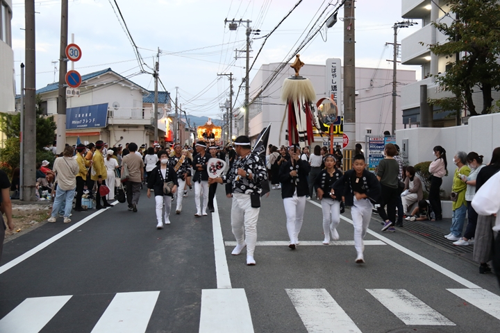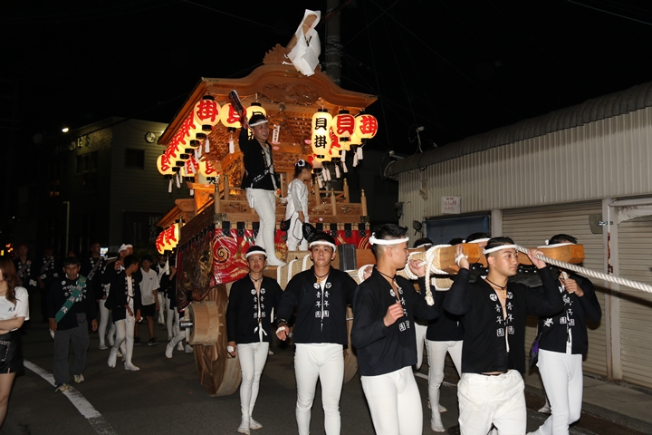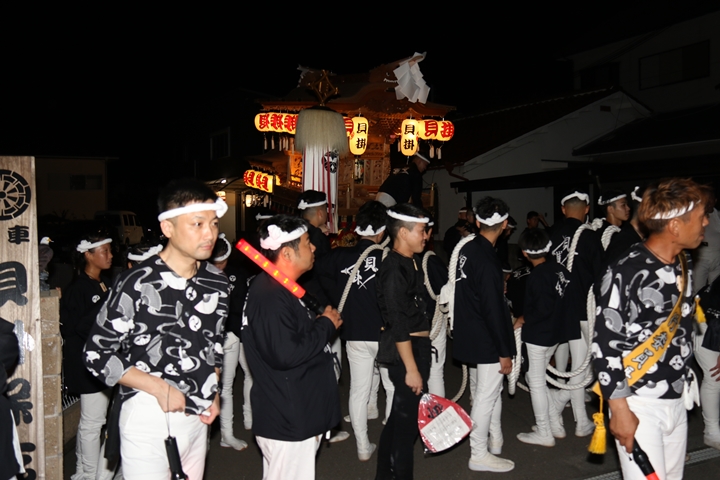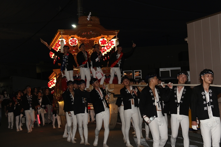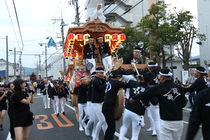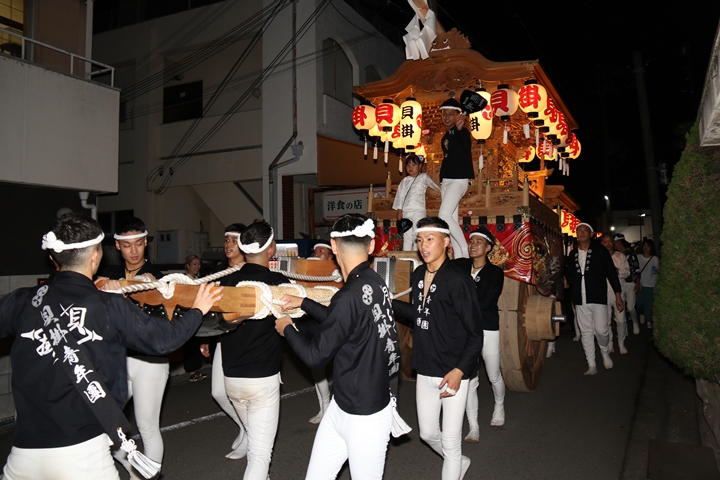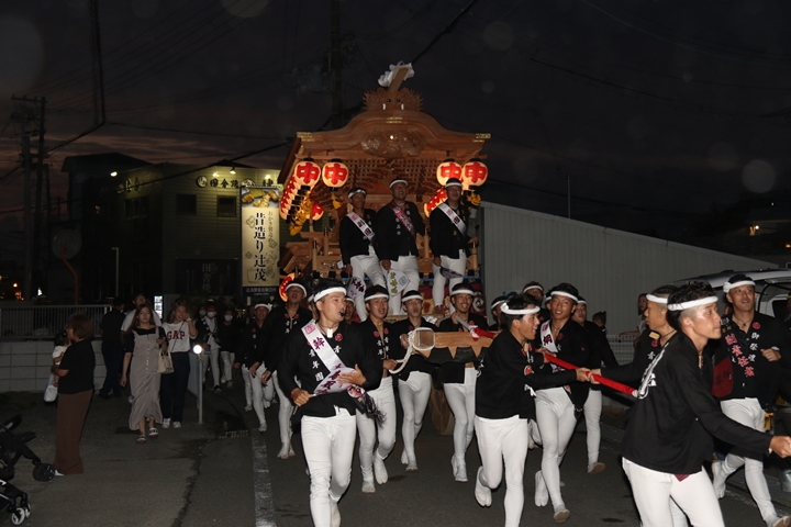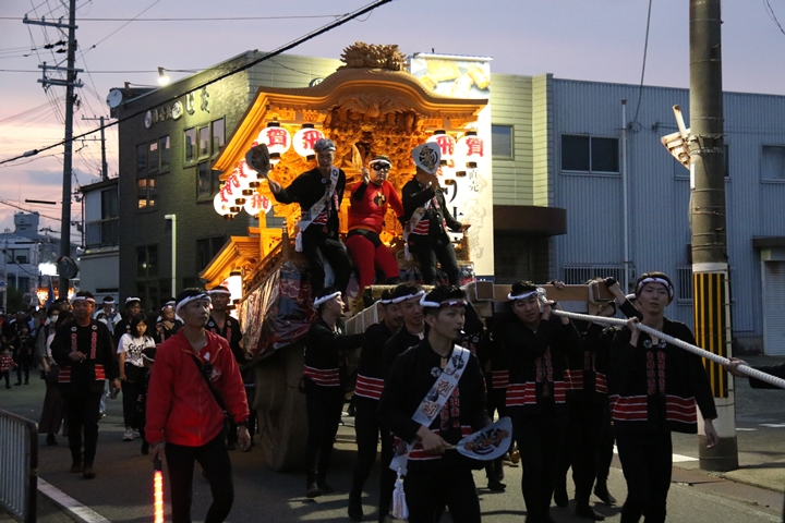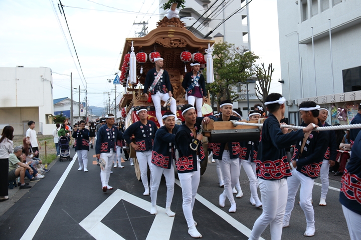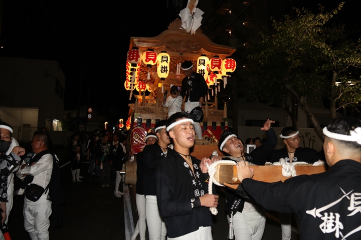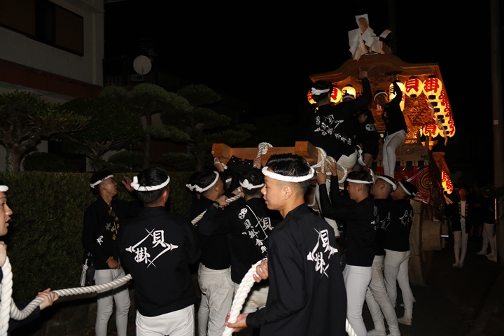 | ◎ 自町やぐら曳行の記録 指出森神社 → (村中2周) → 指出森神社(箱作東,箱作西と合流) → 旧武輪駐車場付近交差点(順番入替え) → 鳥取ノ荘駅南改札前(波有手組と合流) → お好み焼き竹前(榮組,新町と合流) → 阪南市役所前(開会式) → マンダイ前コース → マンダイ前コース → 田中外科前コース → マンダイ前コース → マンダイ前コース → 阪南消防署付近(箱作東,箱作西と合流) → 鳥取ノ荘駅南改札前 → タクミ技研前(箱作東,箱作西と離散) → 指出森神社 |