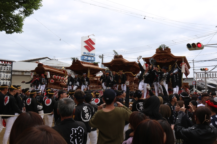 ![]() 馬場先では尾崎地区のやぐらが並んでました。 |