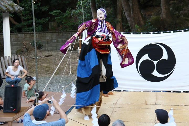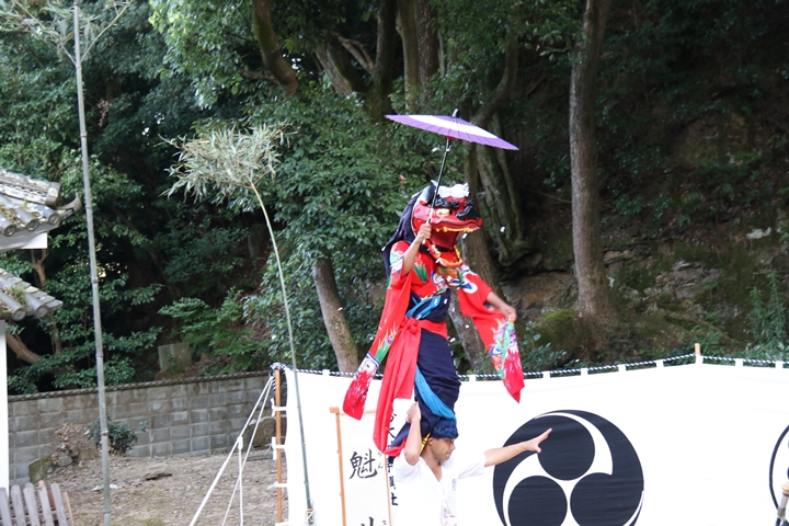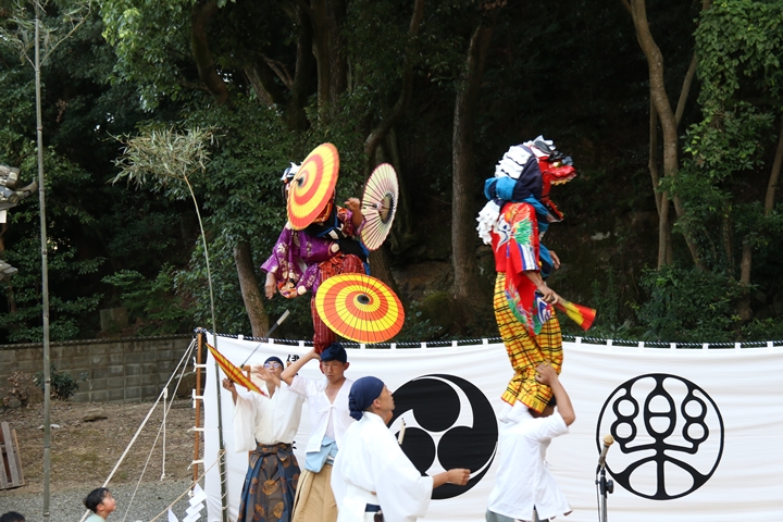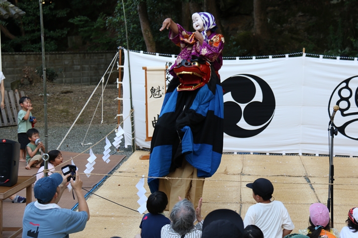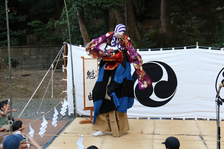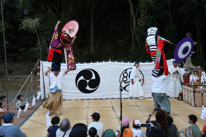 | 今年は波太神社氏子総代主催になって記念すべき10回目だそうです。自然田出身の「山本春太夫」襲名、そして若手の方の「献燈の曲」初めての御披露目ととても見どころ満載の内容でした。酷暑の中の舞、本当に御苦労様でした。 |