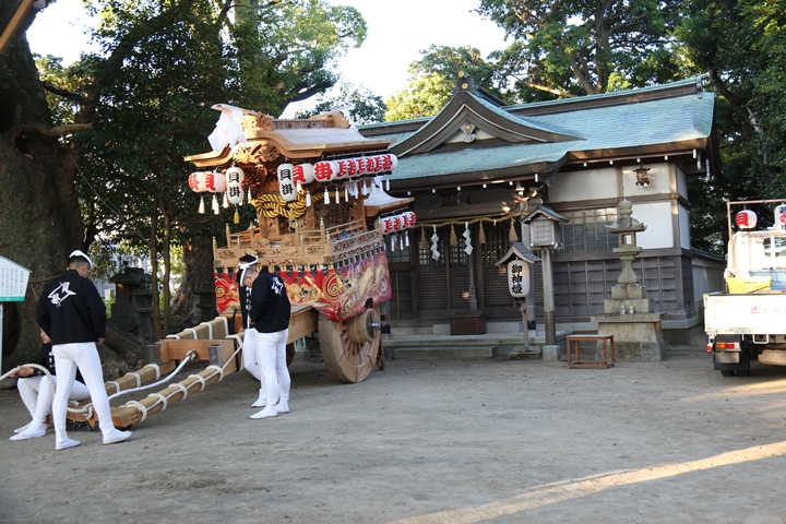 7時に指出森神社に到着、やぐらは既に拝殿前でした。 |
