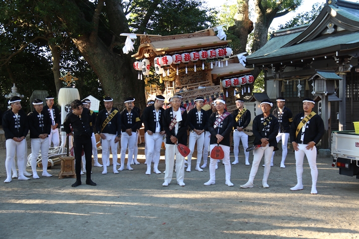 ![]() 私は拝殿前へ先まわり、すると山中渓・和泉鳥取・鳥取中が 宮上がりを終えイベント前でした。 |